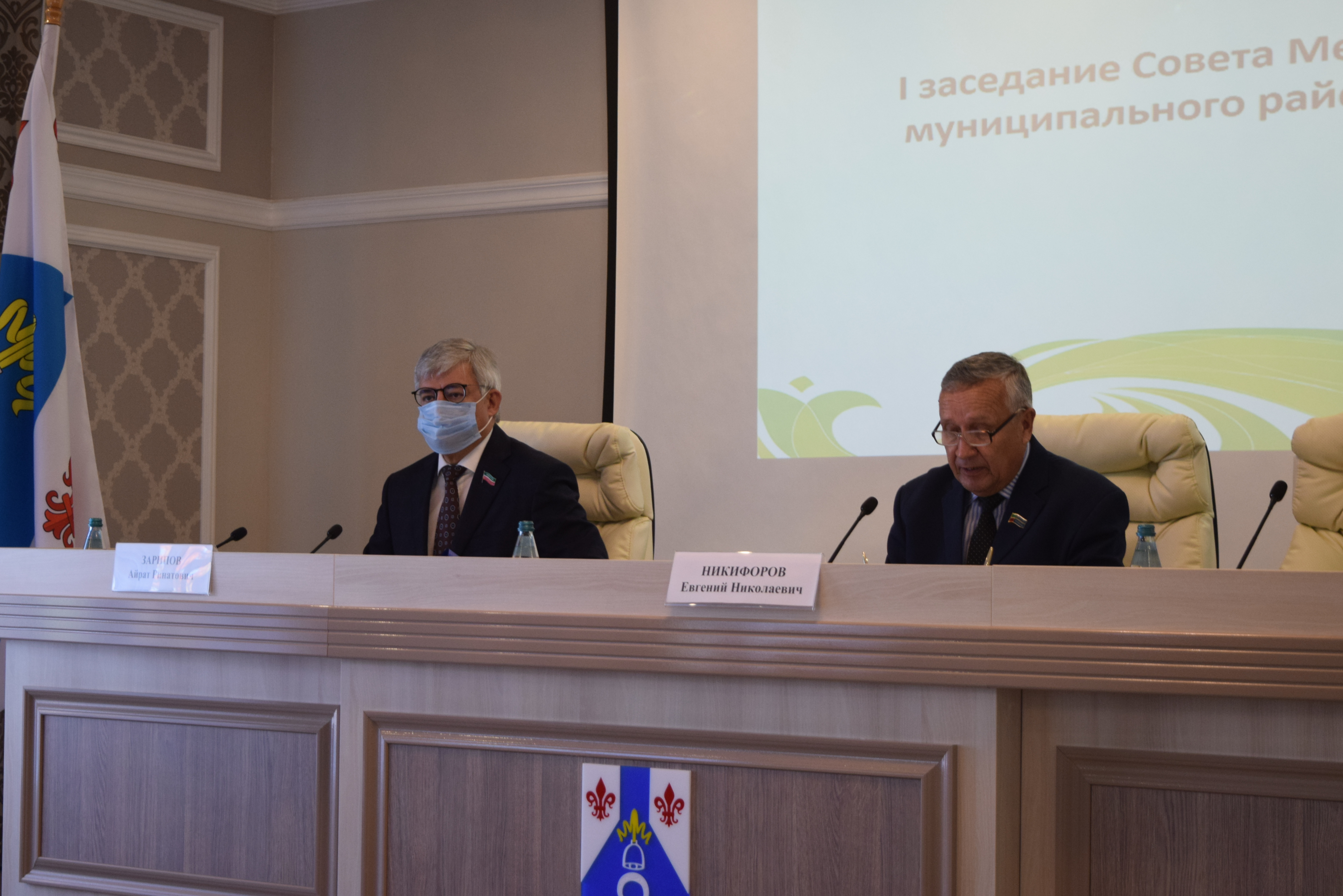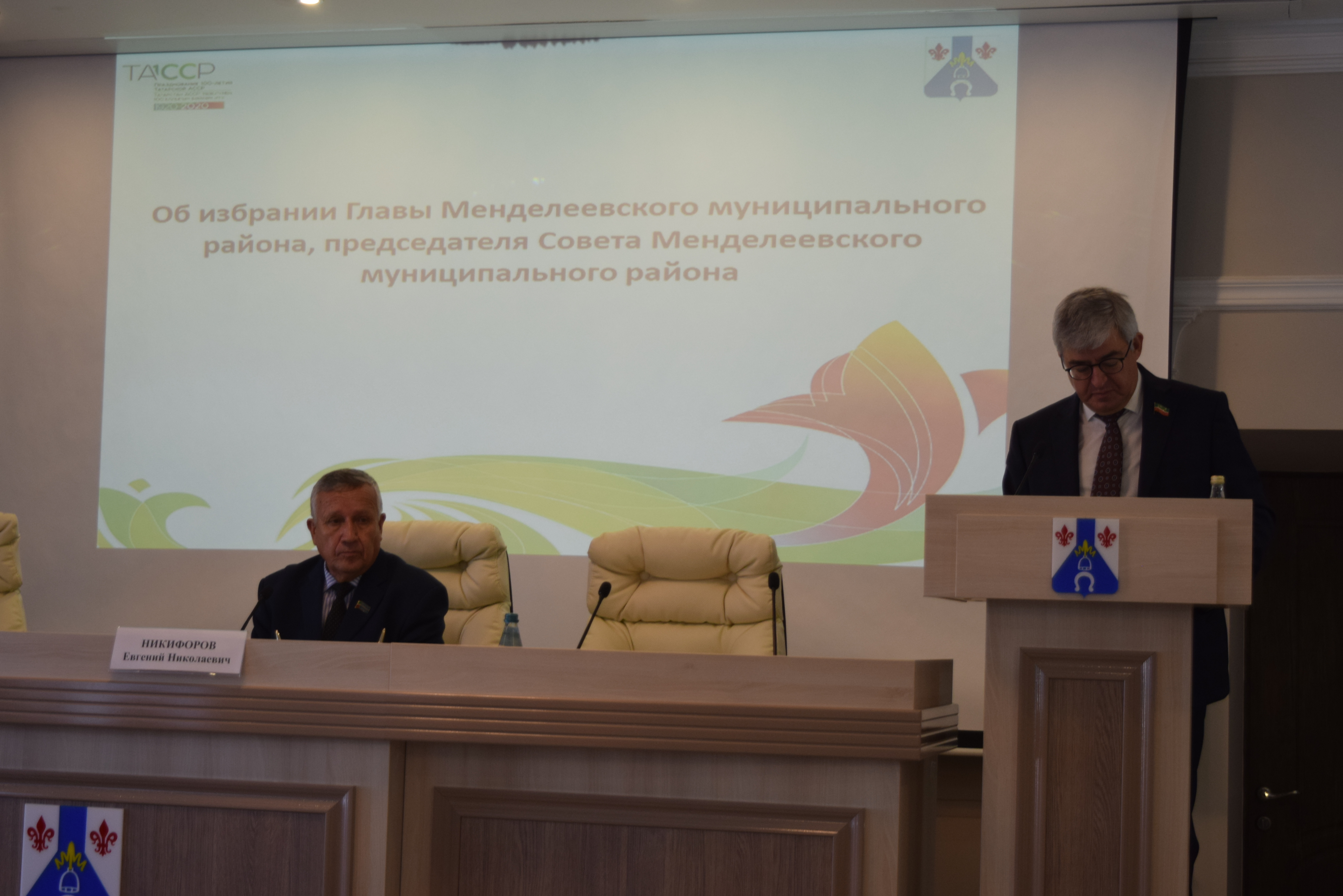 В соответствии с п. 2 статьи 30 Устава Менделеевского муниципального района Республики Татарстан первое заседание Совета района до избрания нового Главы района открыл и провел старейший по возрасту депутат Совета Менделеевского муниципального района - Никифоров Евгений Николаевич.