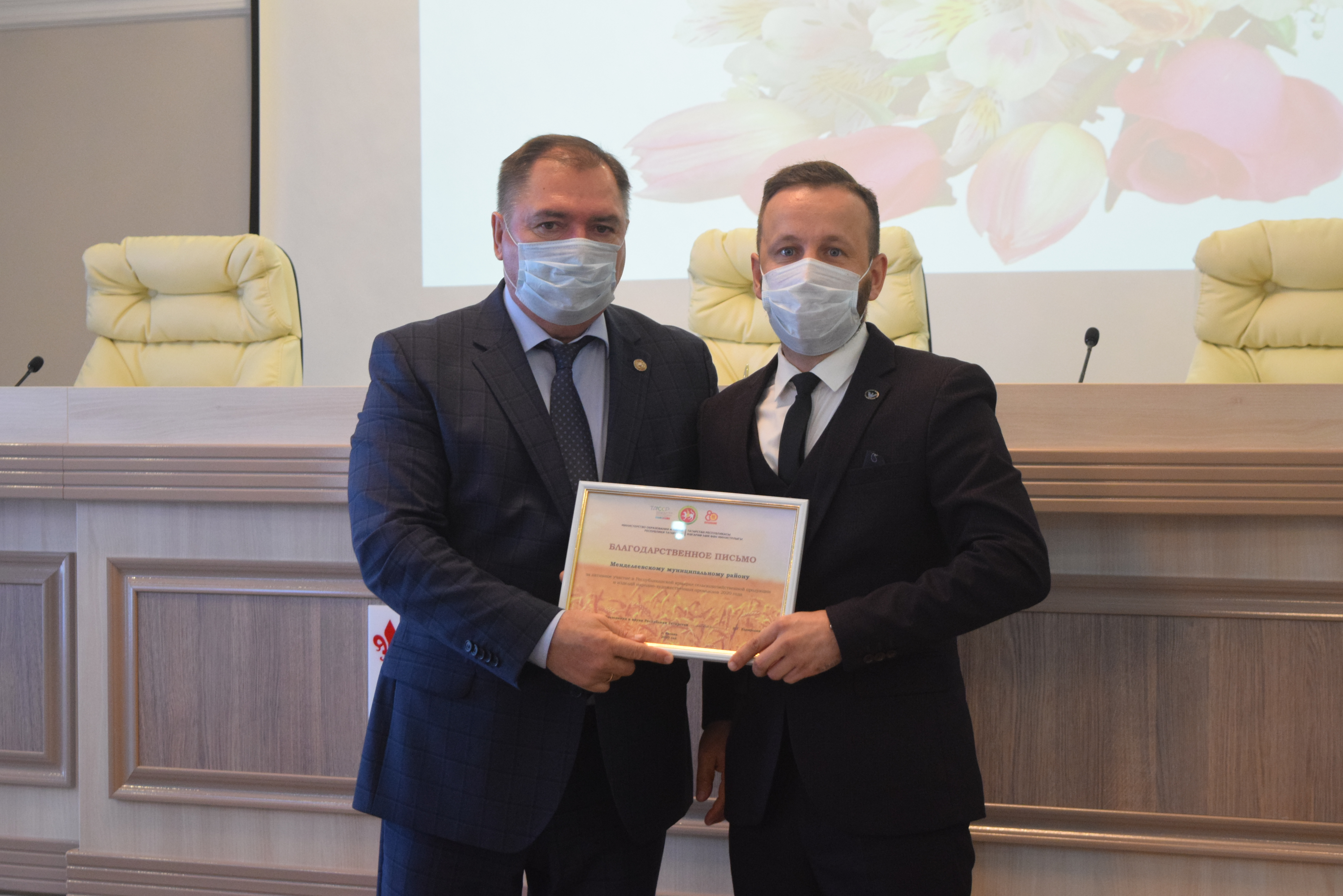 Перед началом выступлений Благодарственное письмо Министерства образования и науки РТ за активное участие в Республиканской ярмарке сельскохозяйственной продукции и изделий народно-художественных промыслов 2020 года было вручено Ильбару Тагирову – начальнику управления образования ММР.