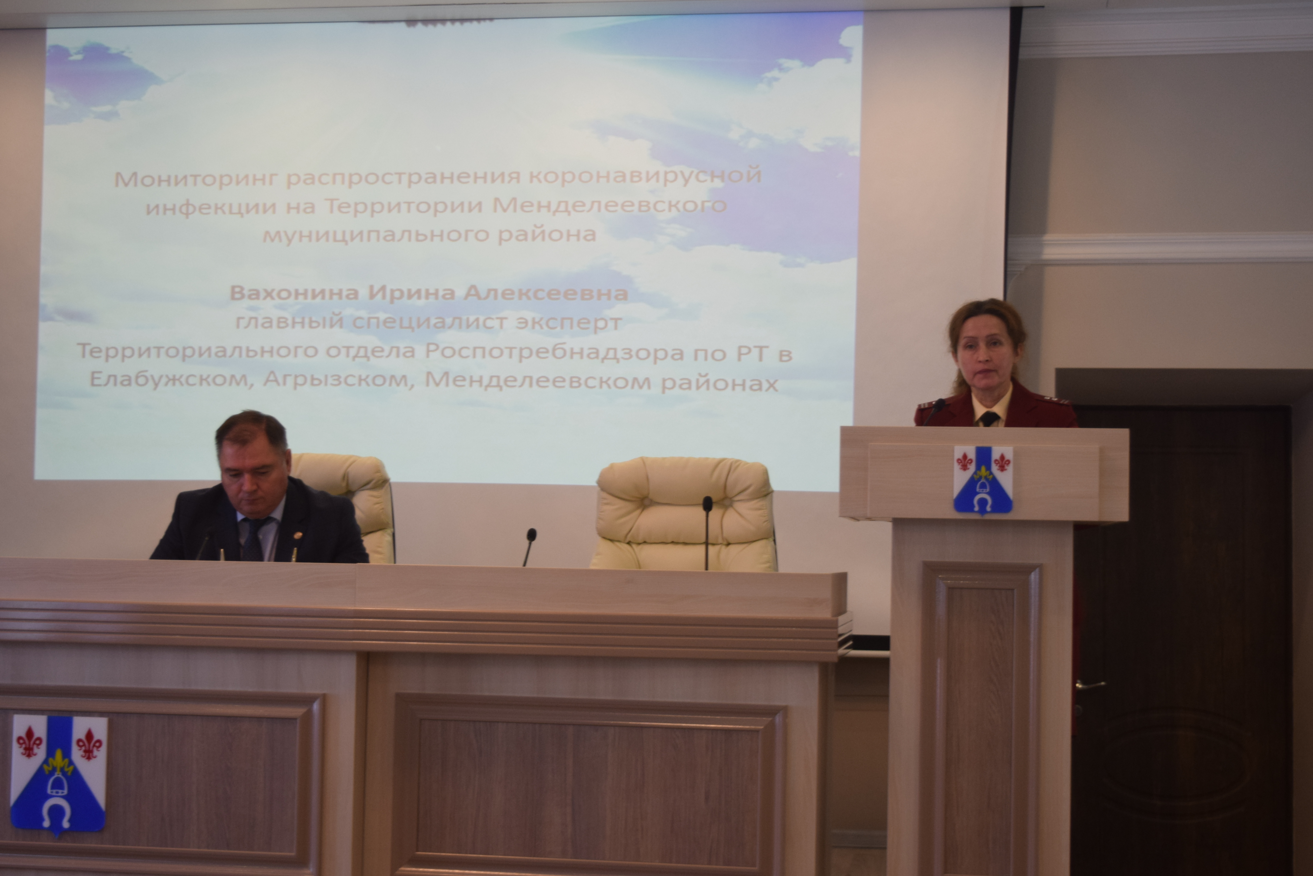 О мониторинге распространения коронавирусной инфекции на Территории Менделеевского муниципального района выступила Ирина Вахонина – главный специалист эксперт Территориального отдела Роспотребнадзора по РТ в Елабужском, Агрызском, Менделеевском районах.