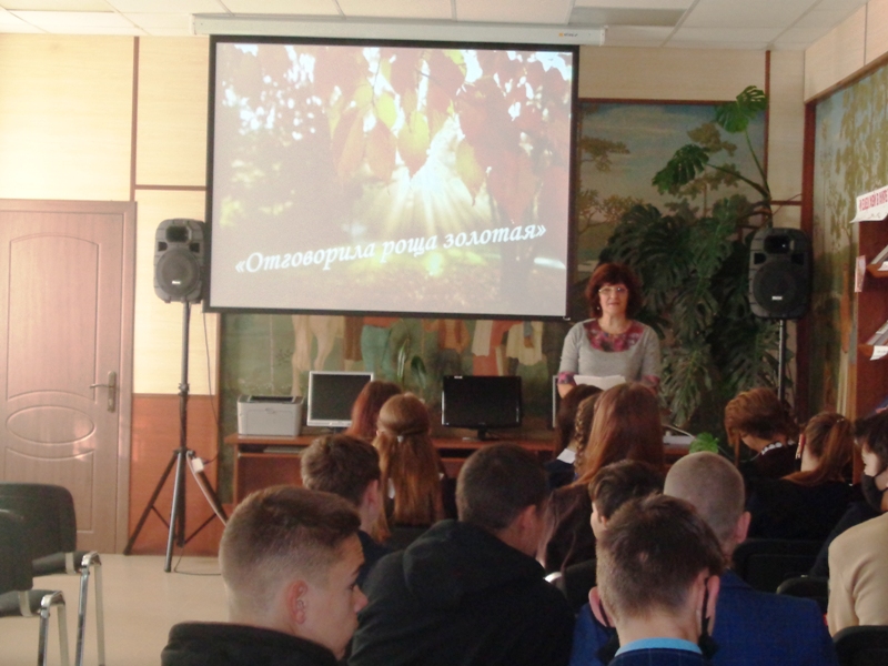 2 октября сотрудники Центральной библиотеки провели для учащихся школы №1 поэтический вечер «Отговорила роща золотая», посвящённый125-летию со дня рождения Сергея Есенина- поэта, которого по праву называют «стихотворной душой России».