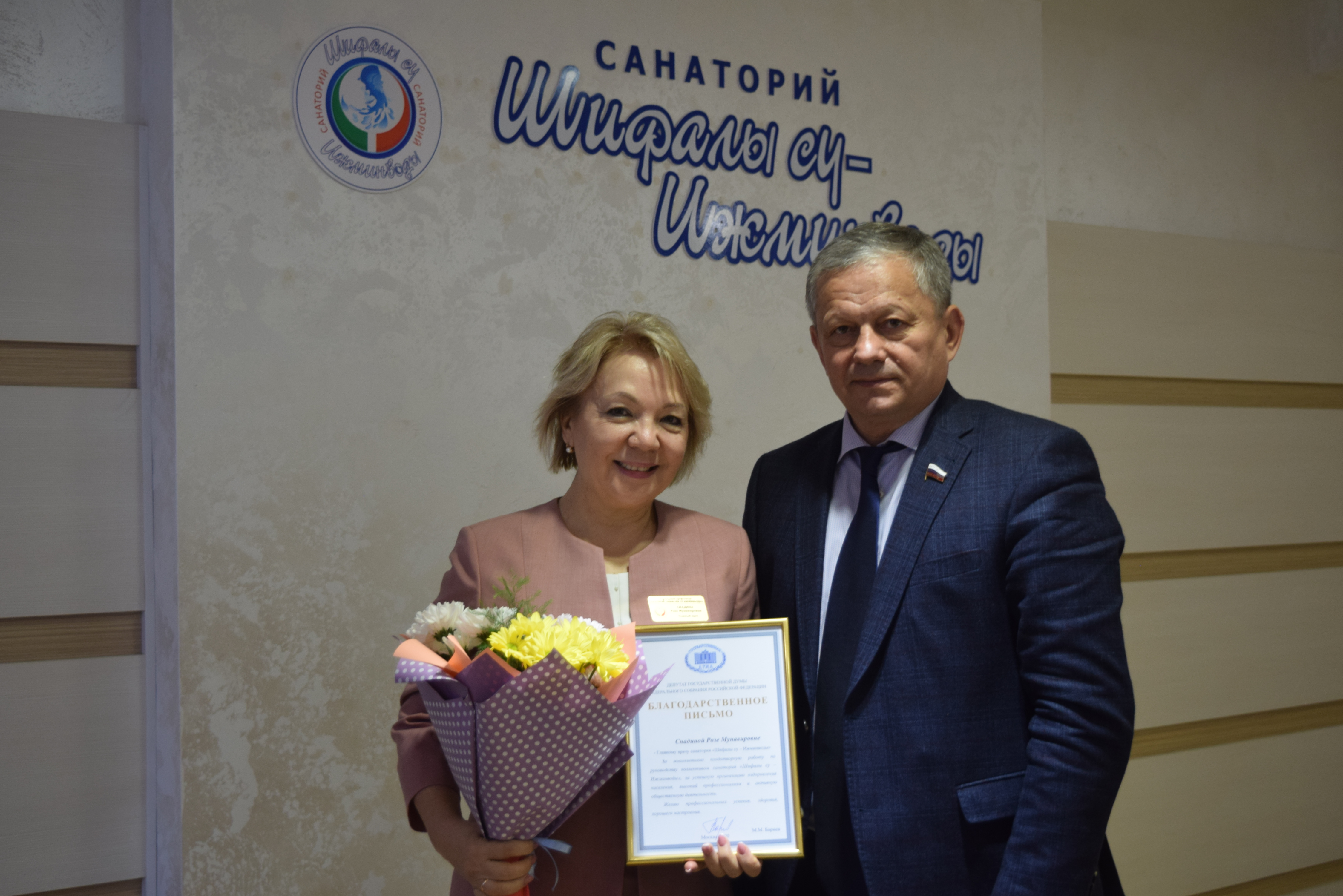 Далее Роза Снадина рассказала об основных направлениях деятельности санатория, также обозначила основные планы и перспективы развития. Также, по сообщению, на базе санатория на сегодняшний день активно реализуется программа по реабилитации переболевших новой коронавирусной инфекцией.