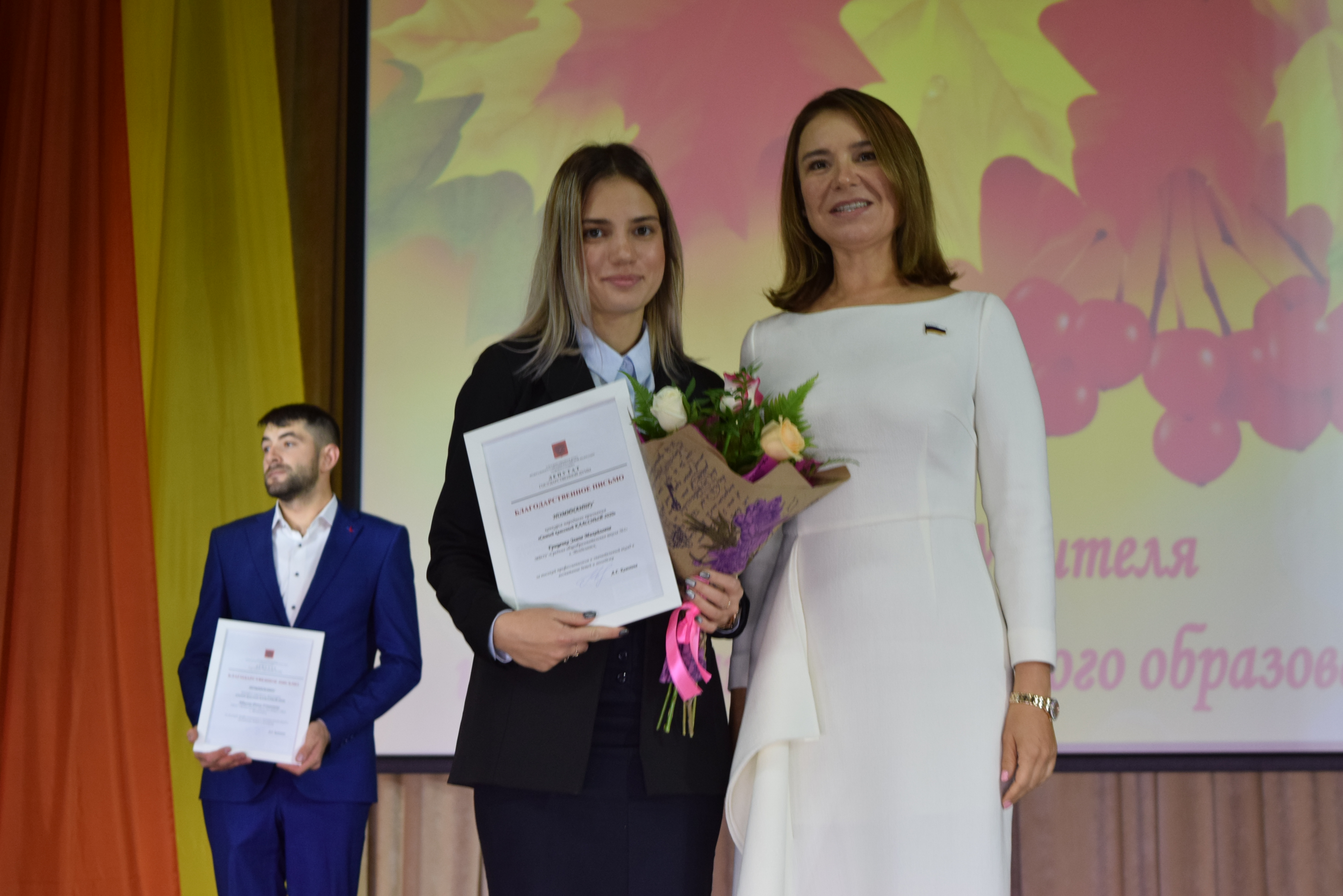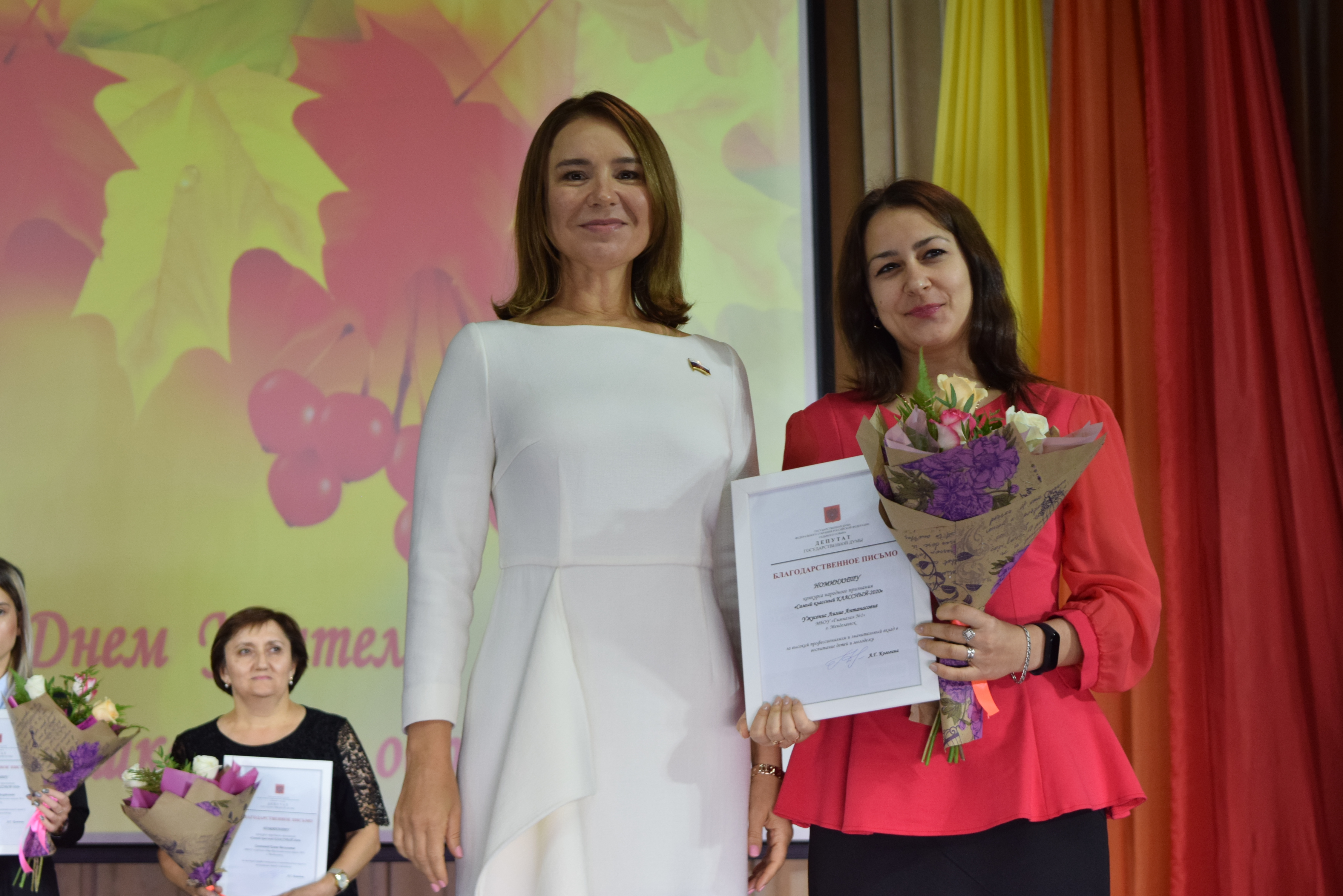 Также приятным моментом вечера стало вручение победителю в конкурсе "Самый классный КЛАССНЫЙ", организованный в Менделеевском районе по инициативе Депутата Государственной Думы Российской Федерации Альфии Когогиной совместно с редакцией "Менделеевские новости". Депутат поздравила всех учителей района с праздником, отметив особую важность роли педагогов в жизни любого человека и свое трепетное отношение к представителям этой благородной профессии.