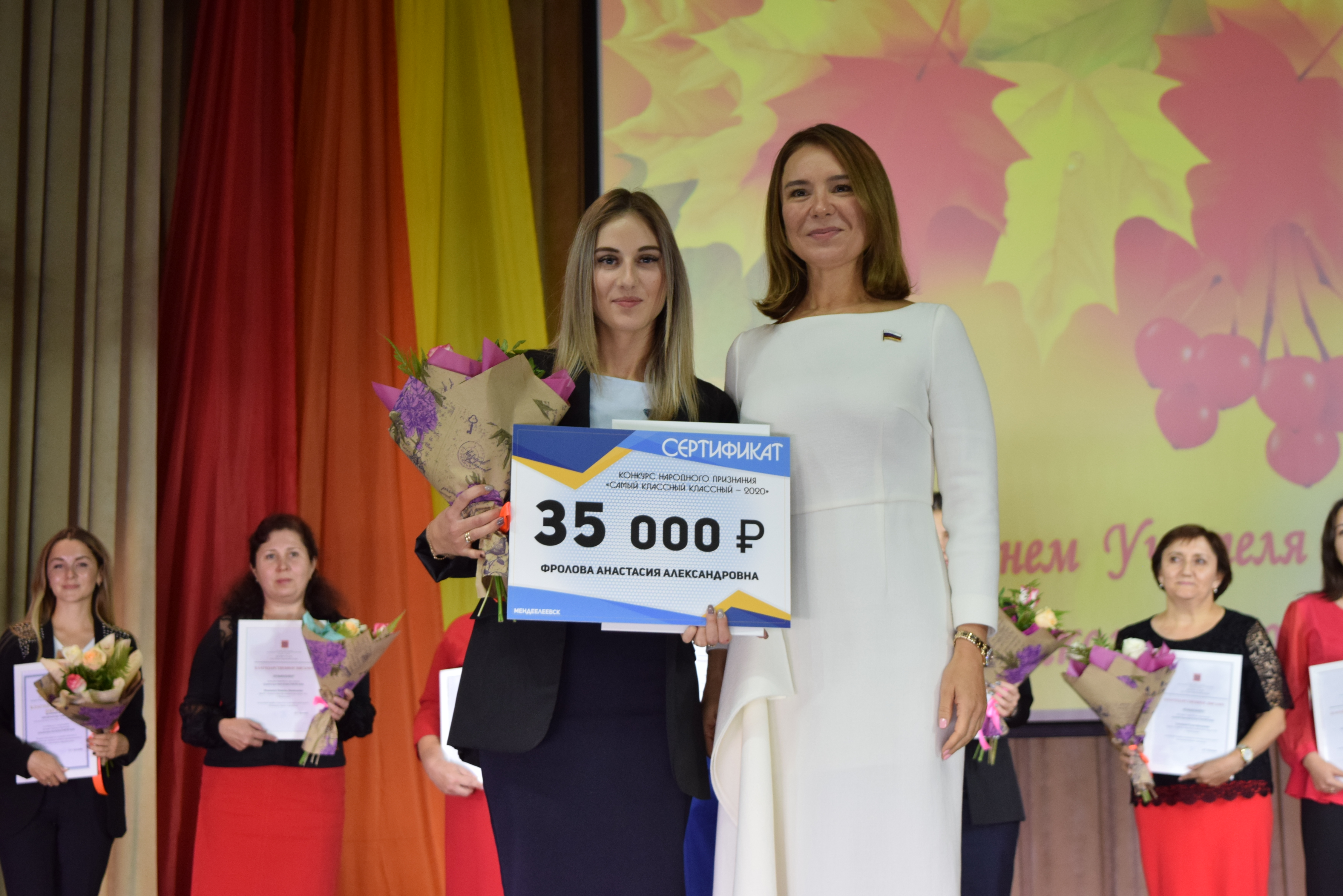 Всего в финал конкурса прошли 7 педагогов с различных школ района. Победителем стала Анастасия Фролова, классный руководитель средней школы № 1, получив сертификат на сумму 35 000 рублей.