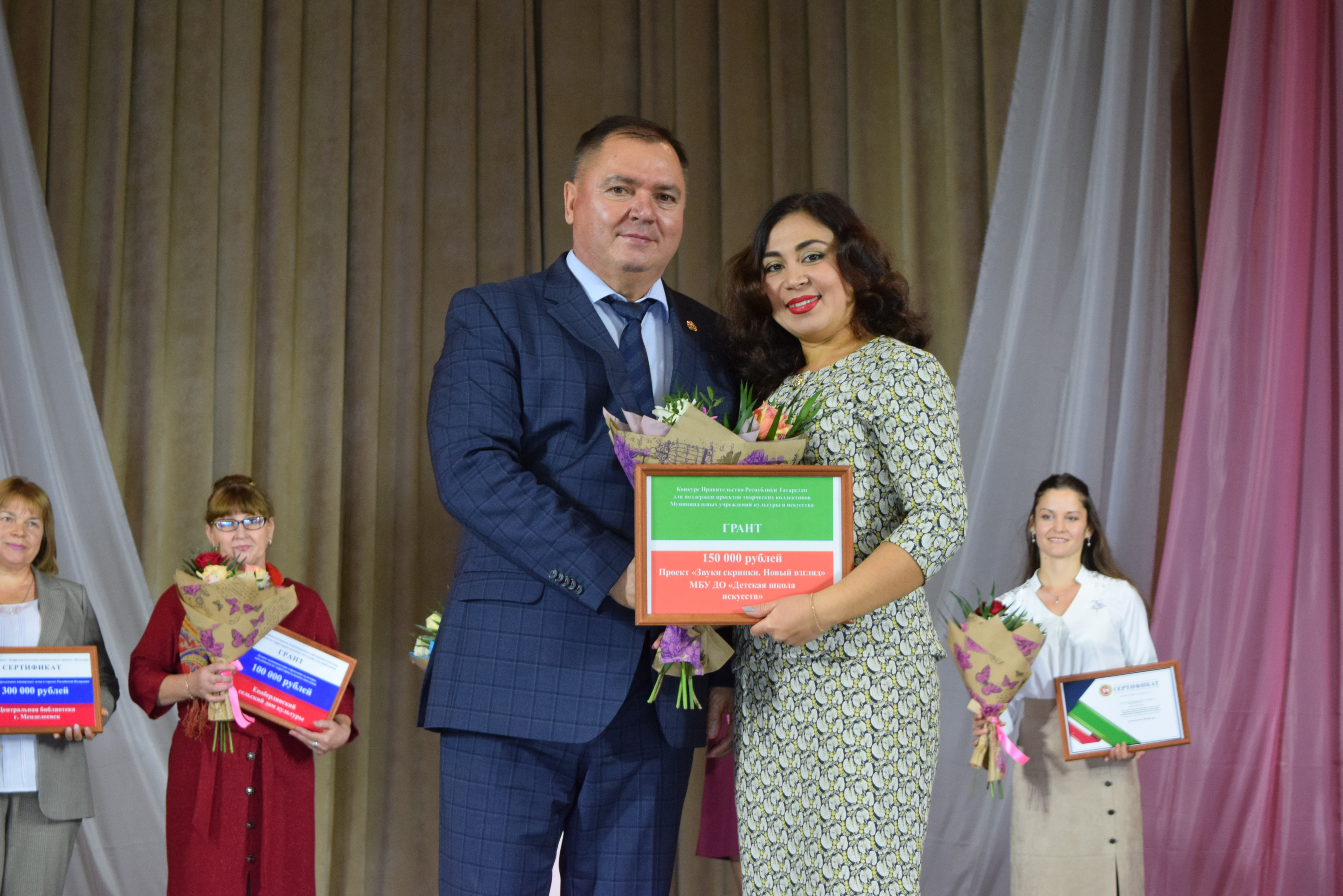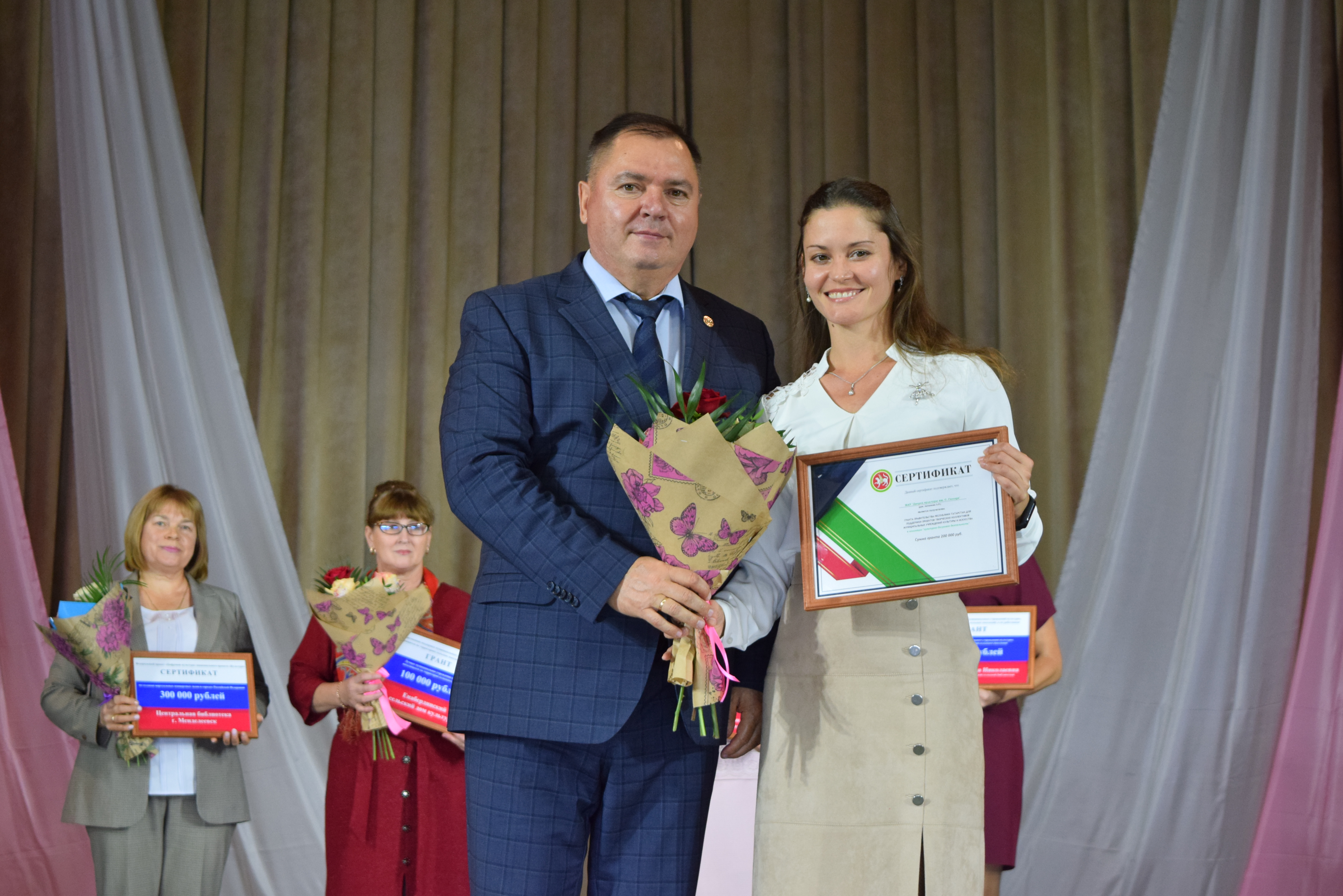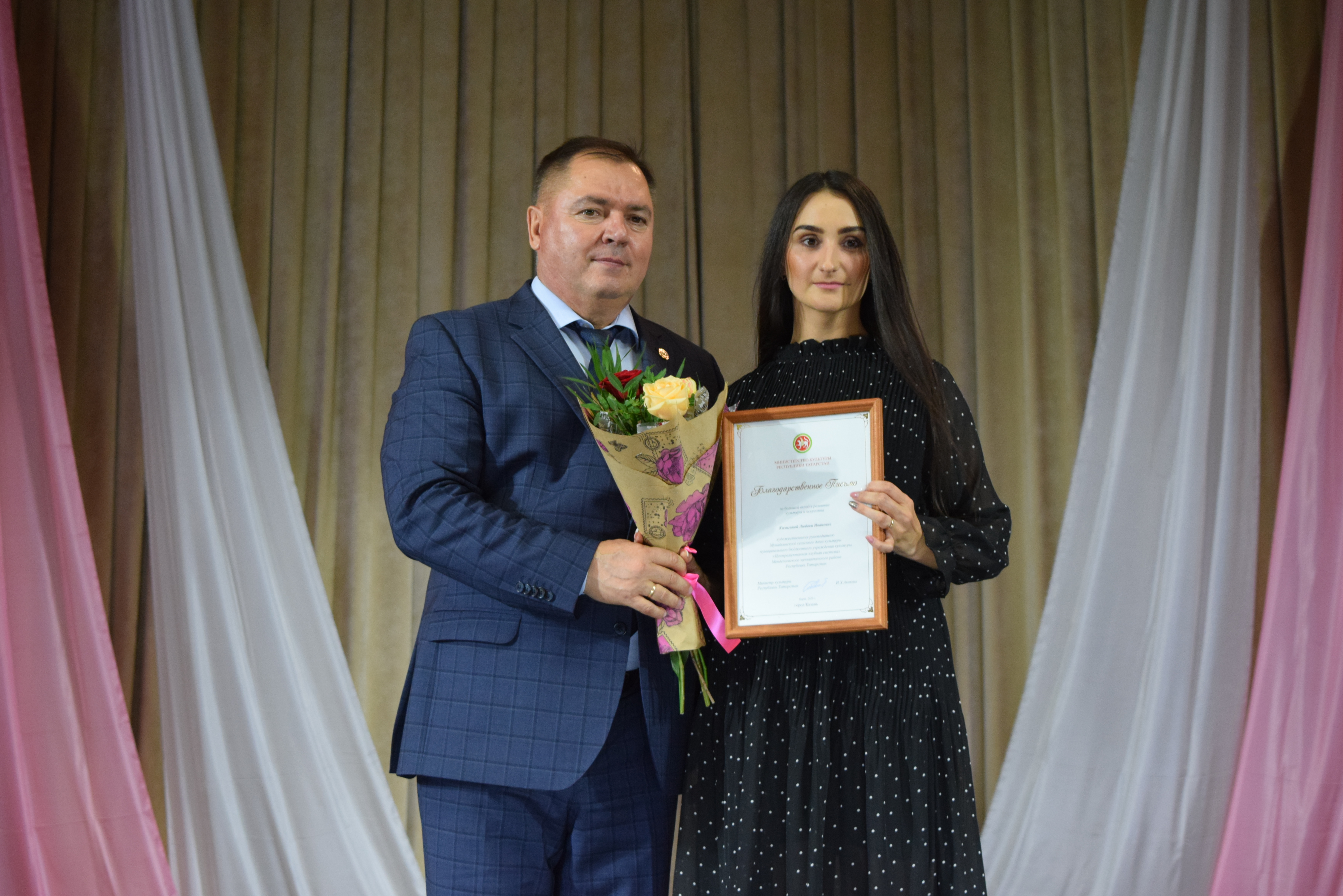 Почетными грамотами Главы Менделеевского района были награждены Екатерина Шигапова - начальник Управления культуры района, Юлия Евдокимова - зам. директора МБКУ "Централизованная клубная система Менделеевского МР РТ", Рамзия Хайруллина - методист по культурно- просветительской работе координационно-методического центра Управления культуры, Танзиля Фирсова - преподаватель музыкального отделения Детской школы искусств, Ясмнур Гизатуллина - заведующая Сетяковским сельским клубом. Также были вручены Благодарственные письма.