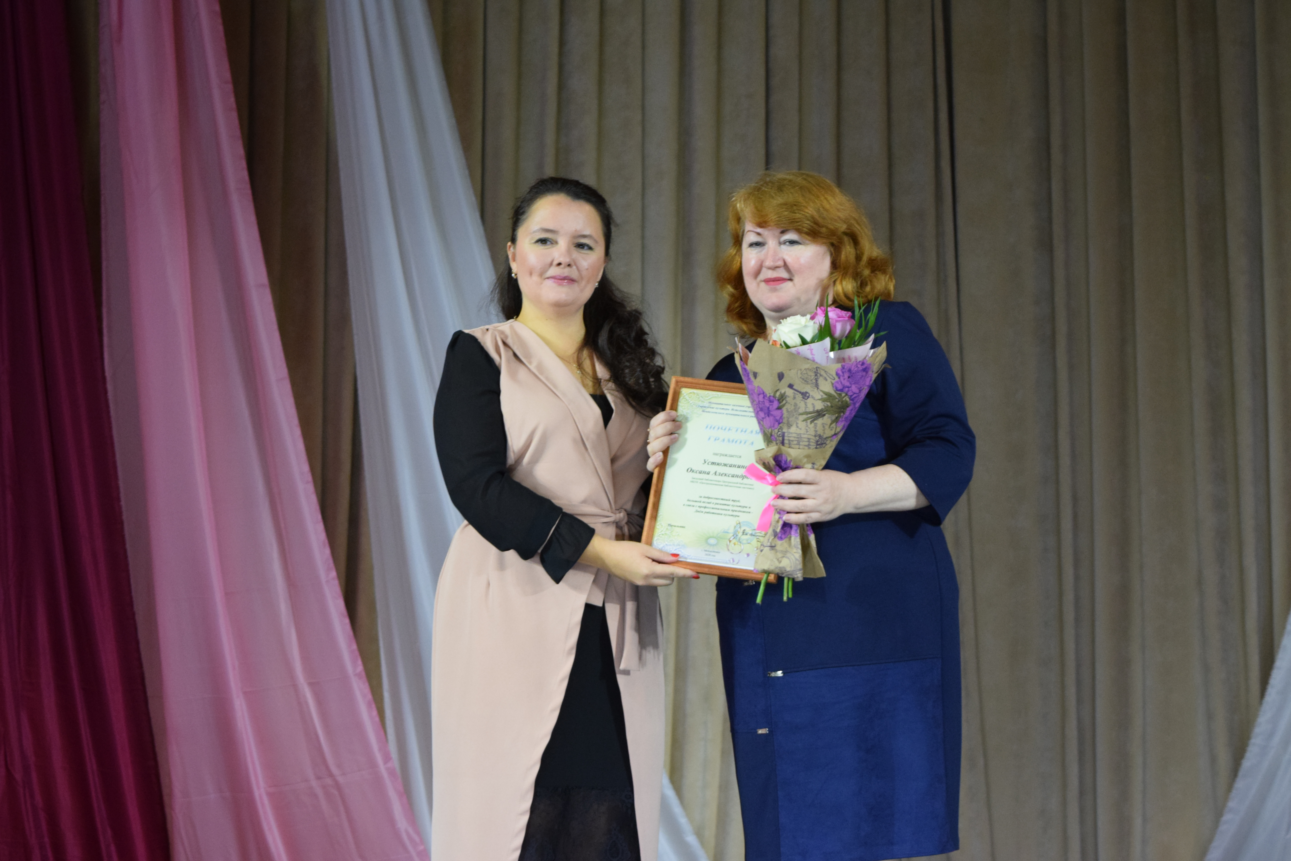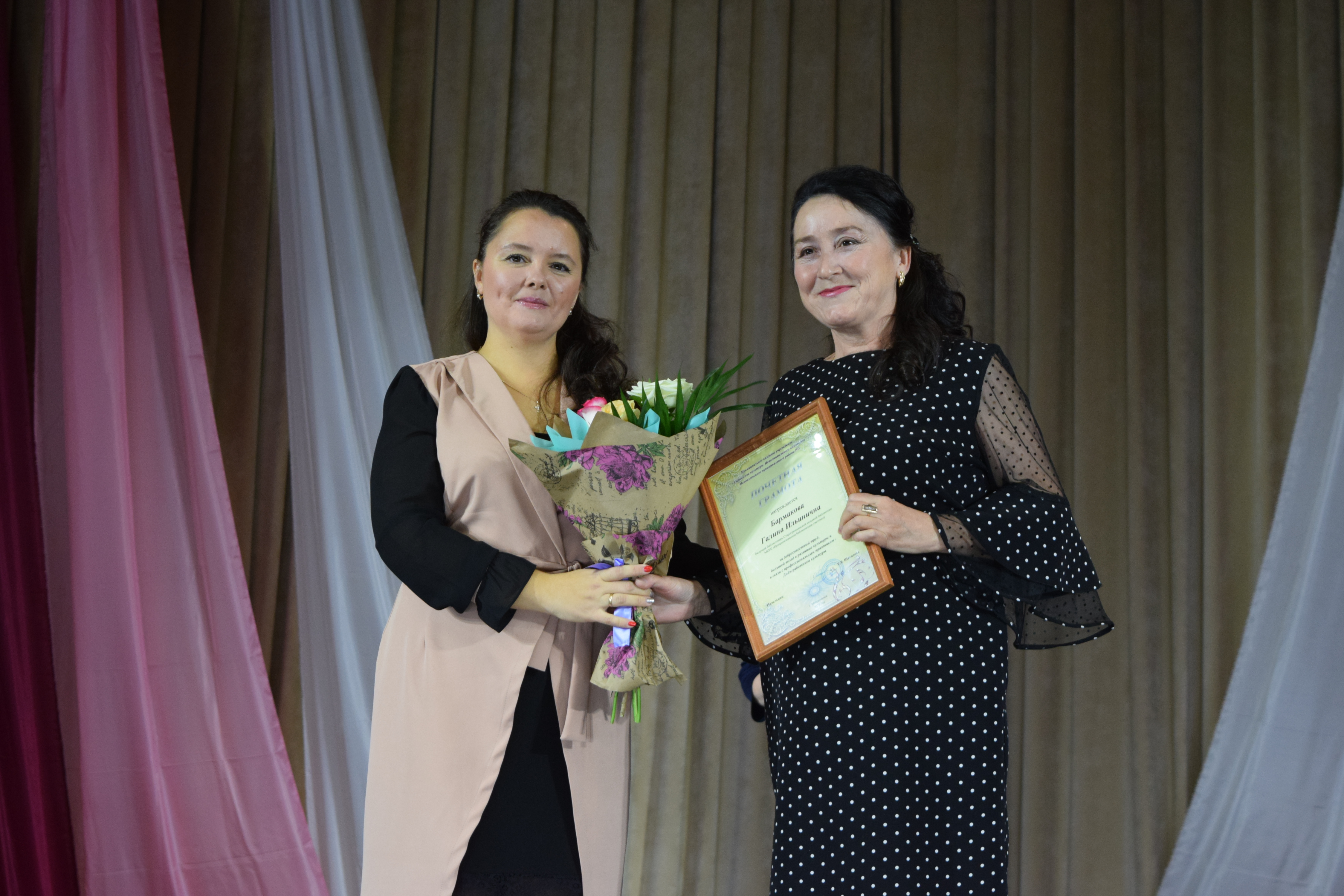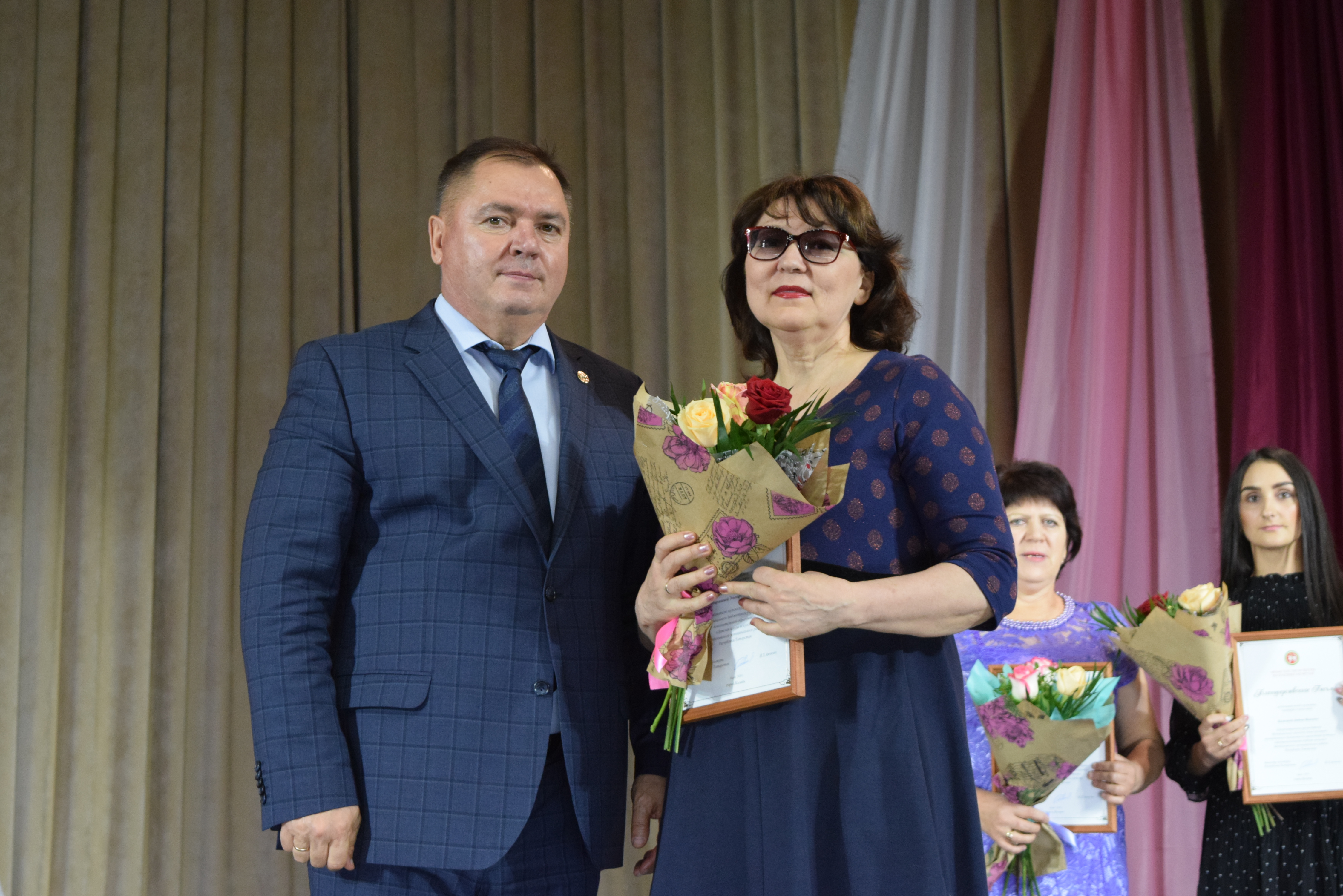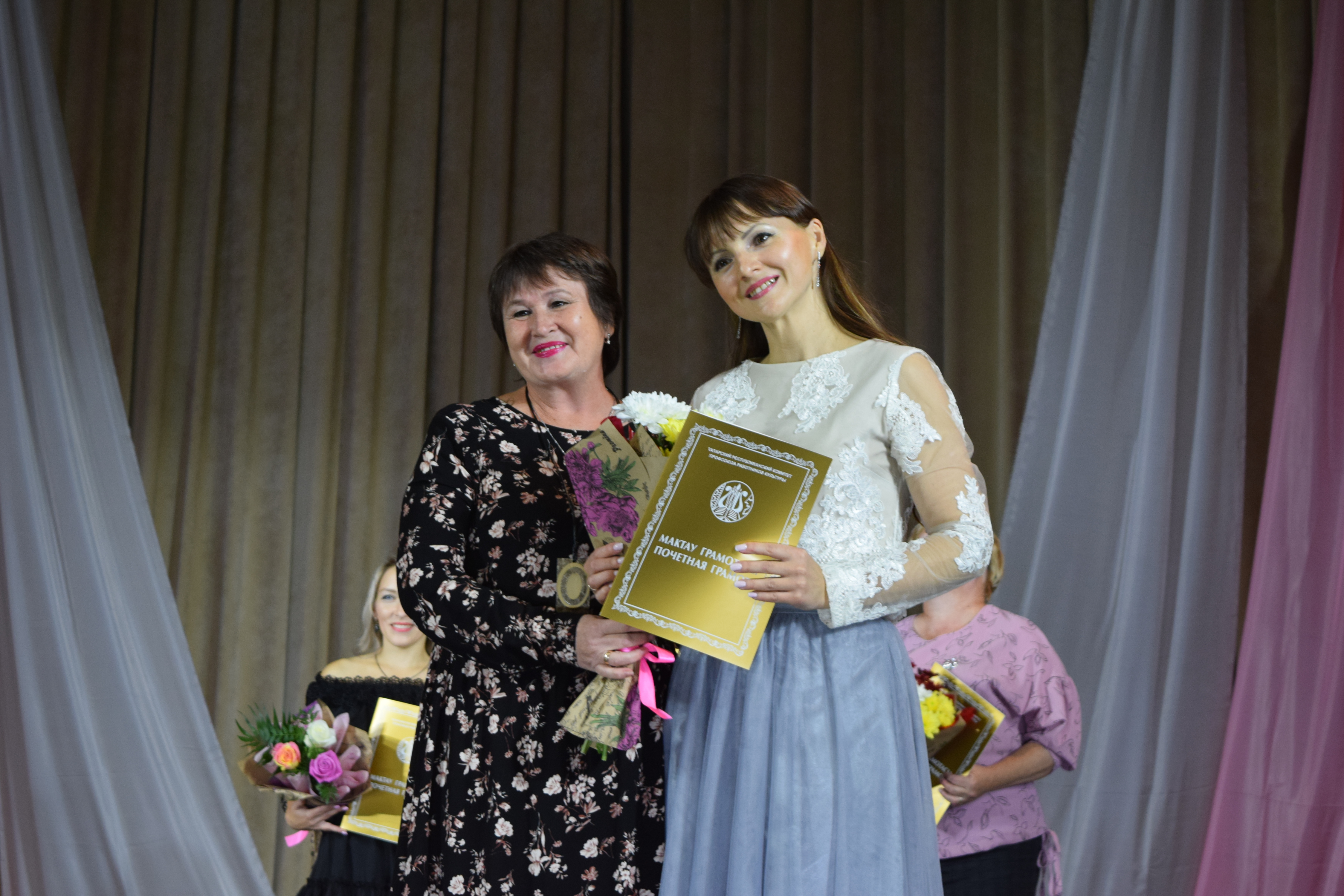 Почетными грамотами Главы Менделеевского района были награждены Екатерина Шигапова - начальник Управления культуры района, Юлия Евдокимова - зам. директора МБКУ "Централизованная клубная система Менделеевского МР РТ", Рамзия Хайруллина - методист по культурно- просветительской работе координационно-методического центра Управления культуры, Танзиля Фирсова - преподаватель музыкального отделения Детской школы искусств, Ясмнур Гизатуллина - заведующая Сетяковским сельским клубом. Также были вручены Благодарственные письма.