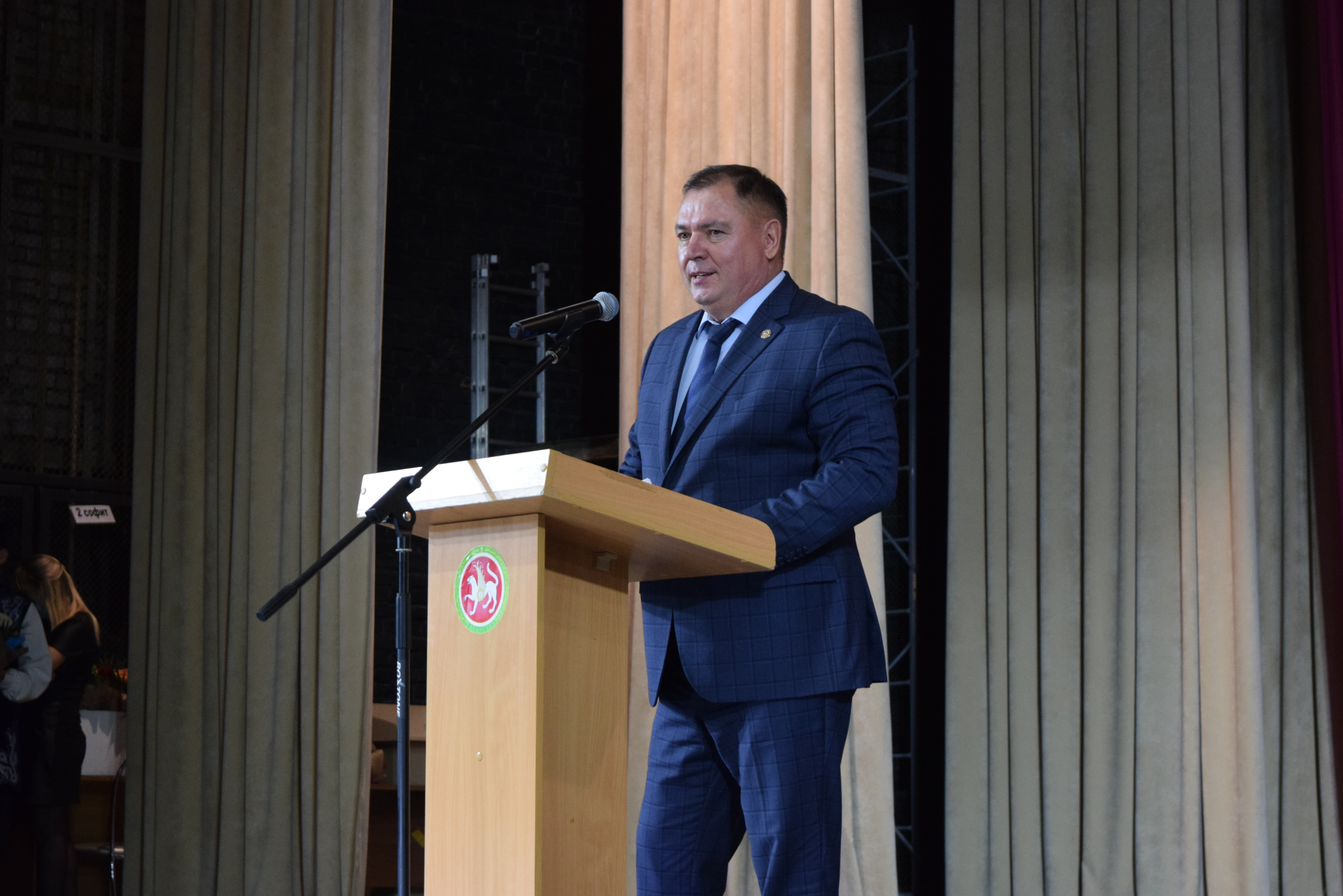 Глава района Валерий Чершинцев поздравил собравшихся и наградил выдающихся работников культуры Менделеевского района.