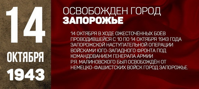 77 лет назад, Советские войска освободили Запорожье от немецко-фашистских захватчиков