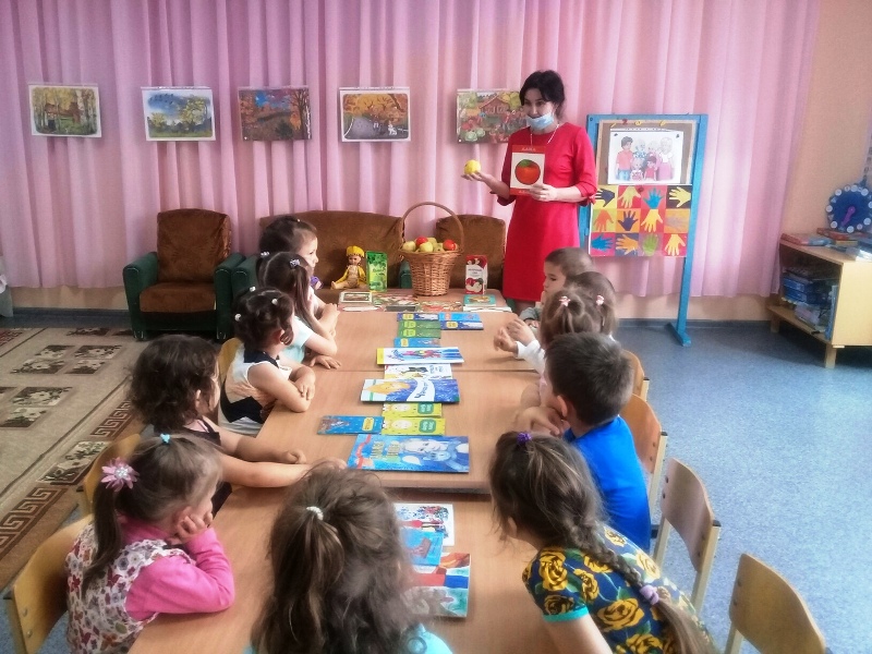 21 октября в Псеевском детском саду для дошкольников библиотекарь Рузалия Яраханова провела развлекательно- познавательный утренник "В гостях у Витамина" к дню яблок.