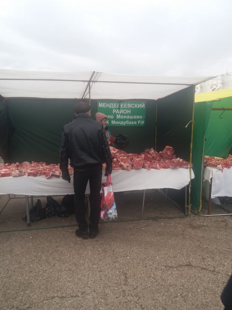 Отметим, что от Менделеевского района в ярмарке приняли участие КФХ Миндубаев Р. Н. на 4 точках, реализовав 1,5 тонны говядины и 800 кг свинины; ООО "МПК "Первомайский" на 3 точках; 2 точки по продаже картофеля ПО Менделеевского РайПо и 2 точки по продаже меда.