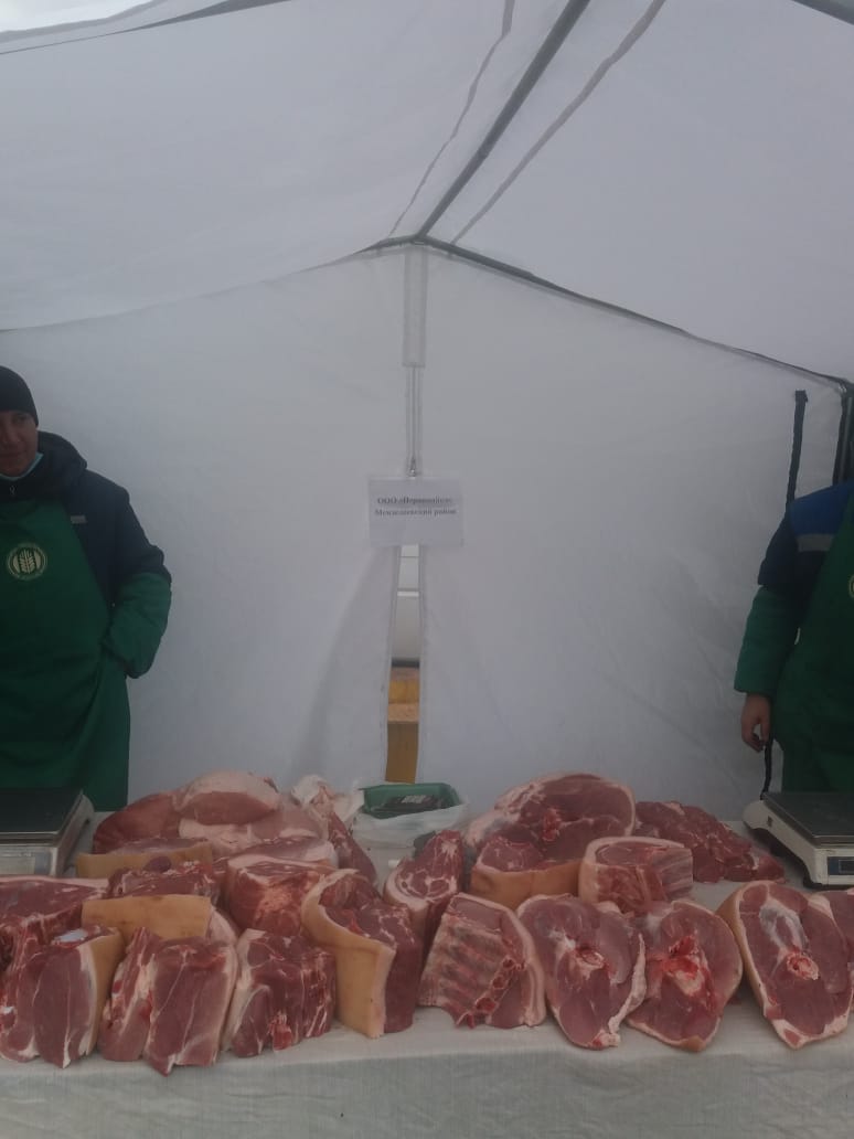 На ярмарочных площадках в широком ассортименте было представлено мясо говядины, баранины, птицы (гуси, утки, куры, индейки), молоко разливное и другая молочная продукция, рыба, овощи, выпечка и др.