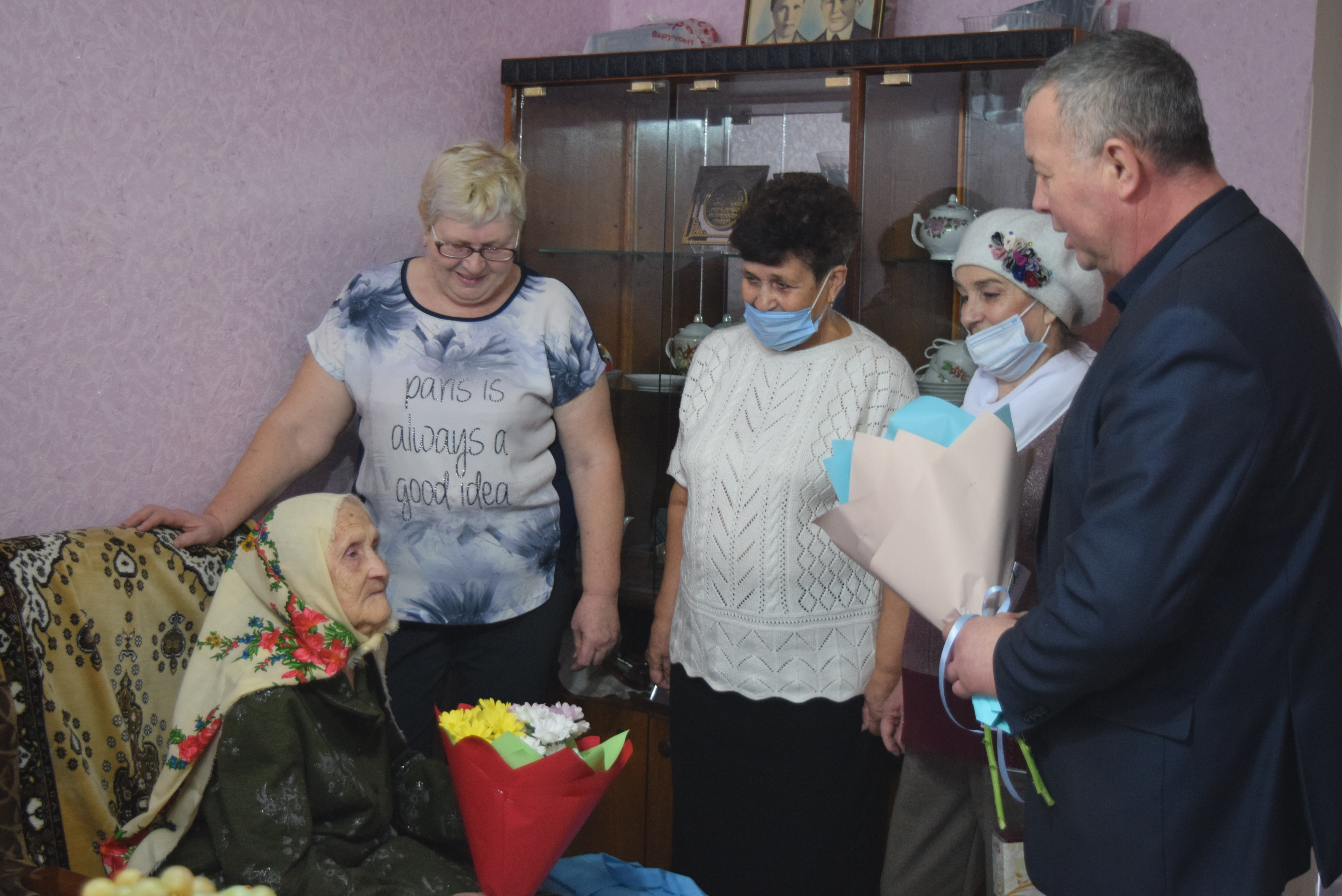 Свой 95-летний юбилей Таскира Назипова встретила в кругу любящей семьи, члены которой в свою очередь поблагодарили гостей за теплые поздравления и подарки.