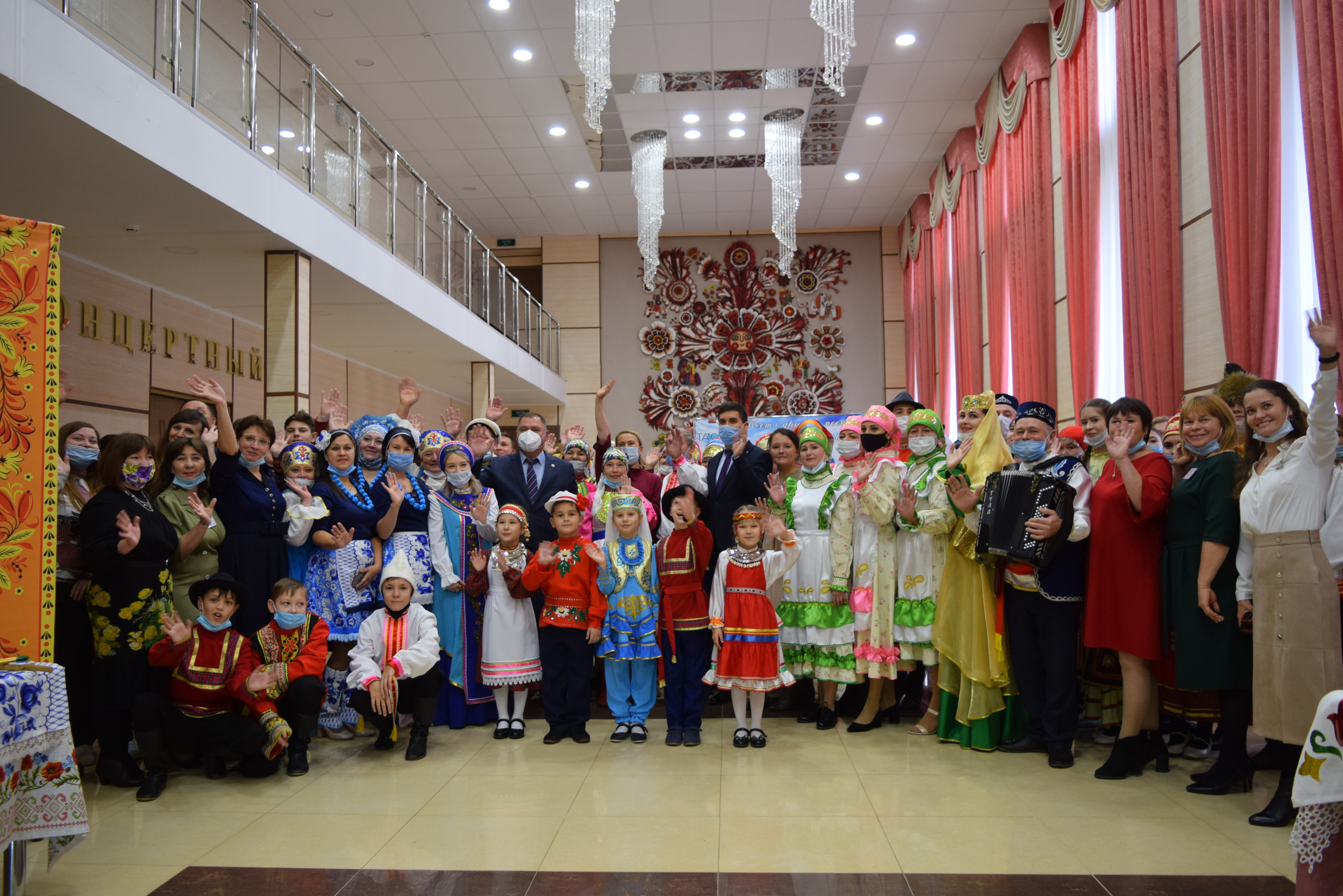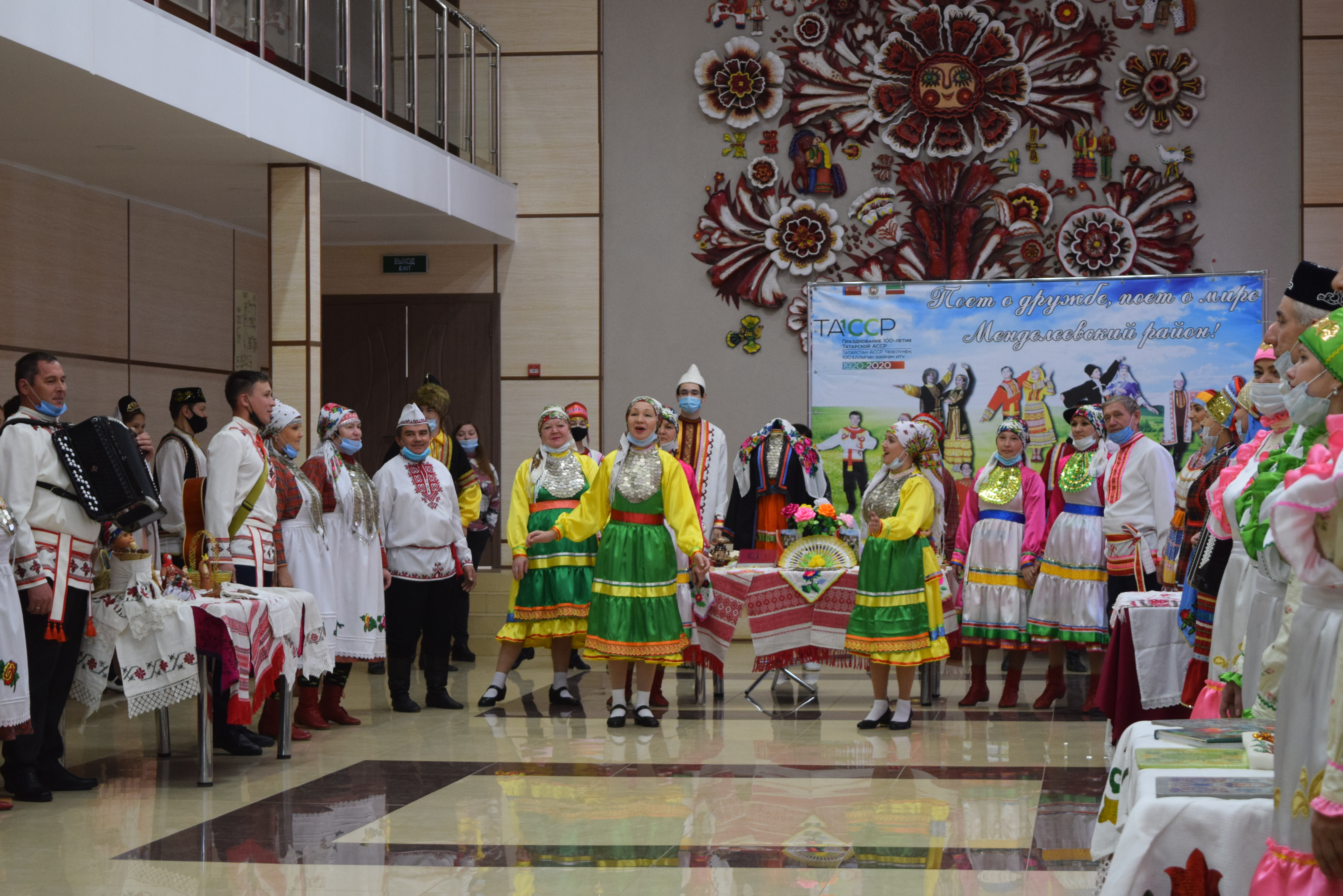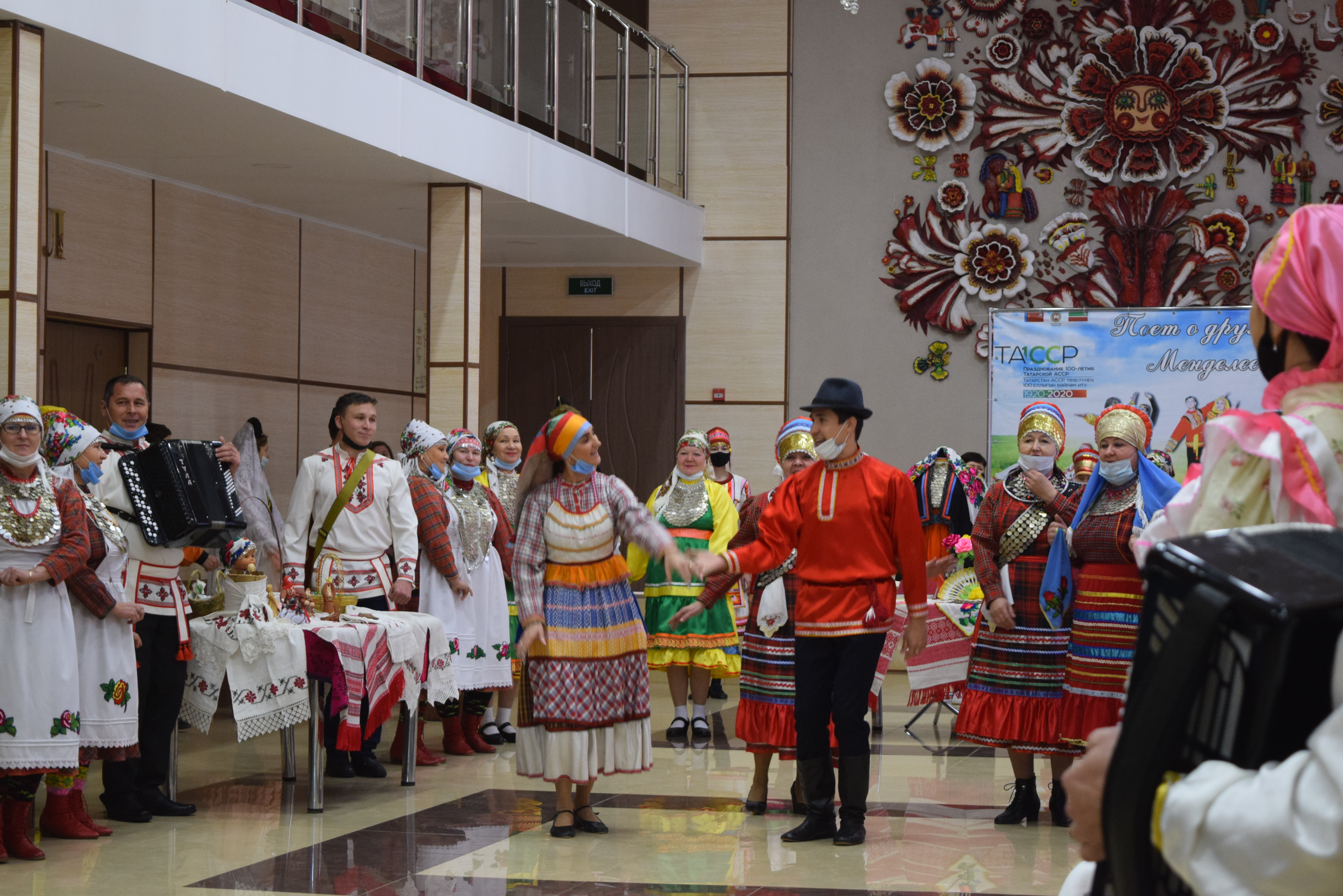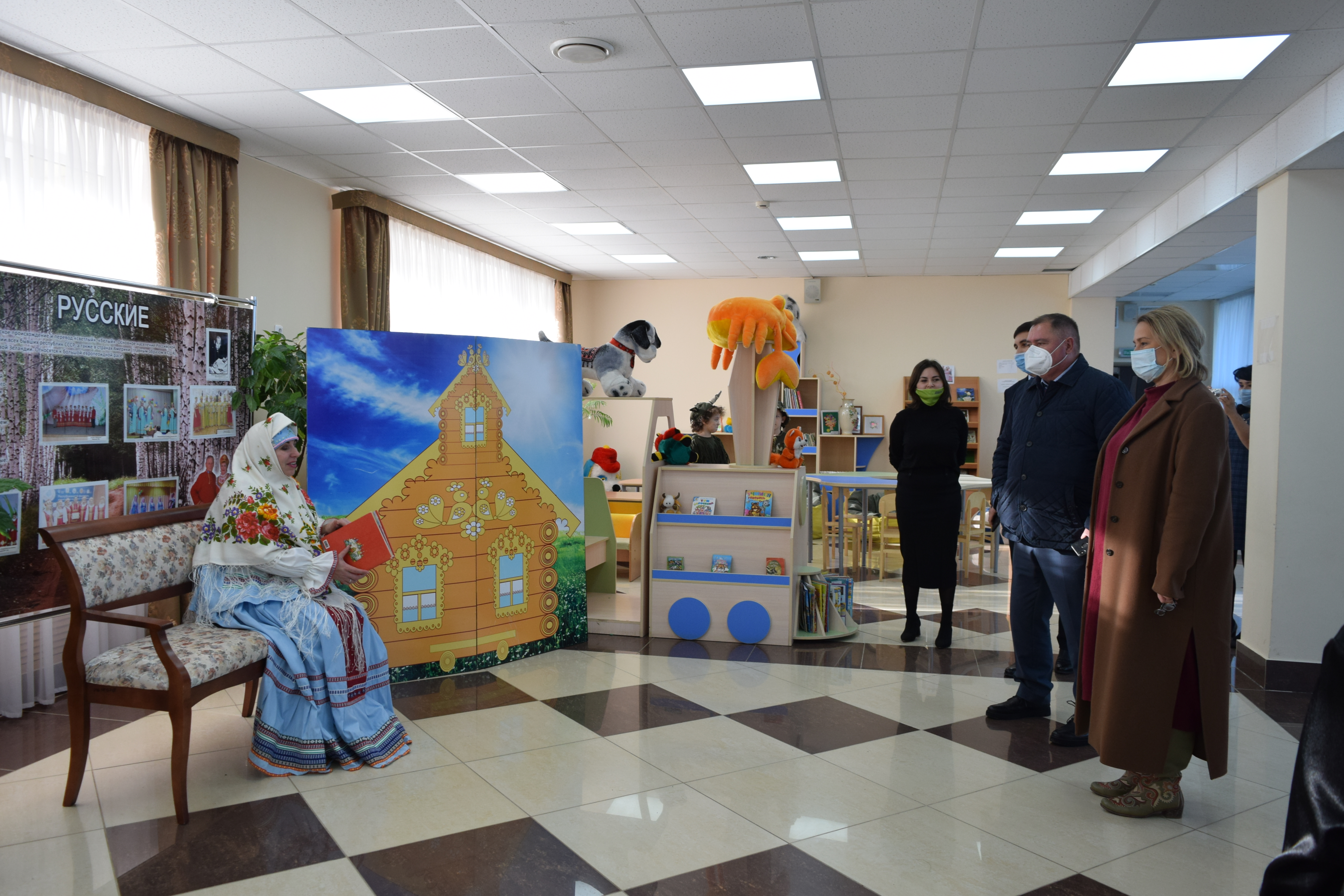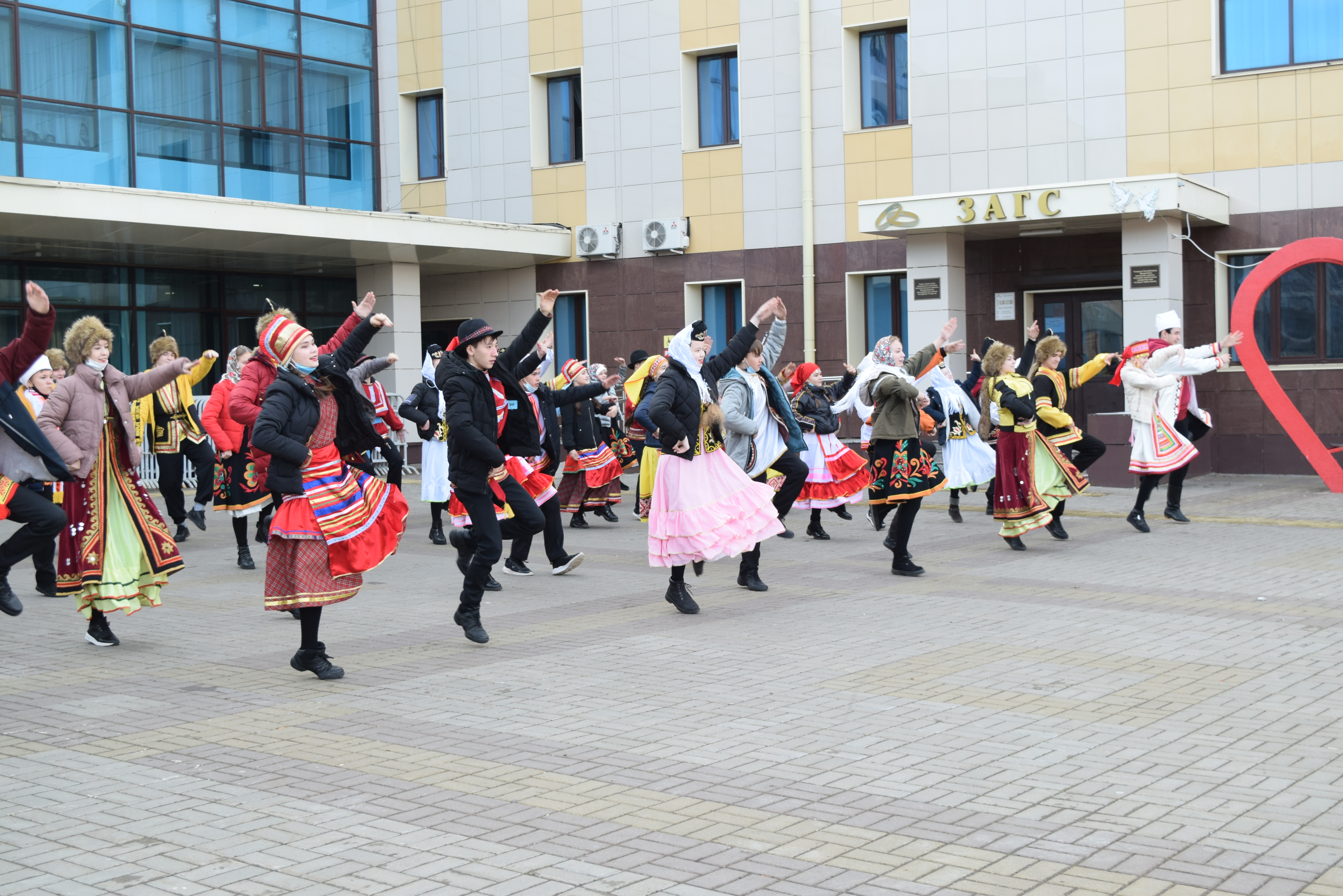 Следующей площадкой для посещения стал Дворец культуры им.С.Гассара. Ярким этно-танцевальным флешмобом на площади прибывшую делегацию встретили коллективы "Кристалл" и "Шаян". Затем воспитанники Народного театра Дворца культуры им.С.Гассара встречали гостей приветствием на разных языках: татарском, русском, марийском, удмуртском, а также продемонстрировали фрагменты планируемого Фестиваля национальных сказок и читателей Централизованной и Детской библиотек.