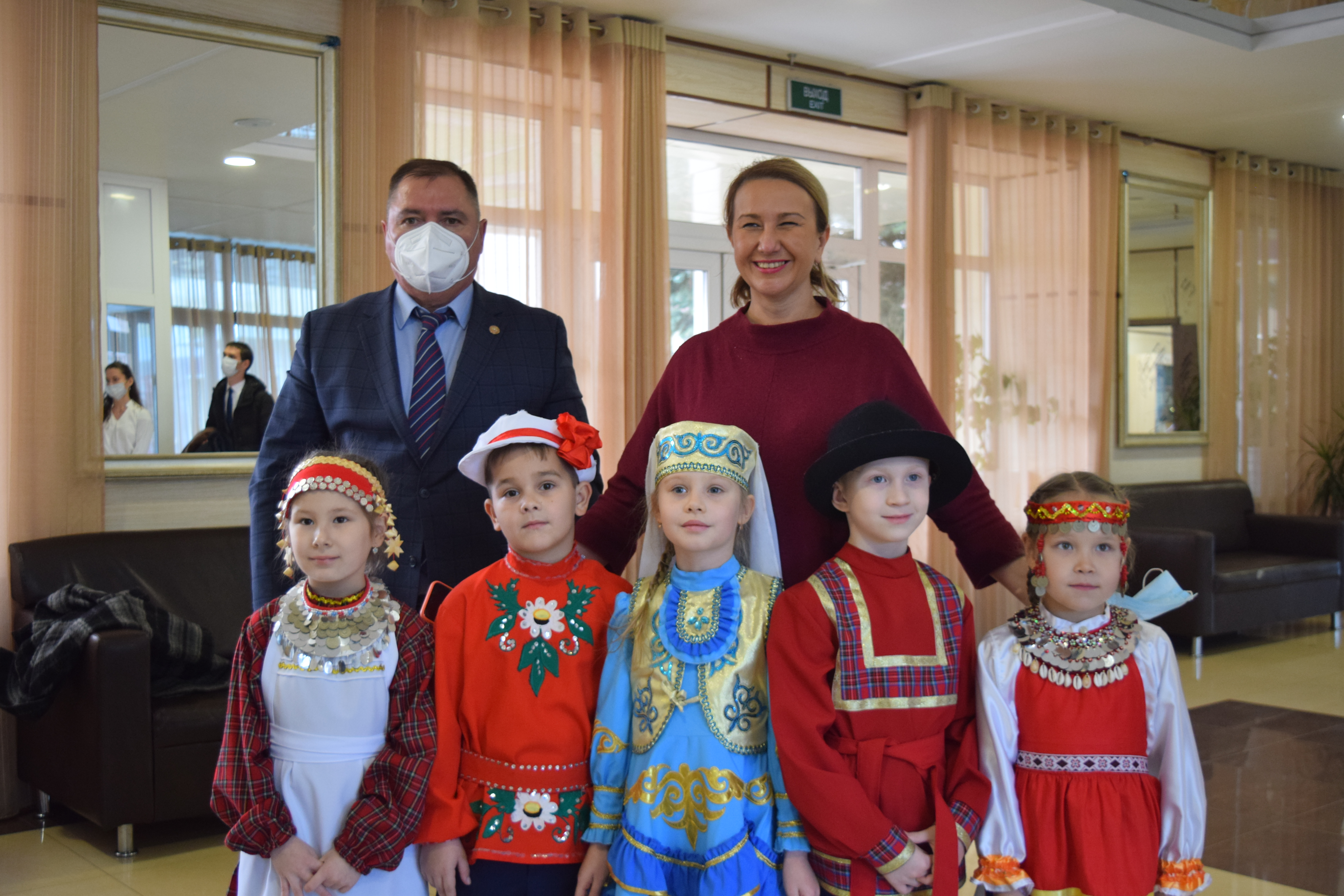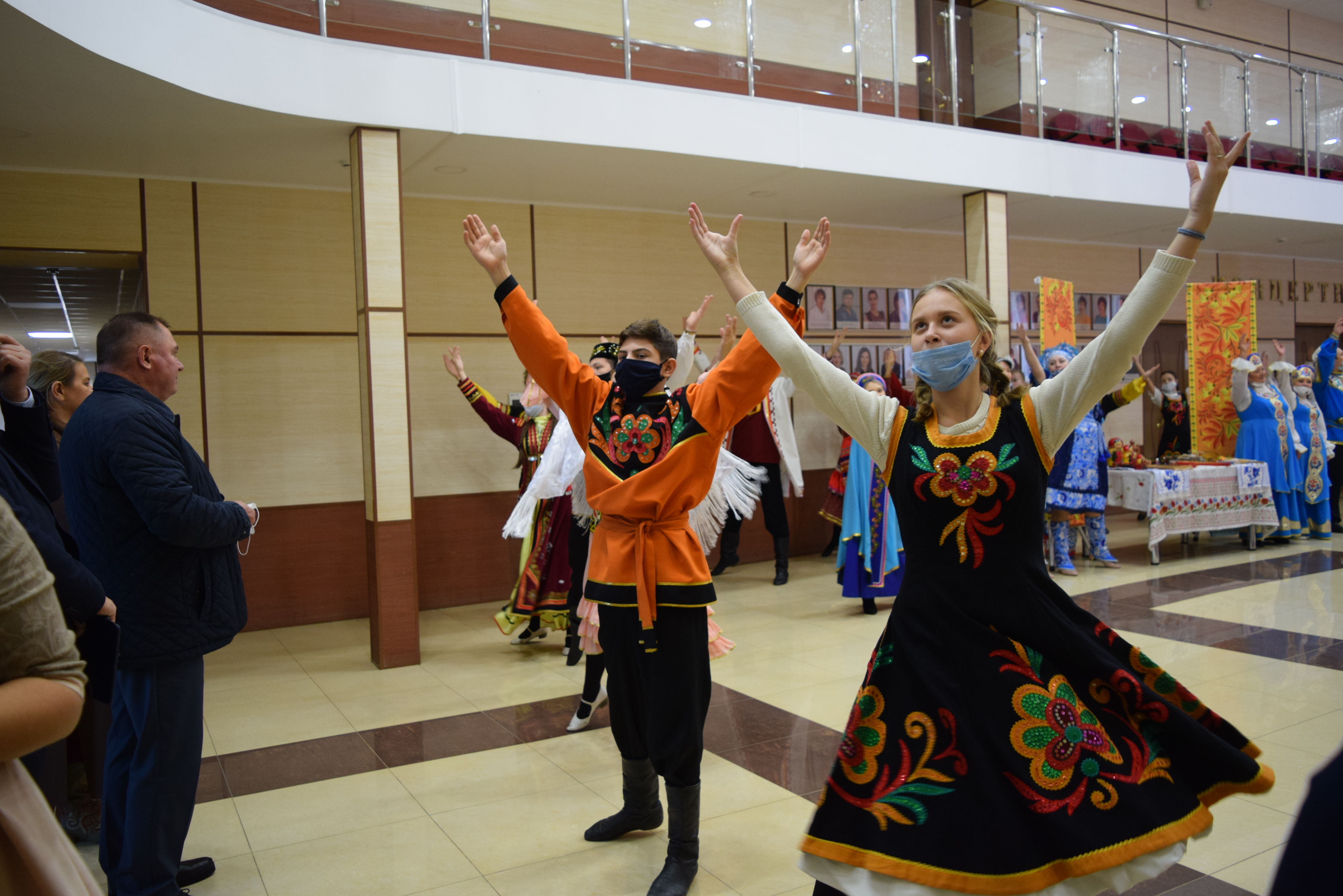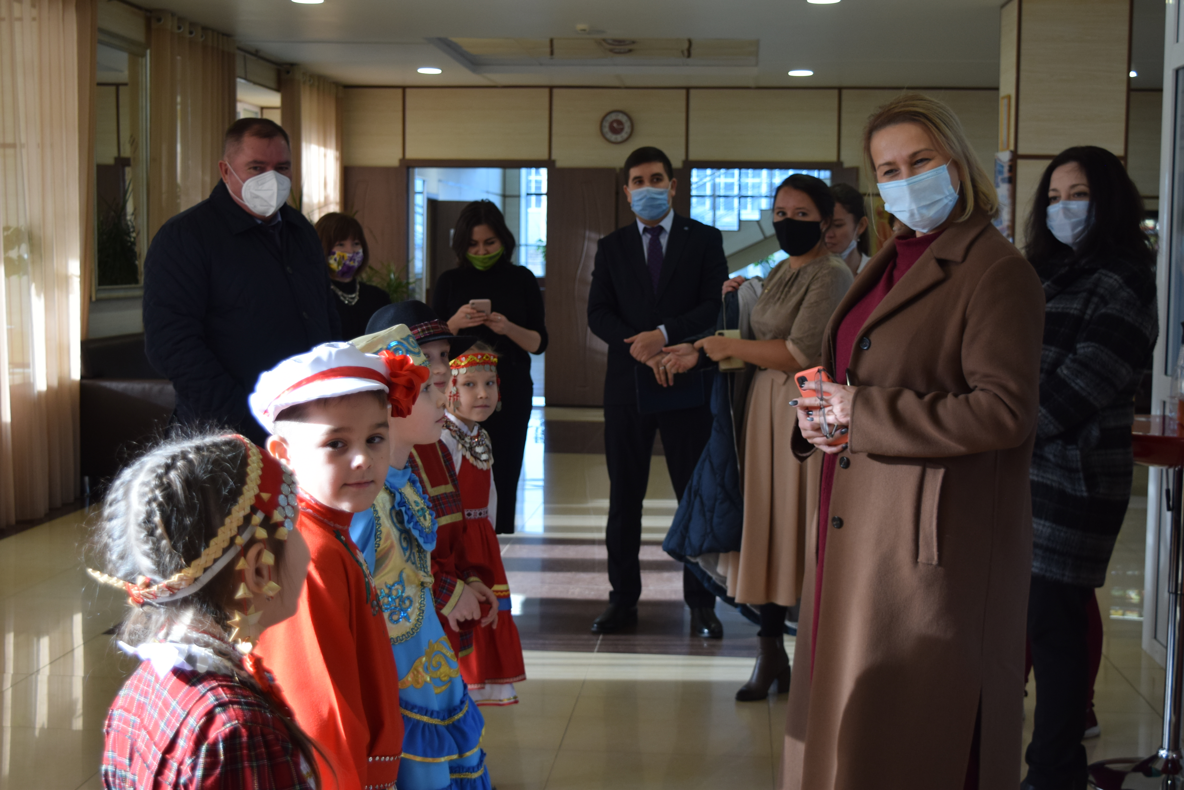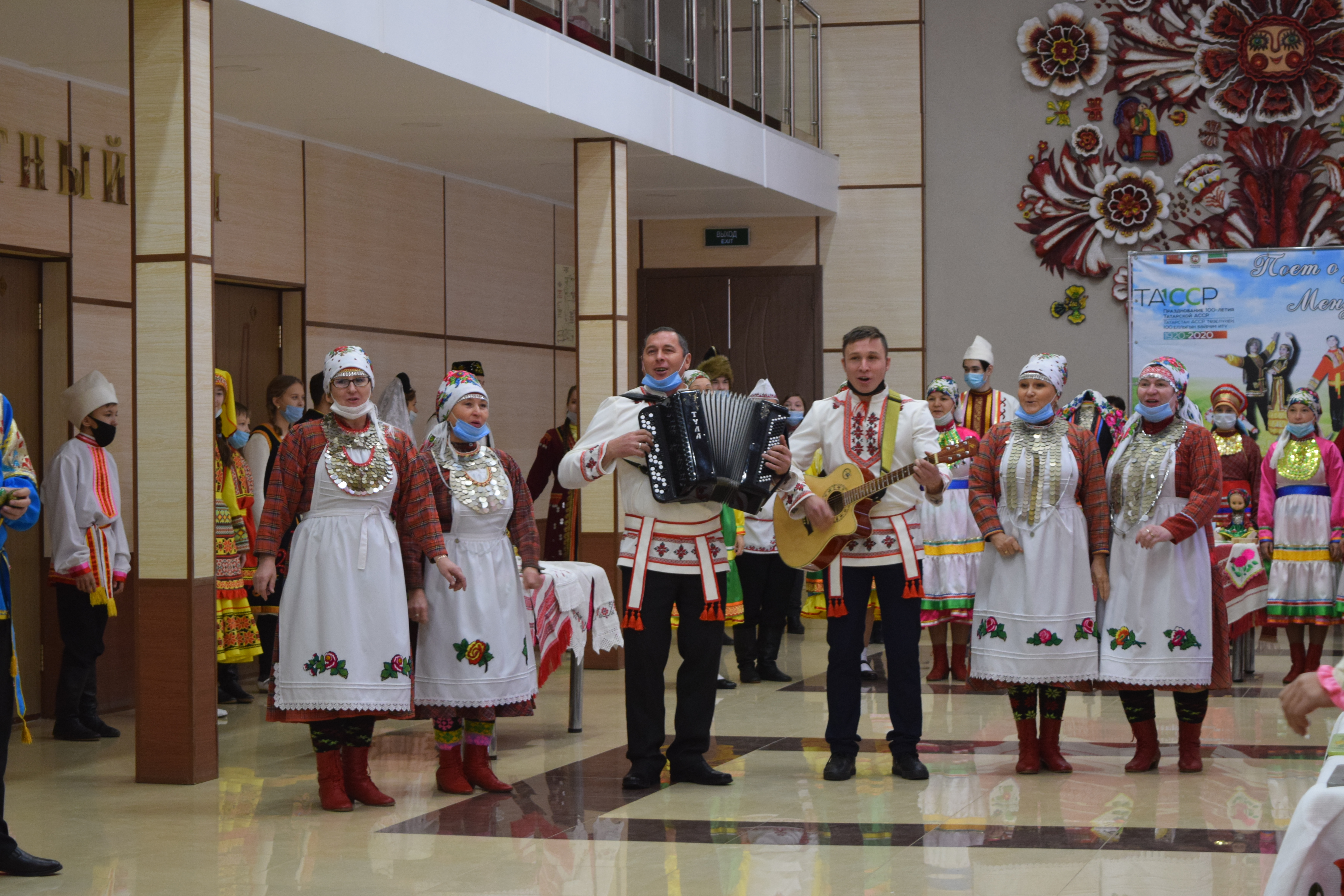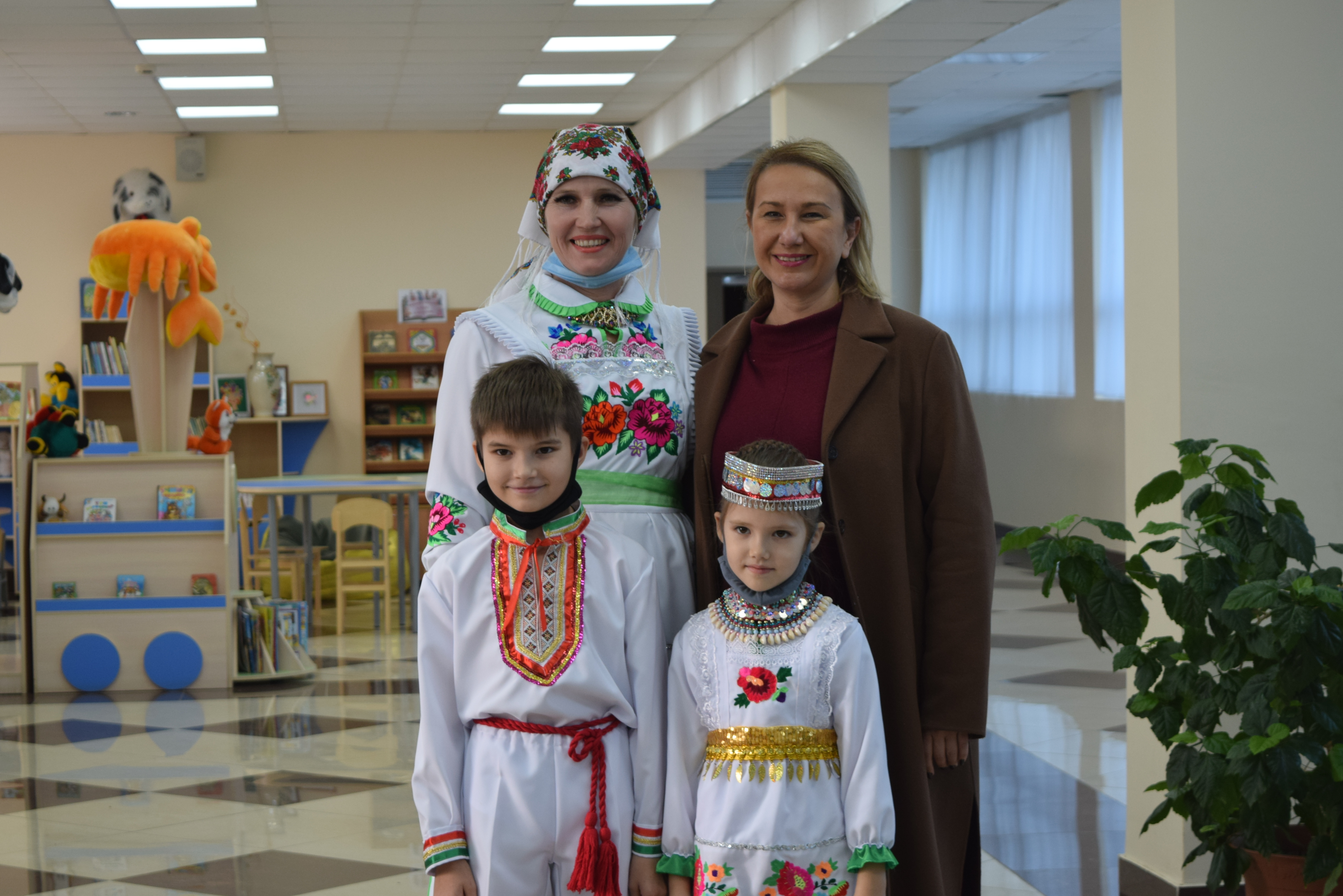 Следующей площадкой для посещения стал Дворец культуры им.С.Гассара. Ярким этно-танцевальным флешмобом на площади прибывшую делегацию встретили коллективы "Кристалл" и "Шаян". Затем воспитанники Народного театра Дворца культуры им.С.Гассара встречали гостей приветствием на разных языках: татарском, русском, марийском, удмуртском, а также продемонстрировали фрагменты планируемого Фестиваля национальных сказок и читателей Централизованной и Детской библиотек.