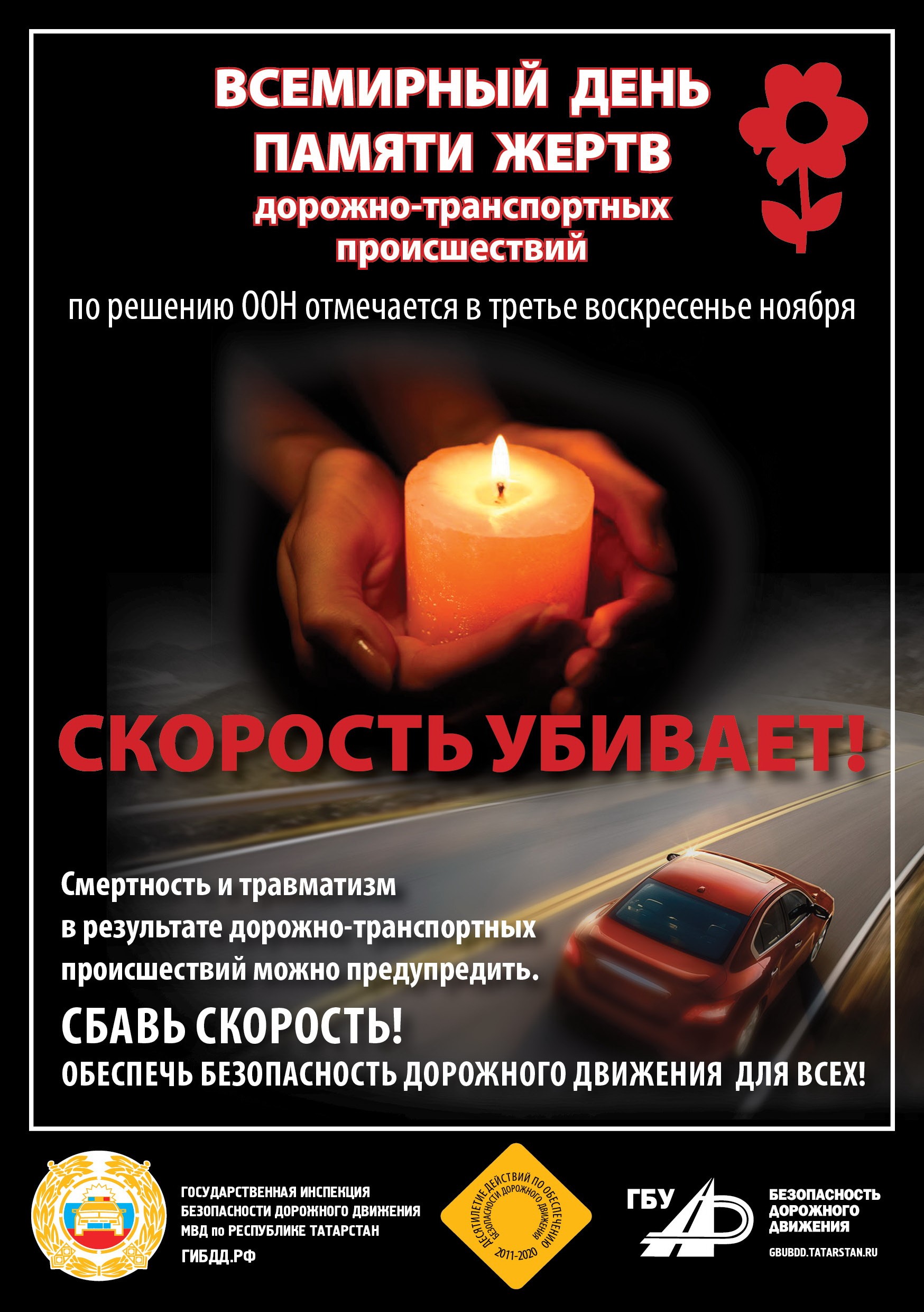 В соответствии с Резолюцией Генеральной Ассамблеи ООН от 26 октября 2005 года ежегодно в третье воскресенье ноября отмечается Всемирный день памяти жертв дорожно-транспортных происшествий.