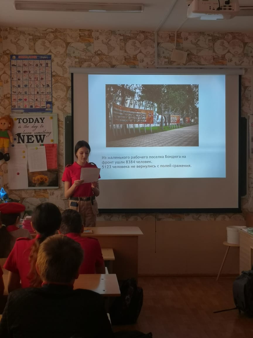 Во всех классах одновременно прошли классные часы, на которых детей познакомили с историей этого дня. Были приведены данные о погибших и пропавших без вести на фронтах Великой Отечественной войны. Завершились уроки мужества минутой молчания в память всех, кто остался на полях сражений.