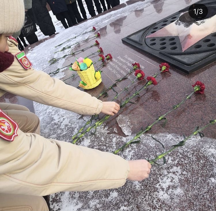 После уроков юнармейцы возложили цветы к памятнику Неизвестному солдату.