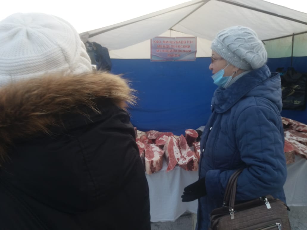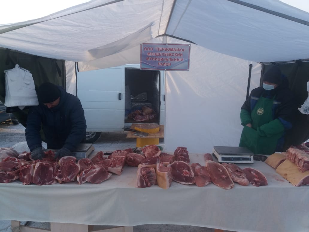 Свою продукцию представили КФХ Миндубаев Р. Н. - три точки с говядиной, ООО "Биокам" и ООО "МПК "Первомайка" - точки со свининой, Менделеевское РАЙПО, ЛПХ Антипов Ю. И. - с медом, ЛПХ Сабитов - с продукцией птицеводство.