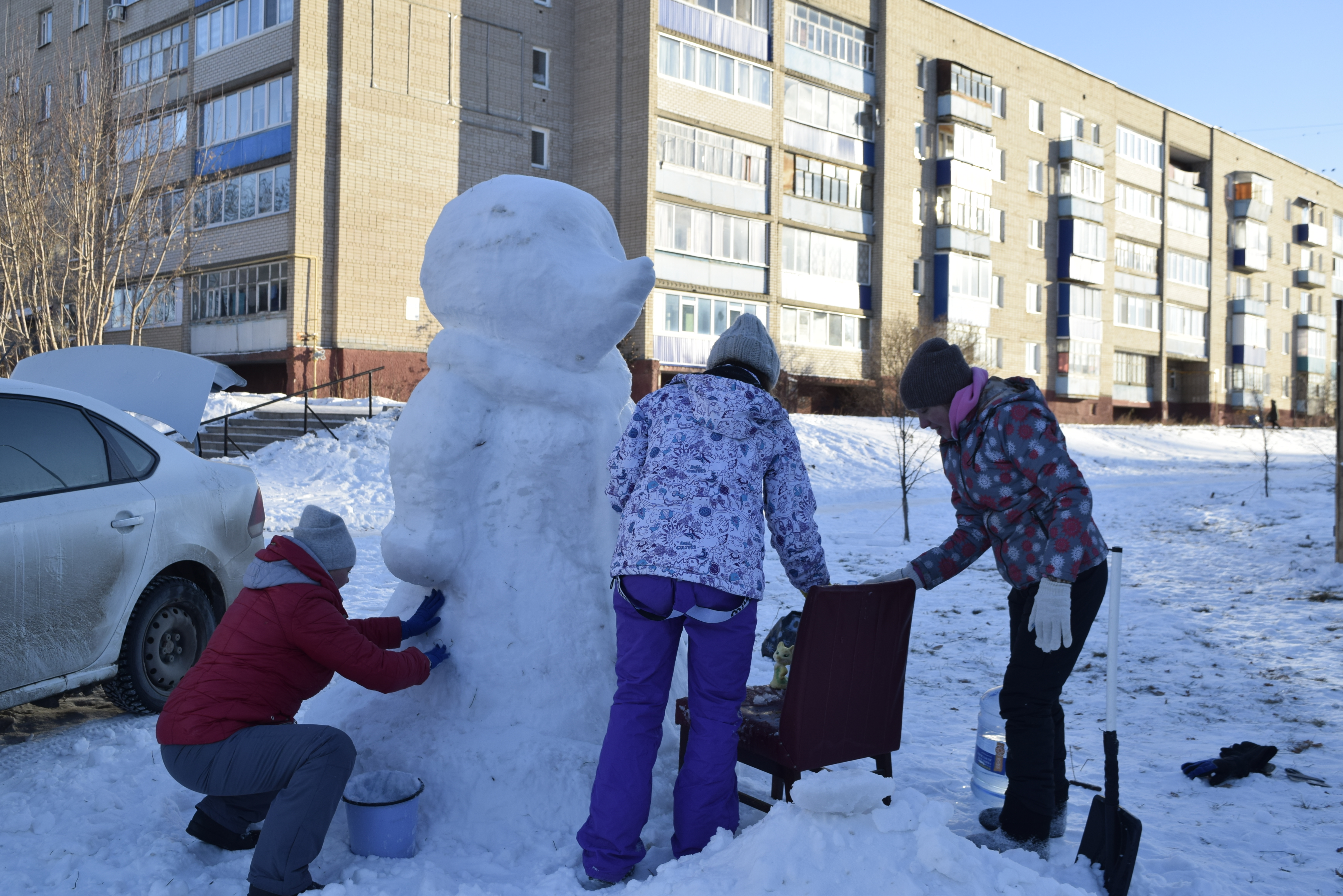 Так, сотрудники Управления образования принимают активное участие в создании снежных скульптур.