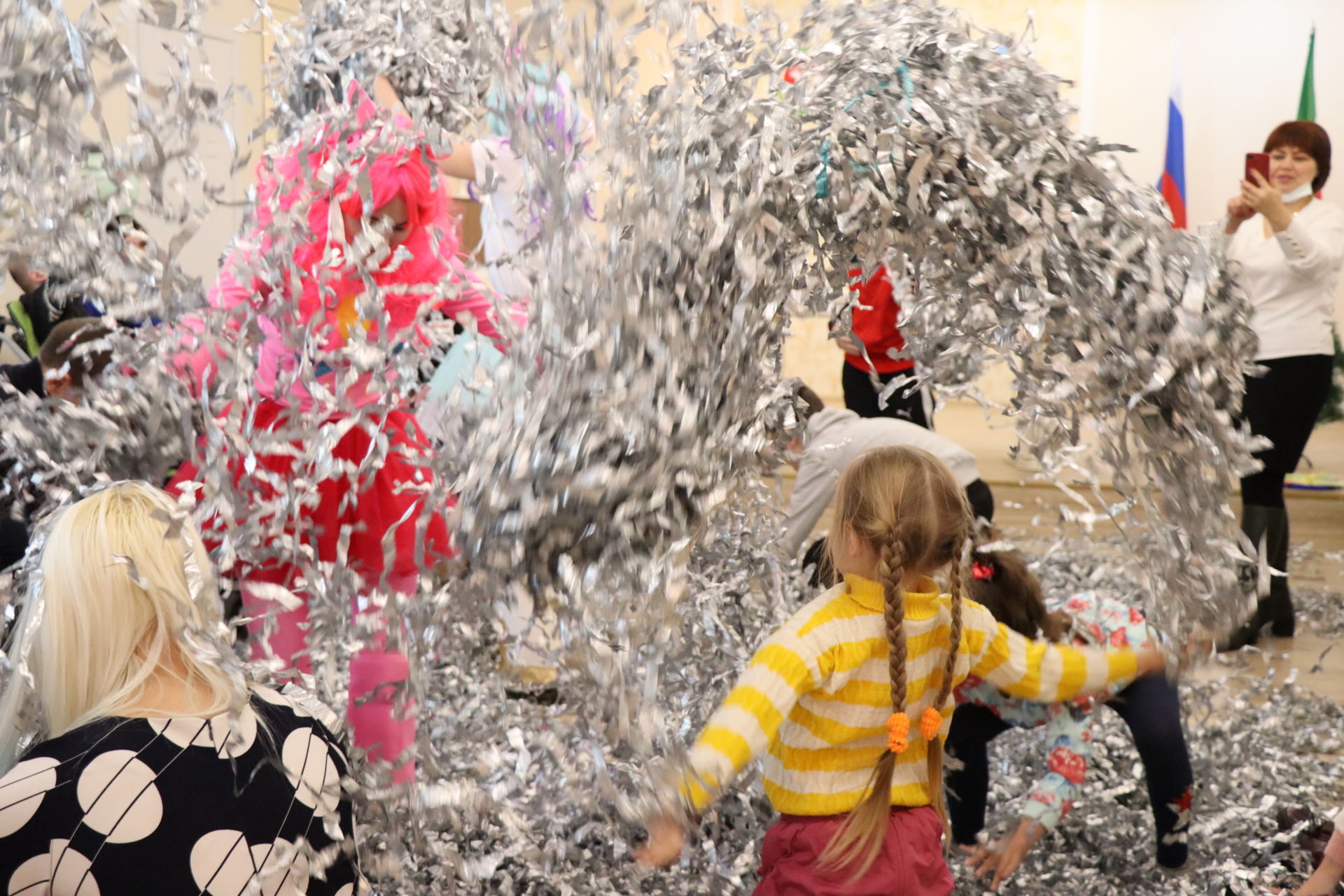 На протяжении всего вечера с детьми играли приглашенные аниматоры, в завершении были подарены сладкие подарки.