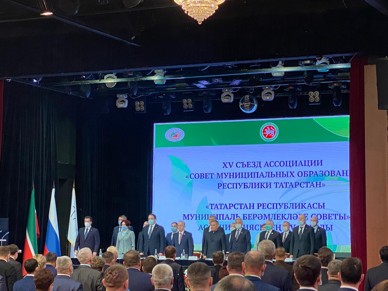 В Казани проходит 15-й Съезд муниципальных образований Татарстана. В нем принимают участие Президент РТ Рустам Минниханов, Председатель Государственного Совета Фарид Мухаметшин, Премьер-министр Алексей Песошин, руководитель Аппарата Президента РТ Асгат Сафаров, сообщается на сайте "Россия Татарстан".