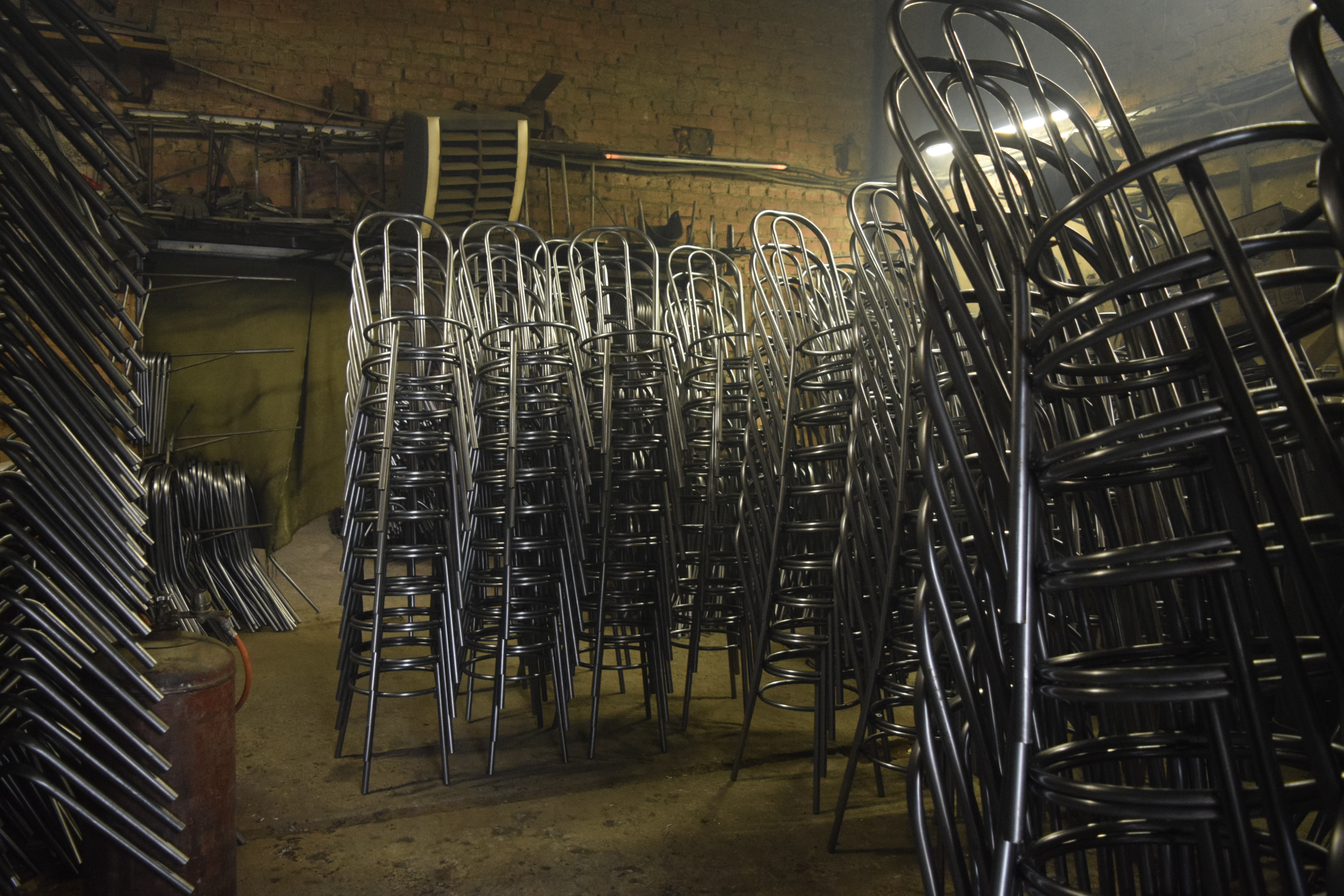 Здесь в 5 цехах производятся табуреты, стулья, вешалки, стойки для обуви и другое.