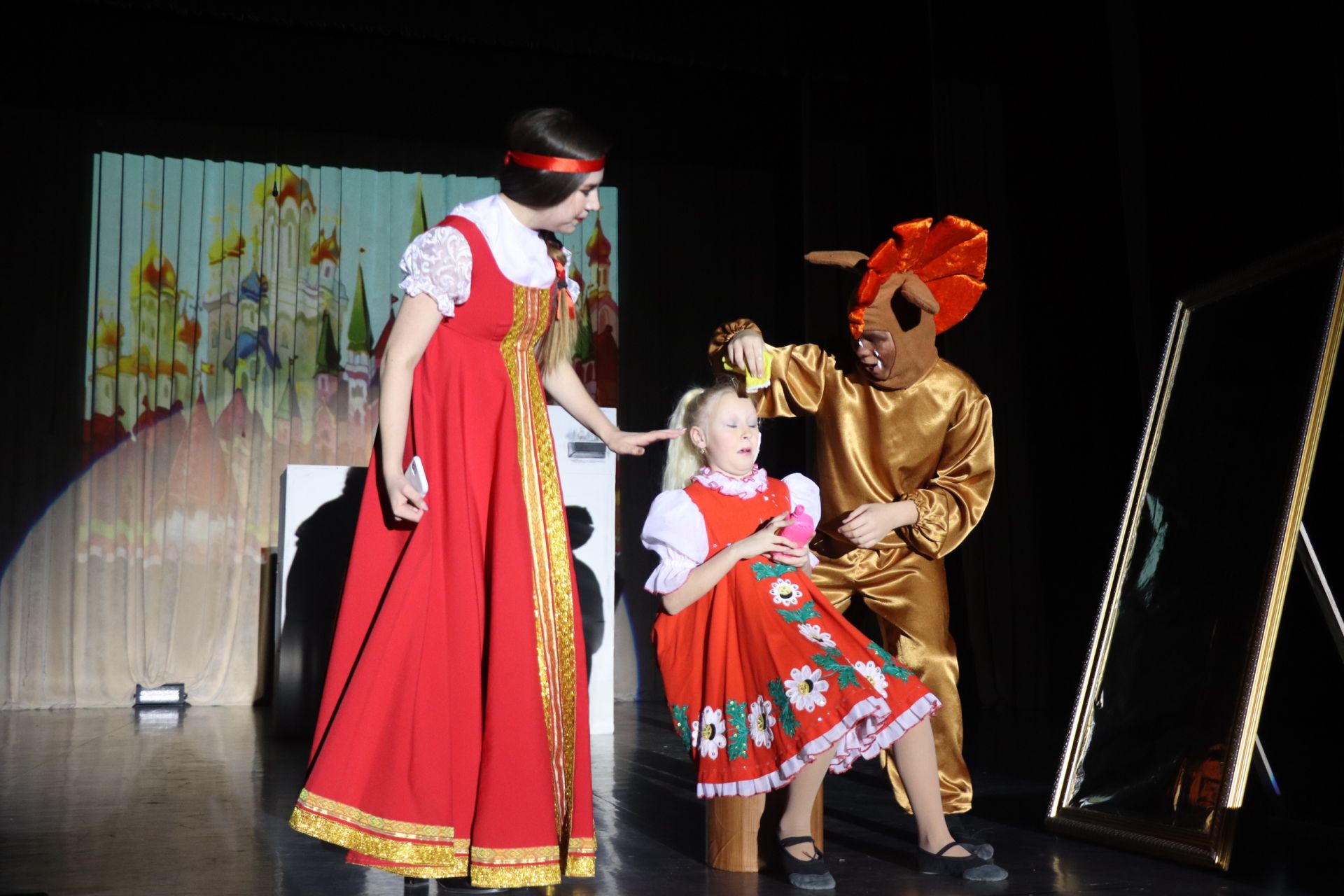Спектакль режиссёра постановщика Гульназ Стрелковой призван не только развлечь детей, но и увлечь их настоящей историей русских богатырей, желанием совершать подвиги и творить добро.