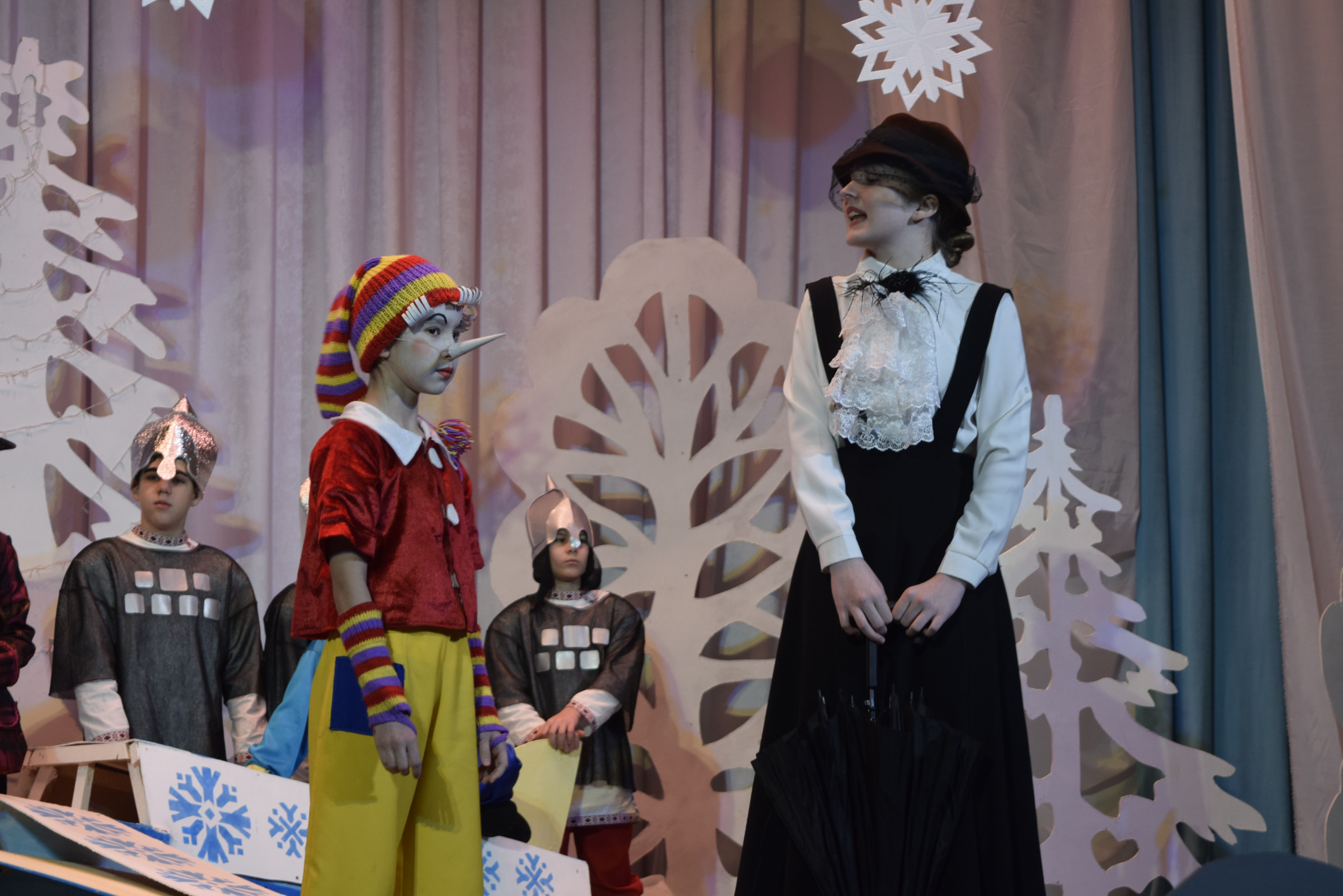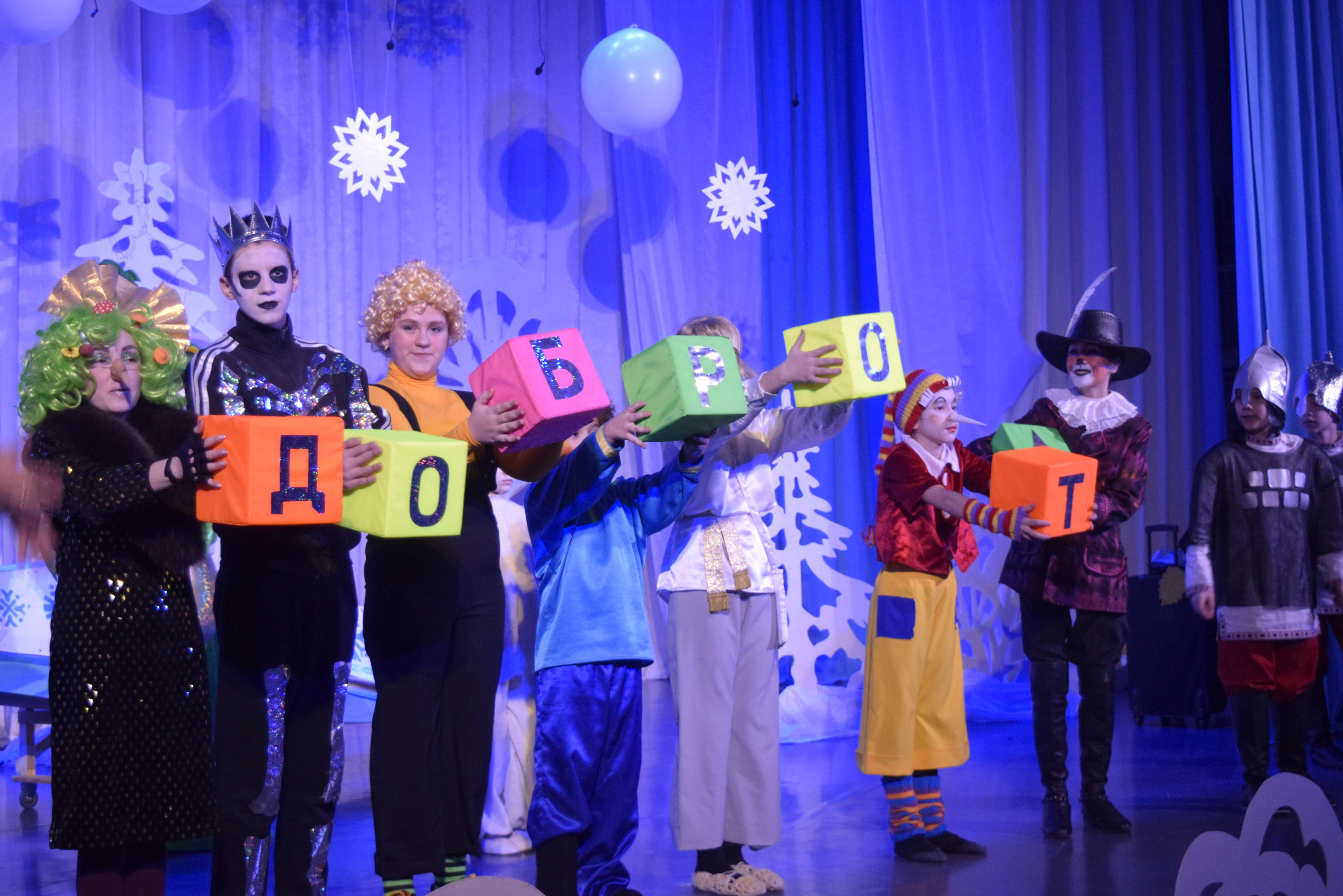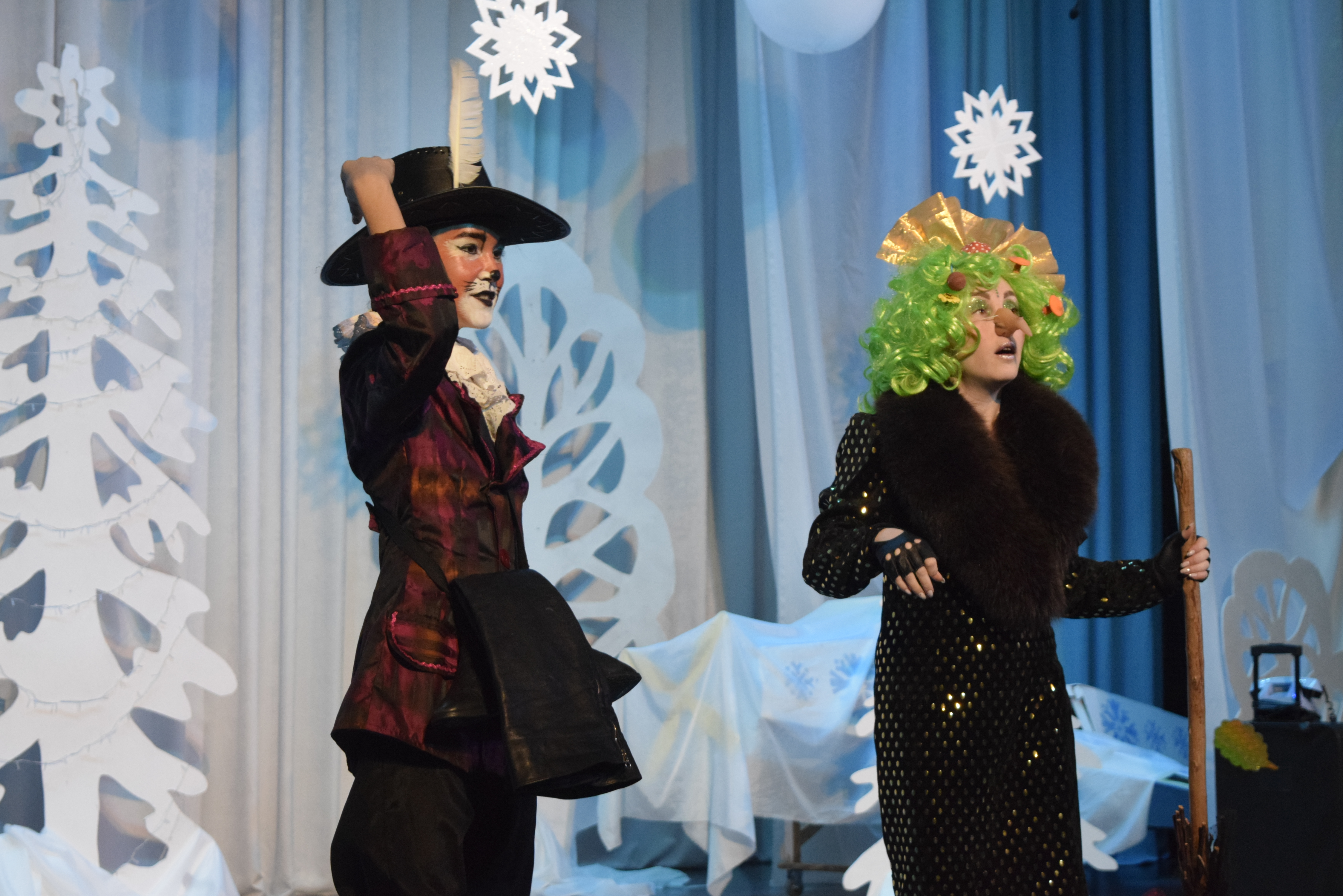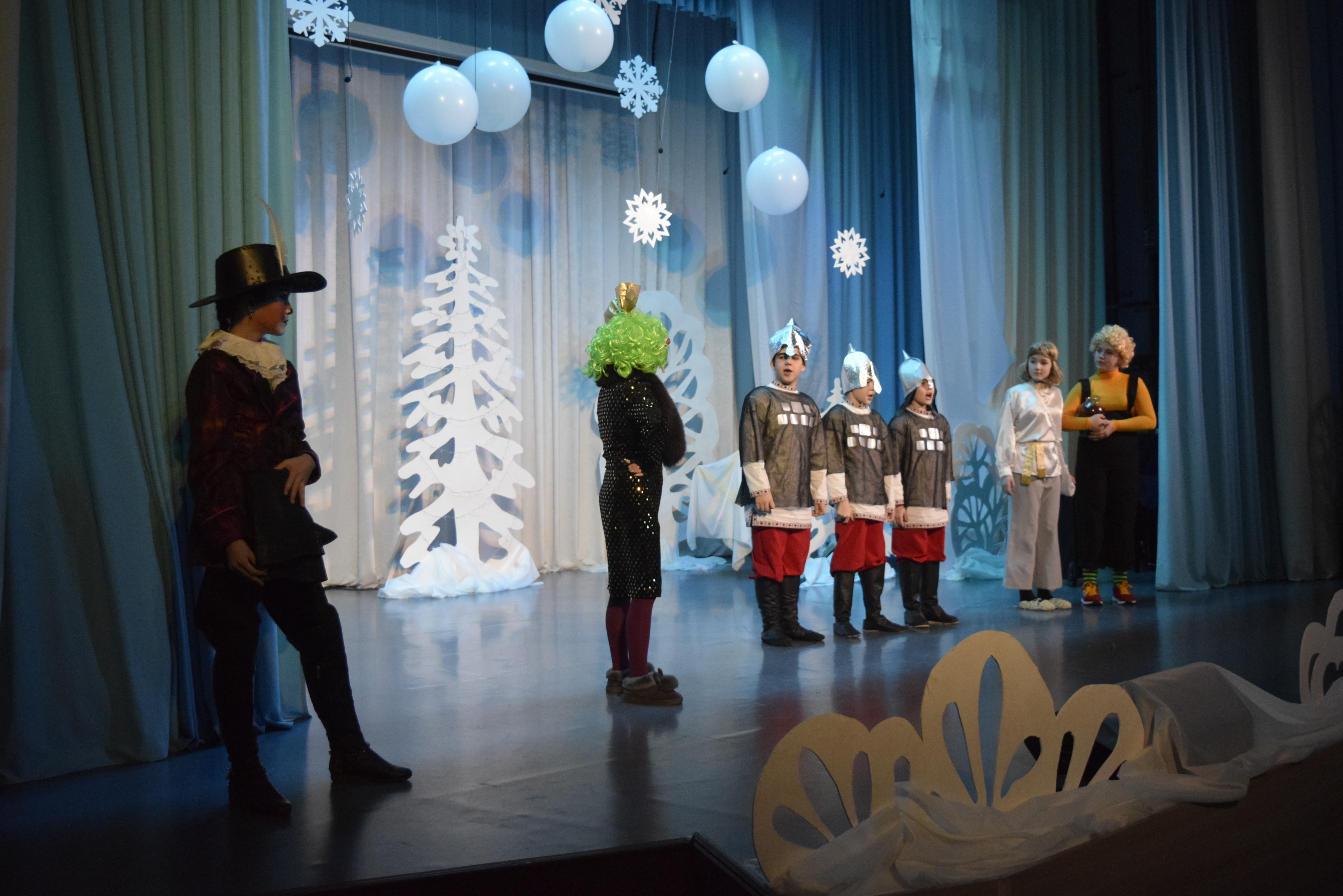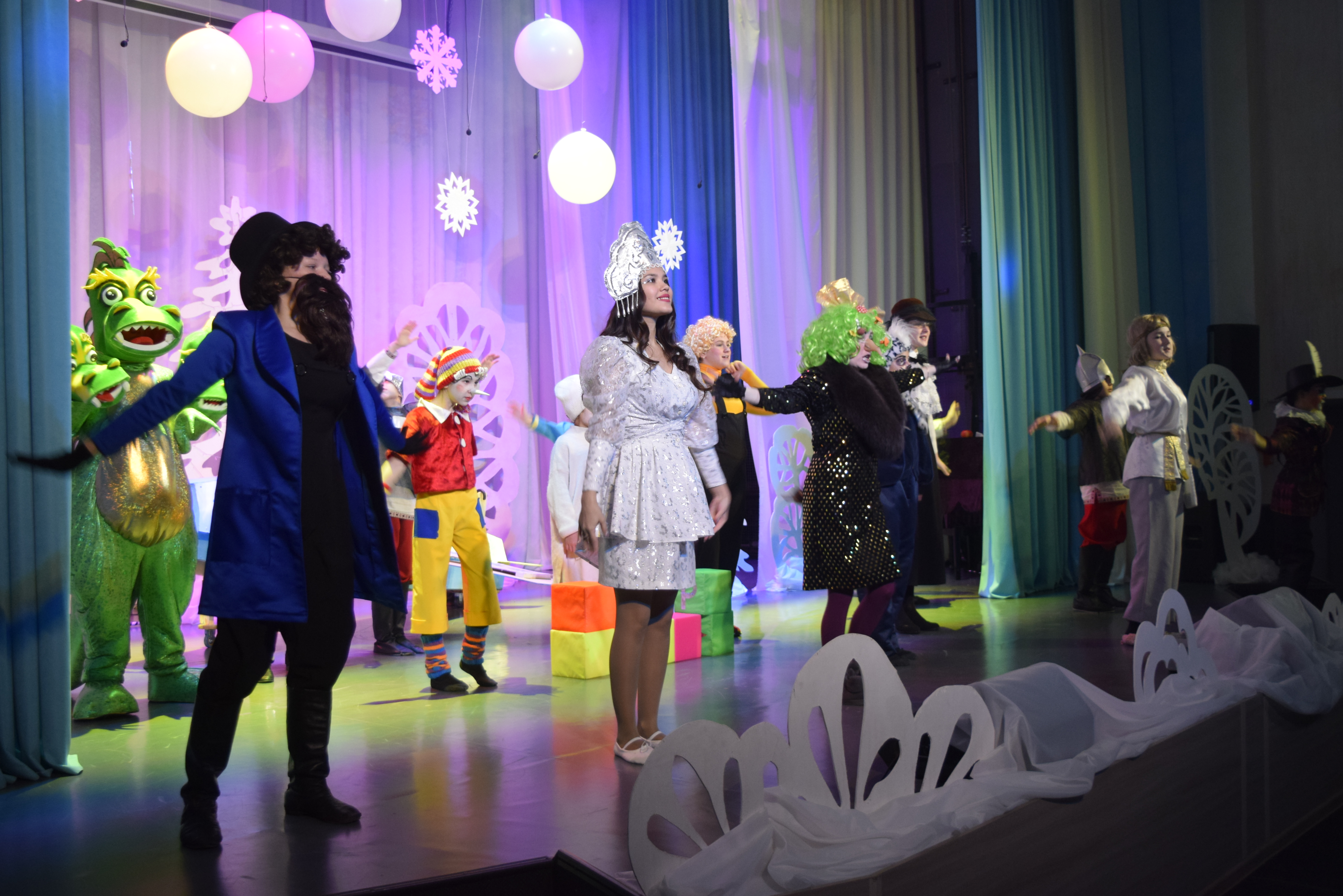 Собравшиеся посмотрели сказочный спектакль "Кто поедет в Новый год", поставленный воспитанниками ДШИ. Сказочные герои и невероятные декорации увлекли в сказочную страну всех ребят. Вместе с артистами дети играли в игры, разгадывали загадки и танцевали.