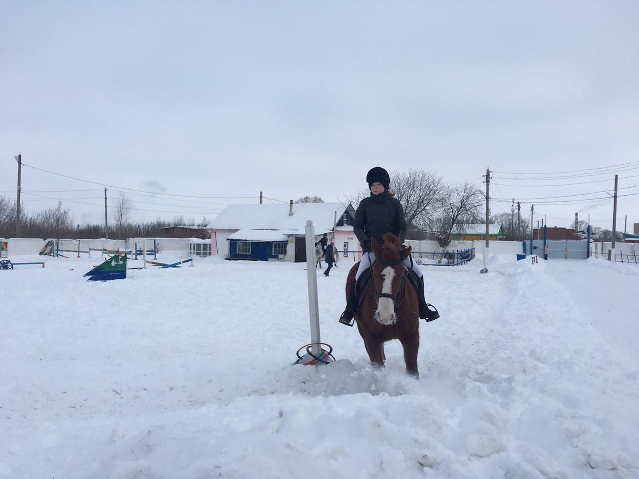 На старт этого испытания вышли 5 всадников. Несмотря на холодную погоду ребята показали хорошую игру, получили массу удовольствий и заряд бодрости. Лидером стала Тарасова Лия на лошади София, 2 место у Ильиной Анастасии на лошади Король, тройку замкнула Красильникова Елизавета на лошади Калифорния.