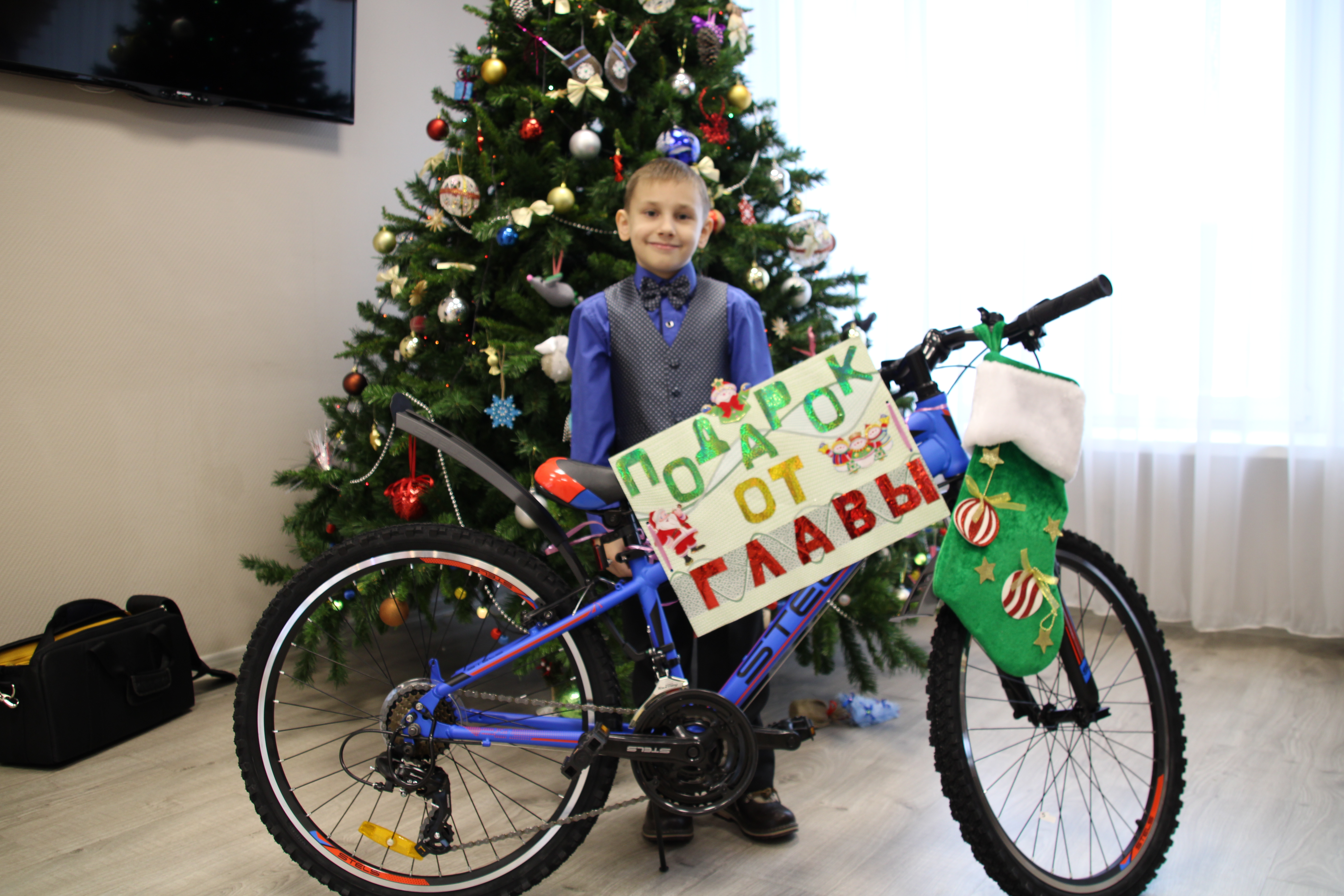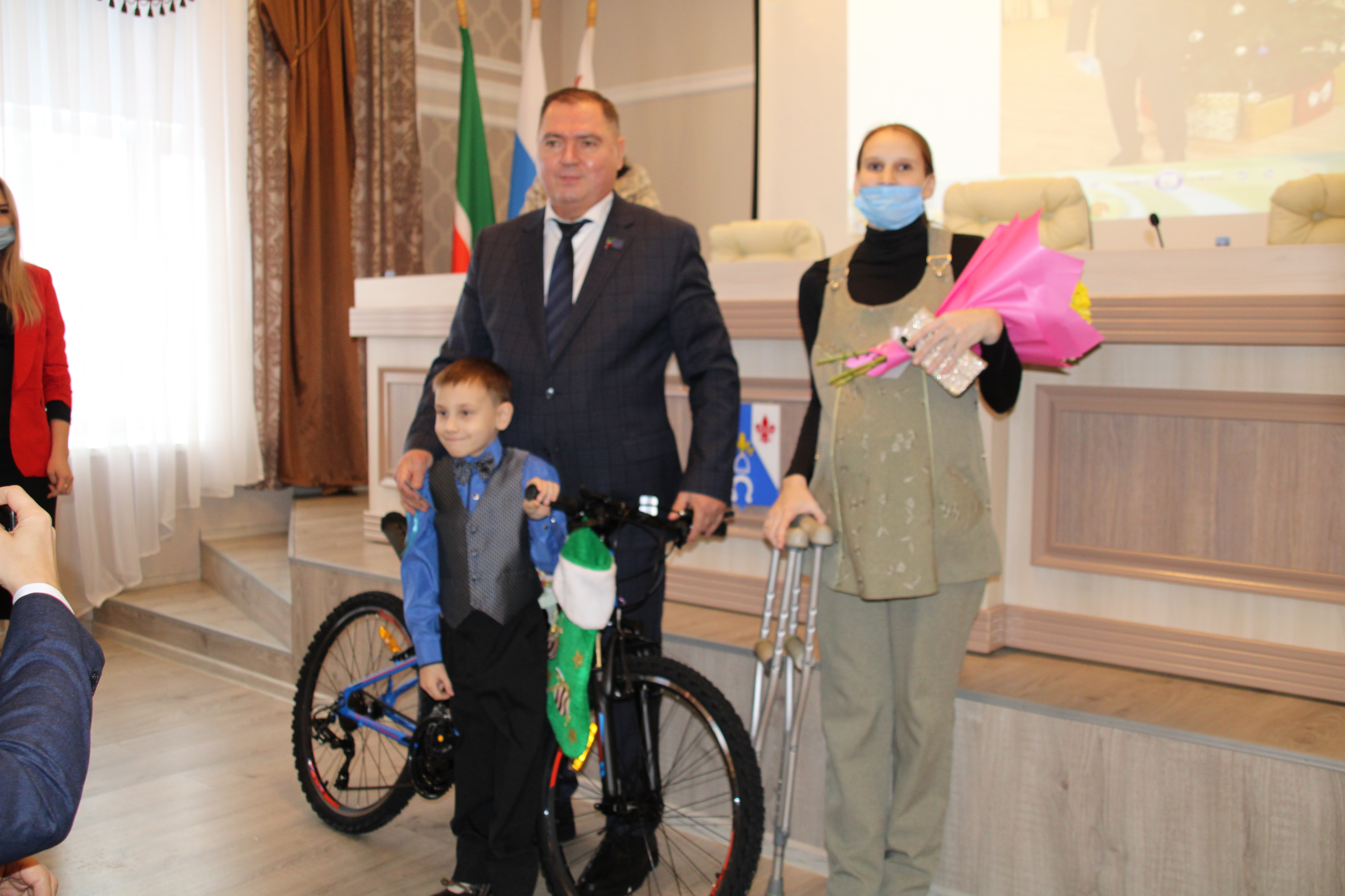 Принимая участие во всероссийской акции "Елка желаний" на елке Президента РТ, Глава района Валерий Чершинцев исполнил желание учащегося средней общеобразовательной школы №4 - Евгения Демина, который загадал скоростной велосипед.