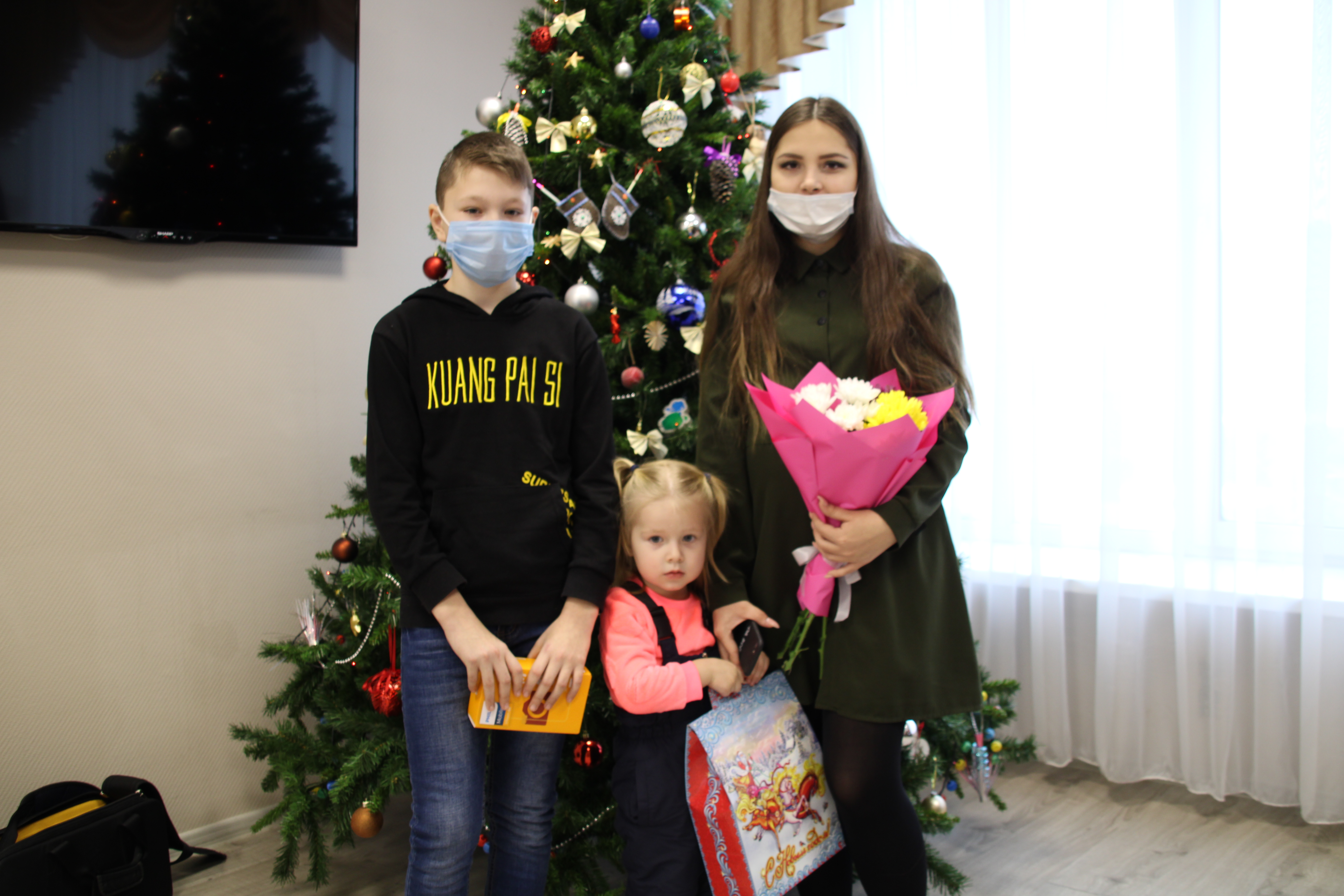 А в рамках благотворительного проекта "Елка желаний" в редакции "Менделеевские новости" была проведена акция "Мечты сбываются" при поддержке Главы Менделеевского района и депутатского корпуса города сотовый телефон был вручен Ивану Чемутову и сладкий новогодний подарок для сестренки Есении.