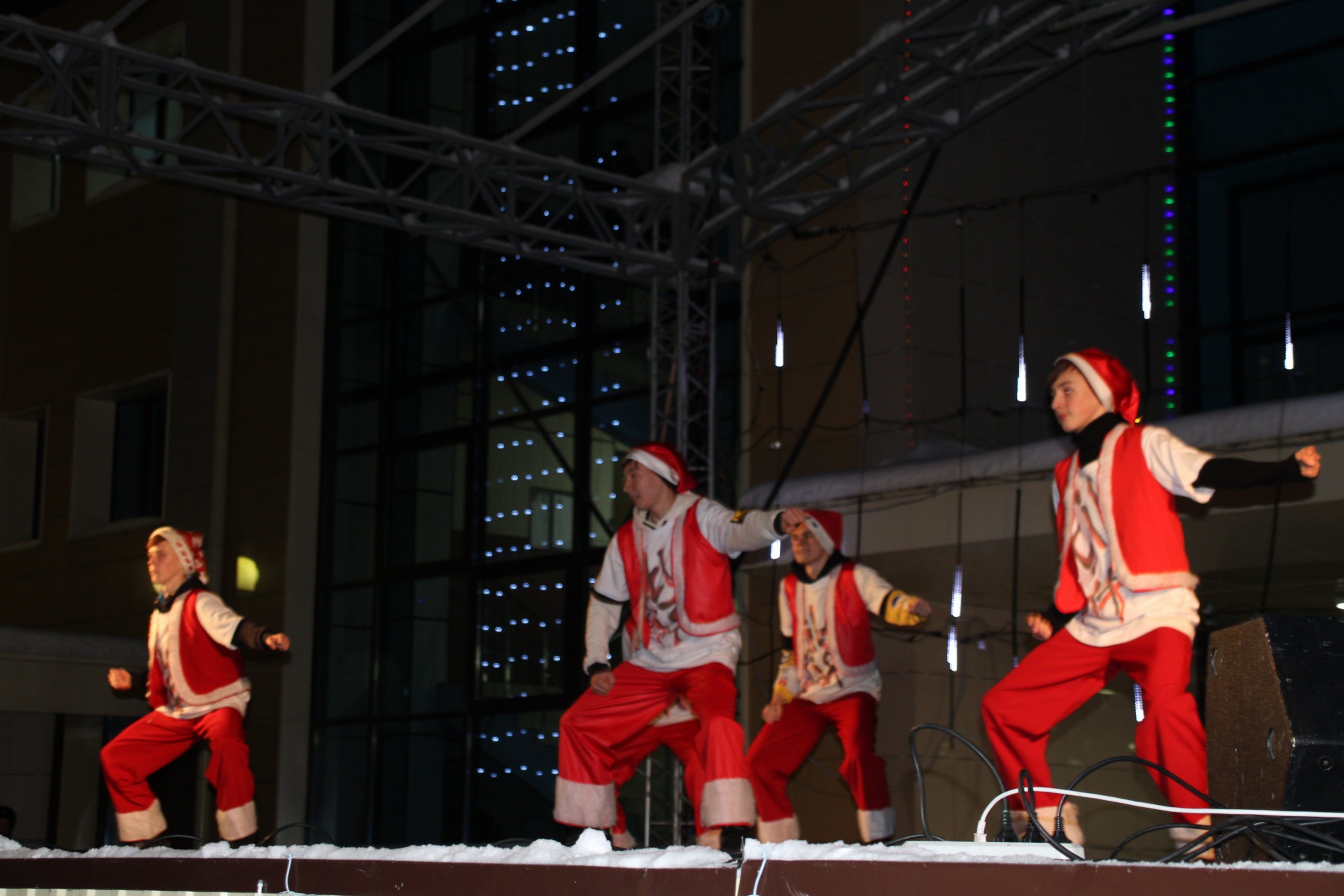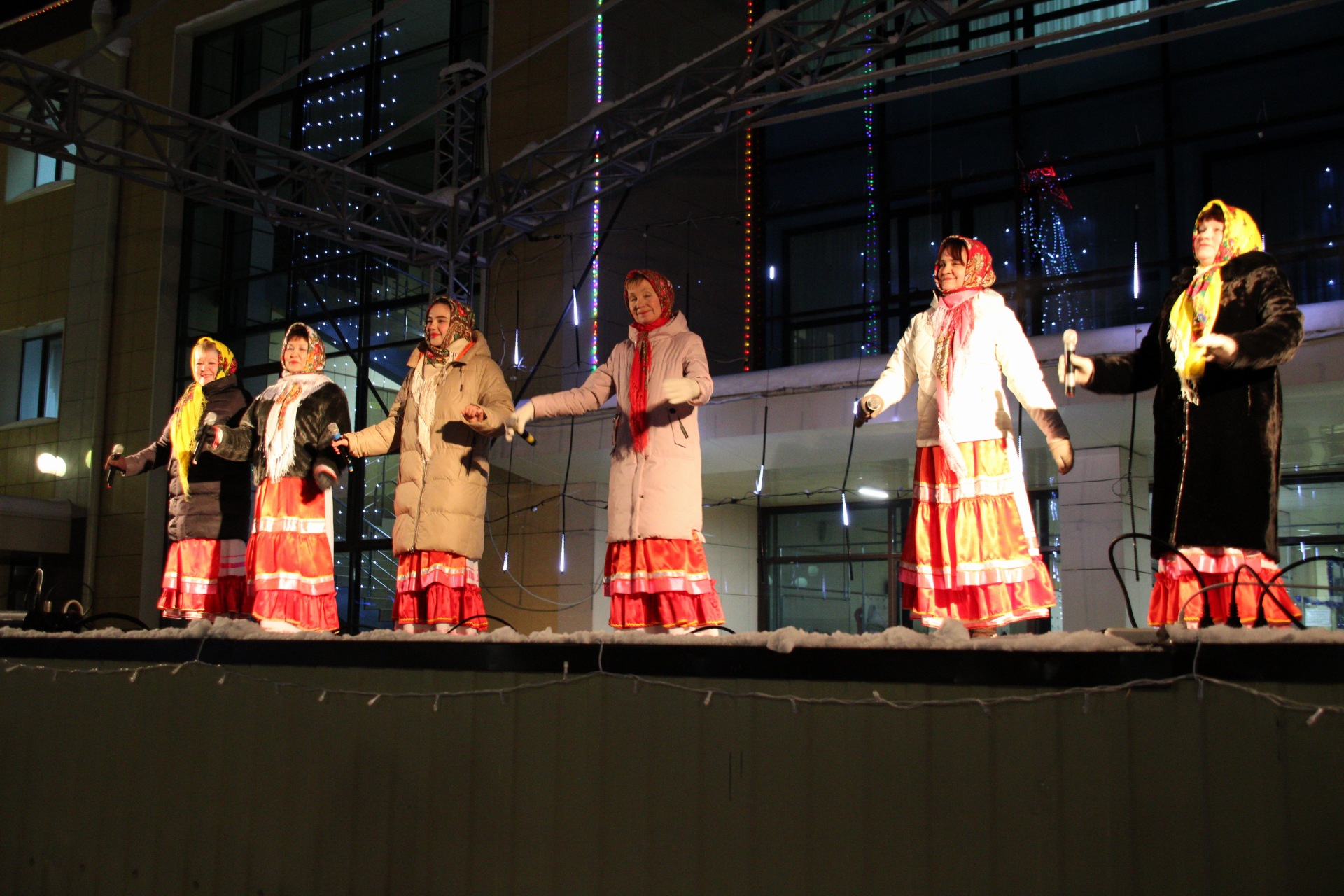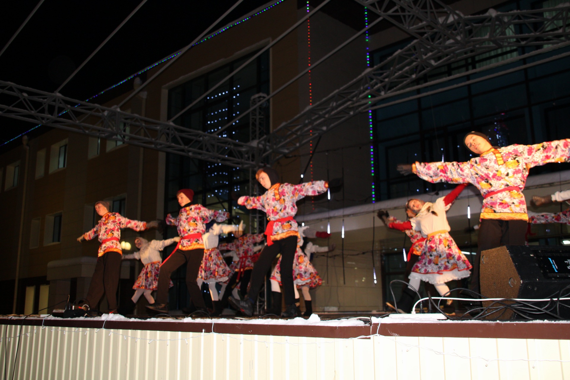 С 18:00 для всех собравшихся местные артисты пели песни, творческие коллективы выступили со своими яркими номерами, чтобы проводить уходящий год красочно и весело.