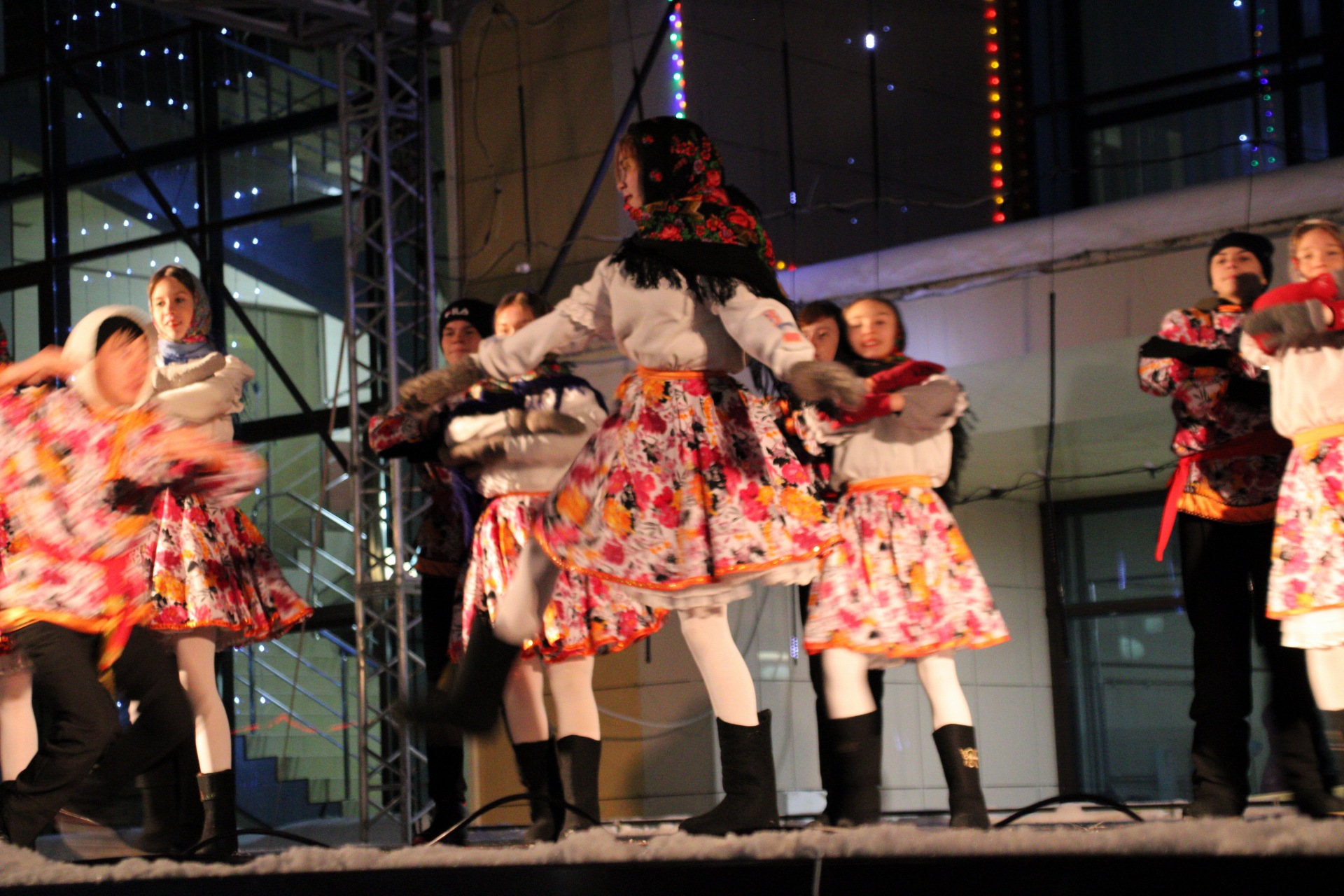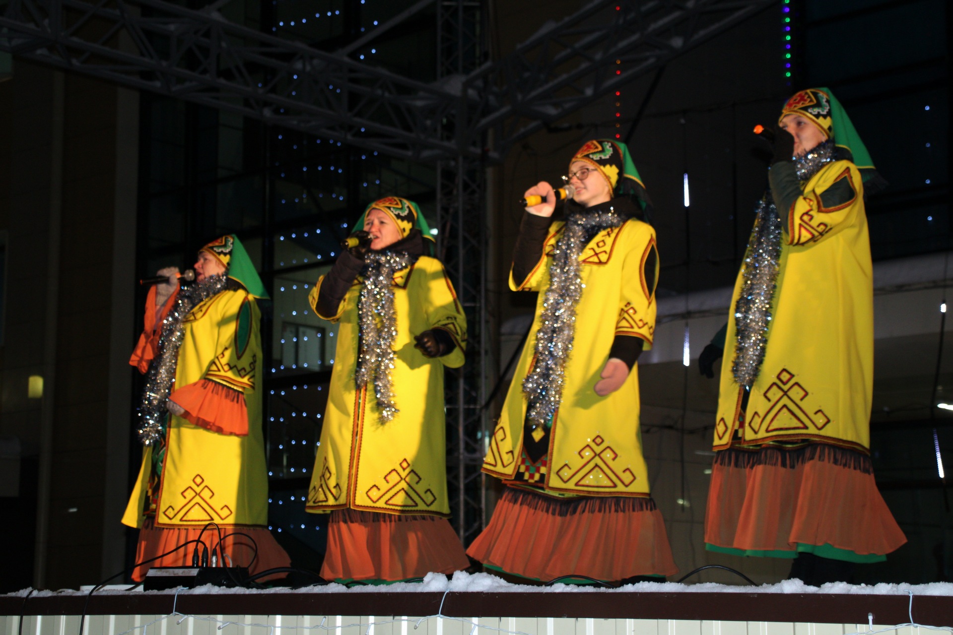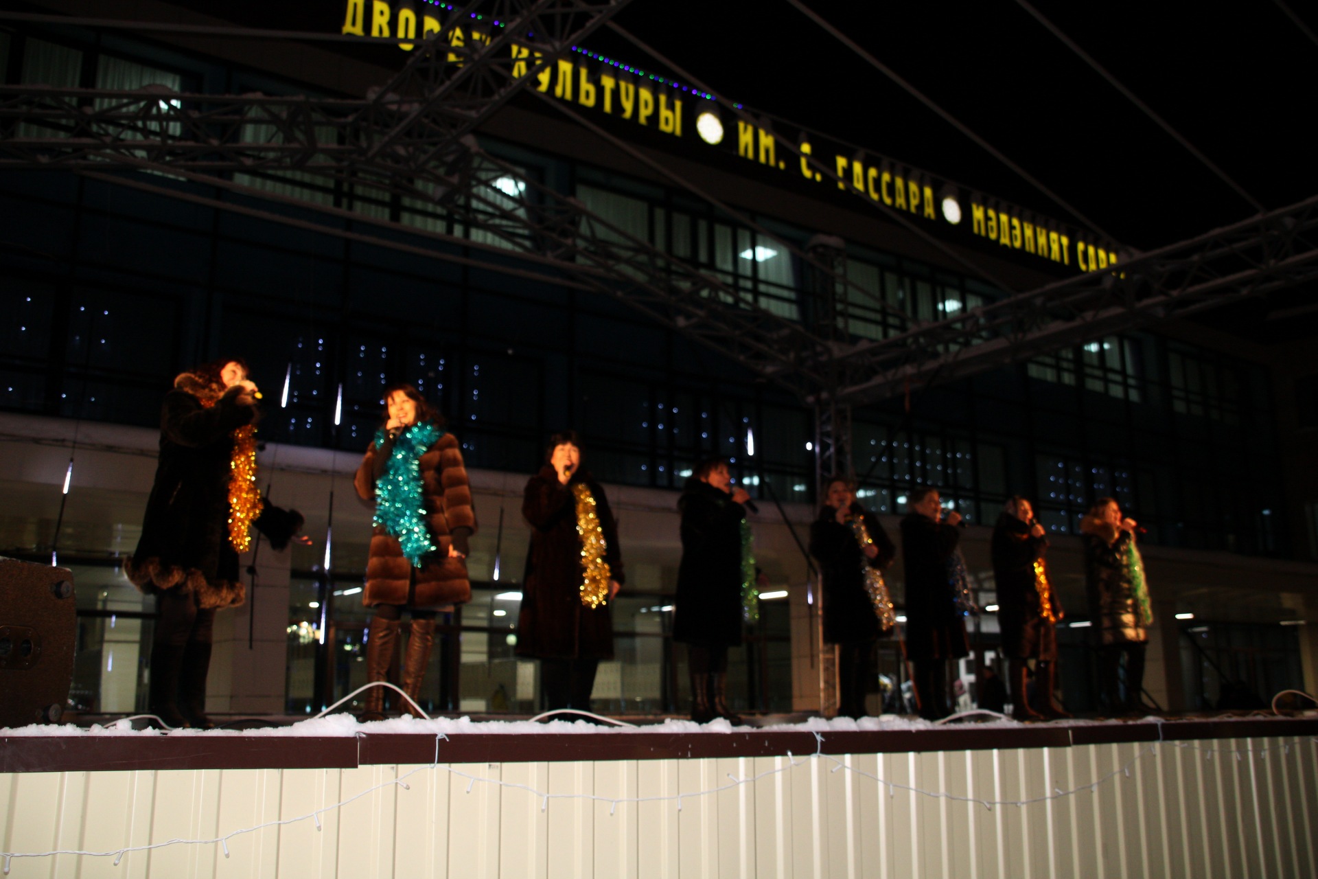 С 18:00 для всех собравшихся местные артисты пели песни, творческие коллективы выступили со своими яркими номерами, чтобы проводить уходящий год красочно и весело.