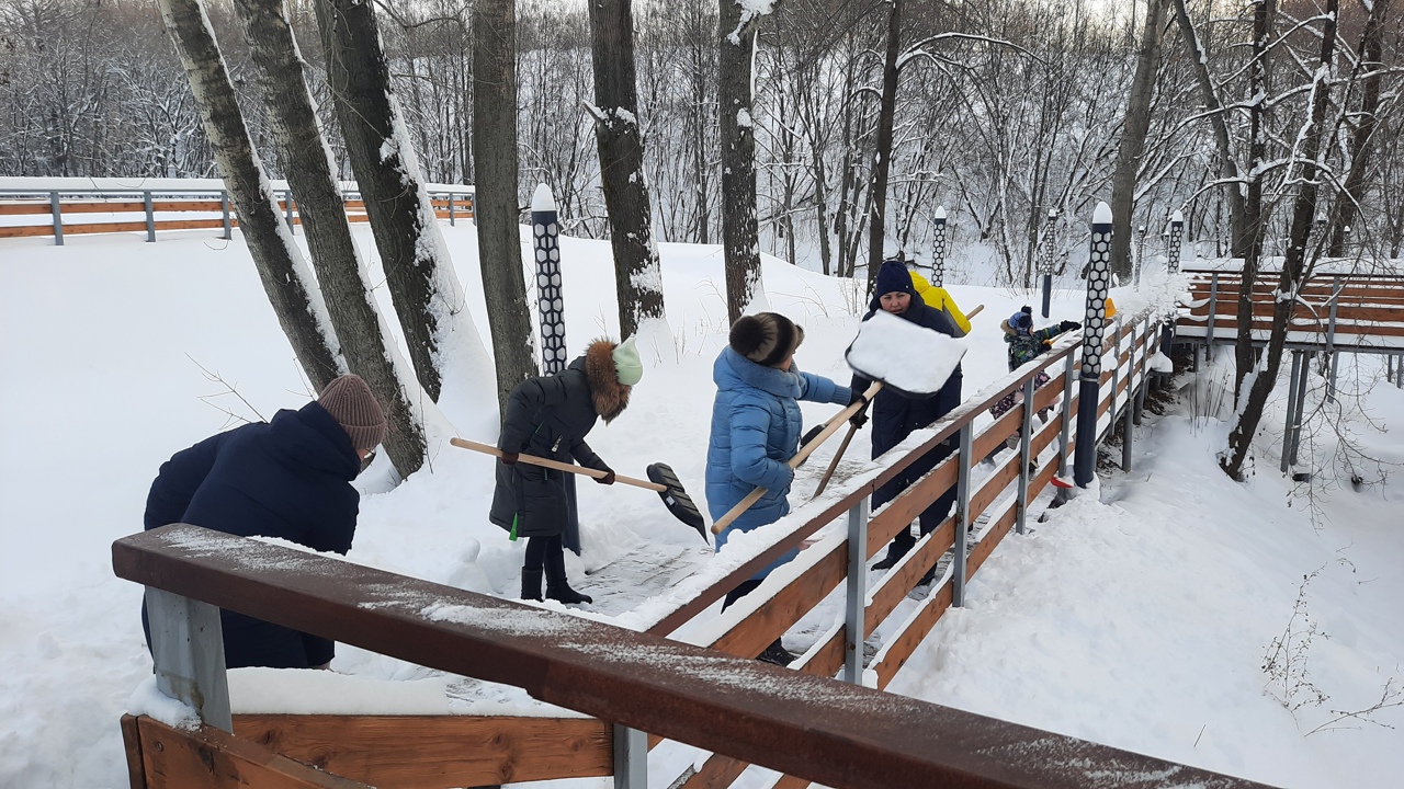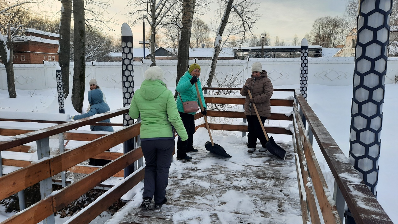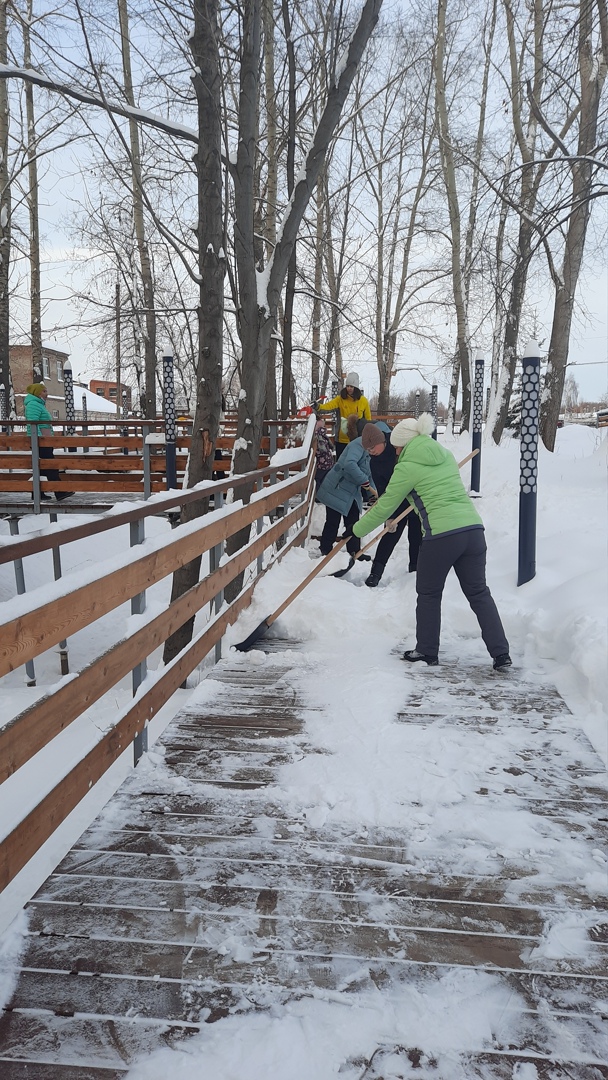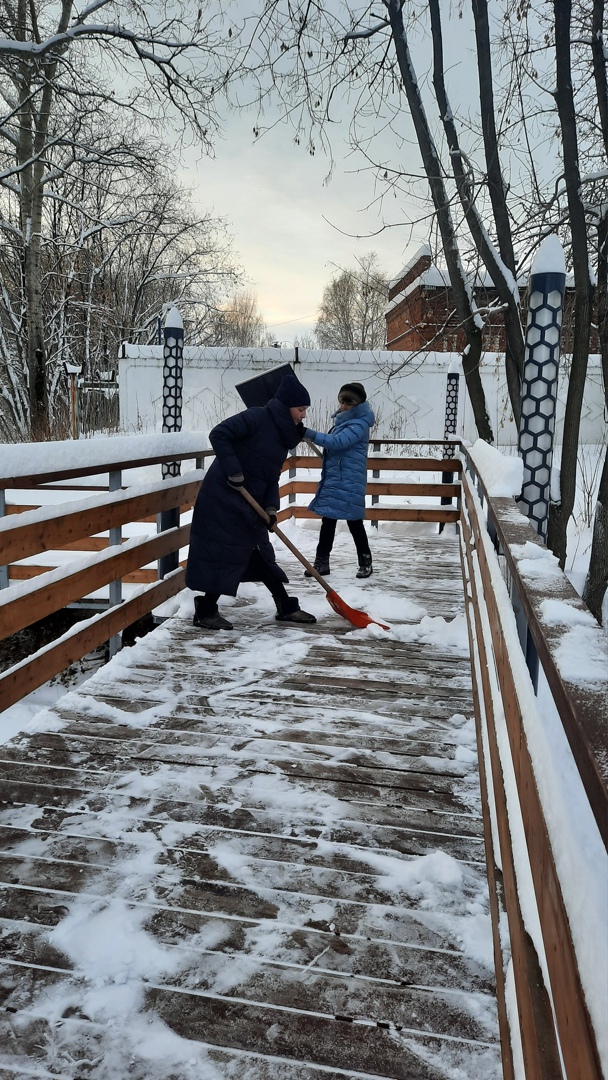 В преддверии этого праздника менделеевцы, вооружившись лопатами, активно убрали снег с территории.