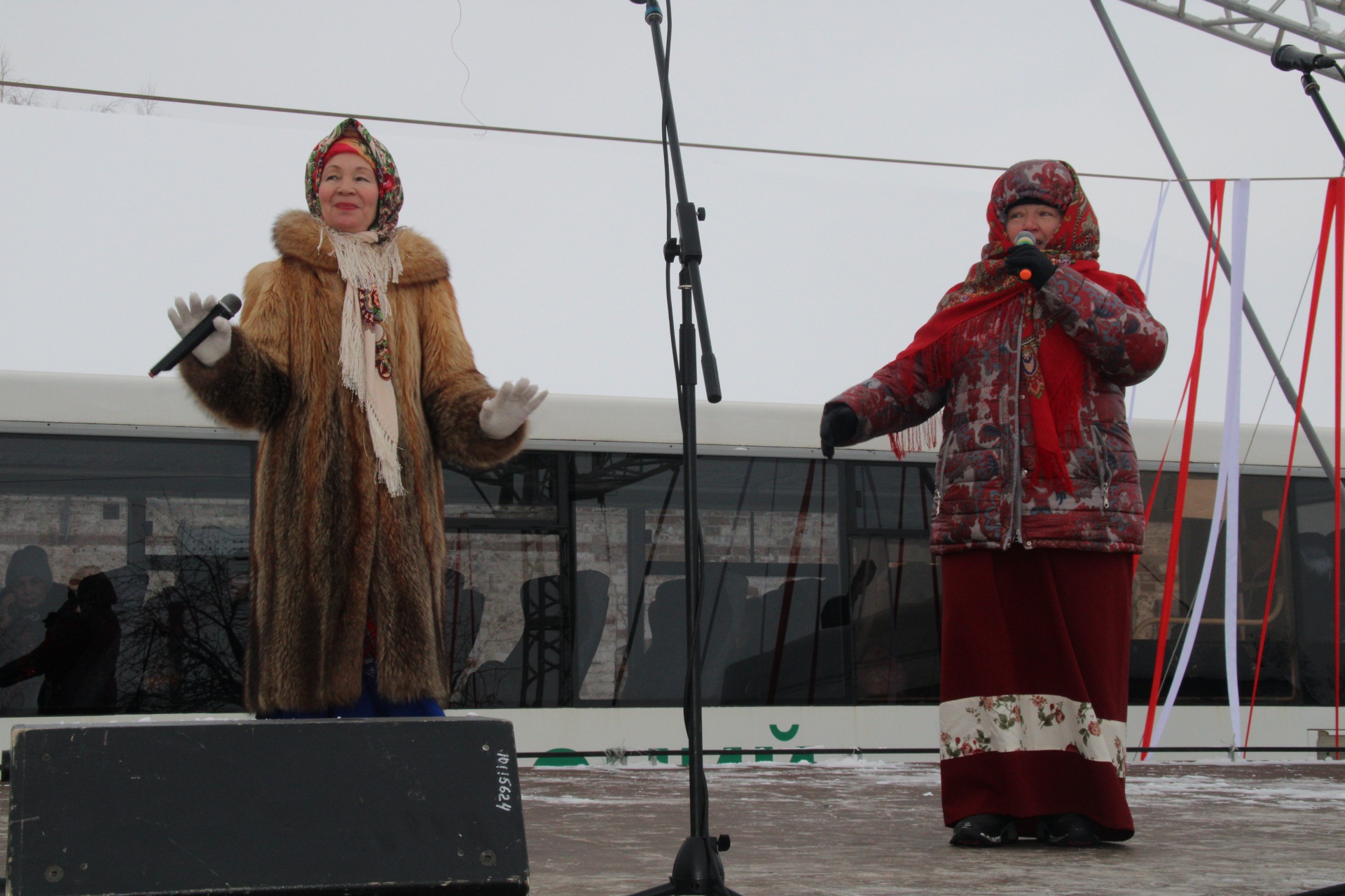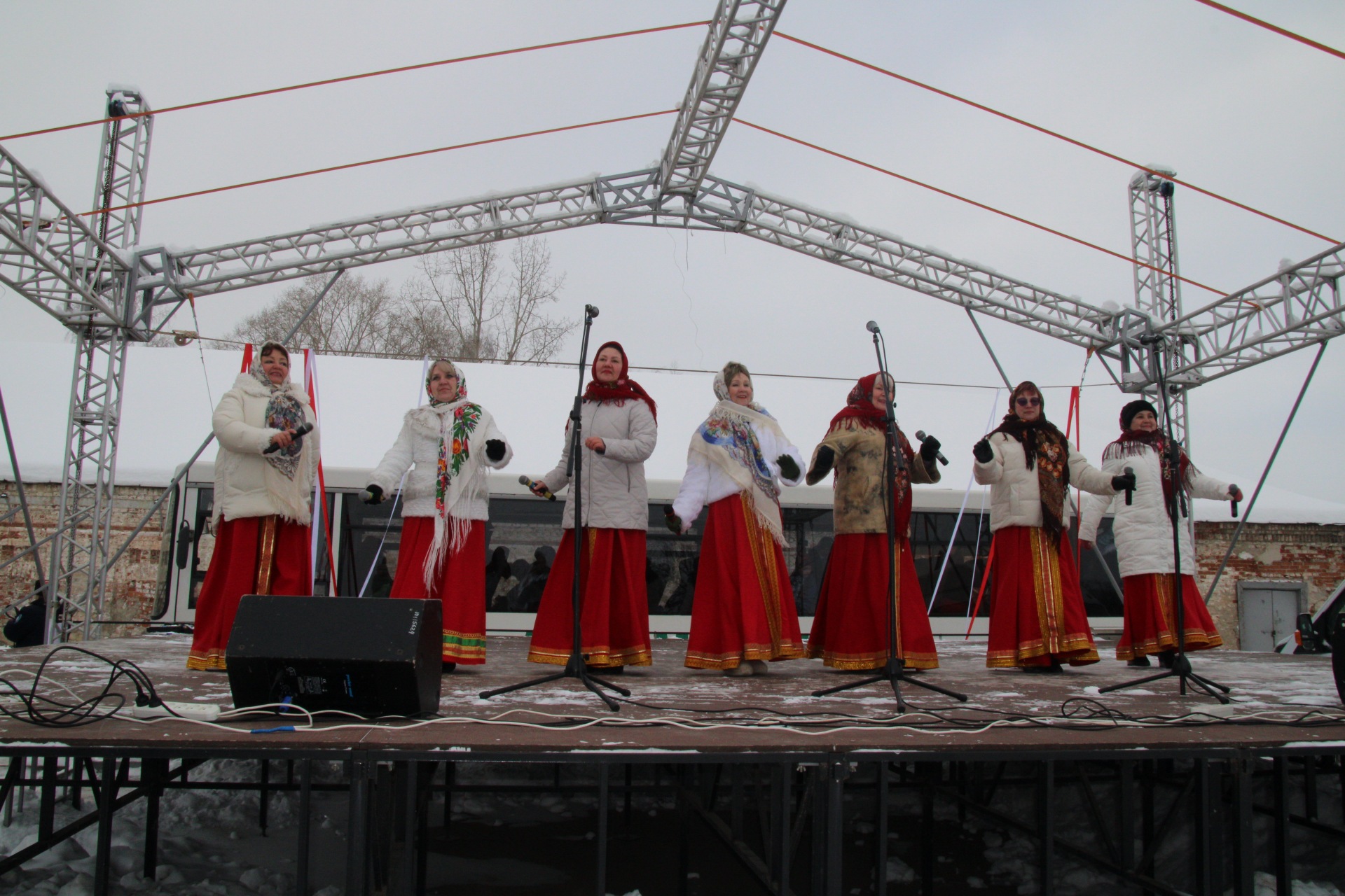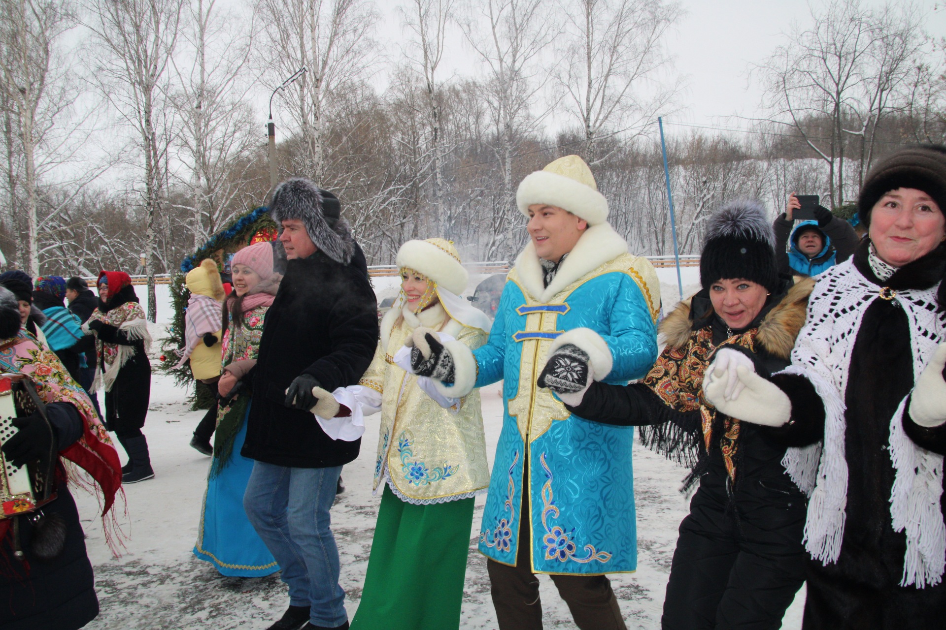 Ряженые созывали народ в хоровод, пели задорные песни, угощали сбитнем, чаем и блинами всех желающих. На главной сцене местные коллективы пели песни, даря теплые и весёлые эмоции собравшимся.