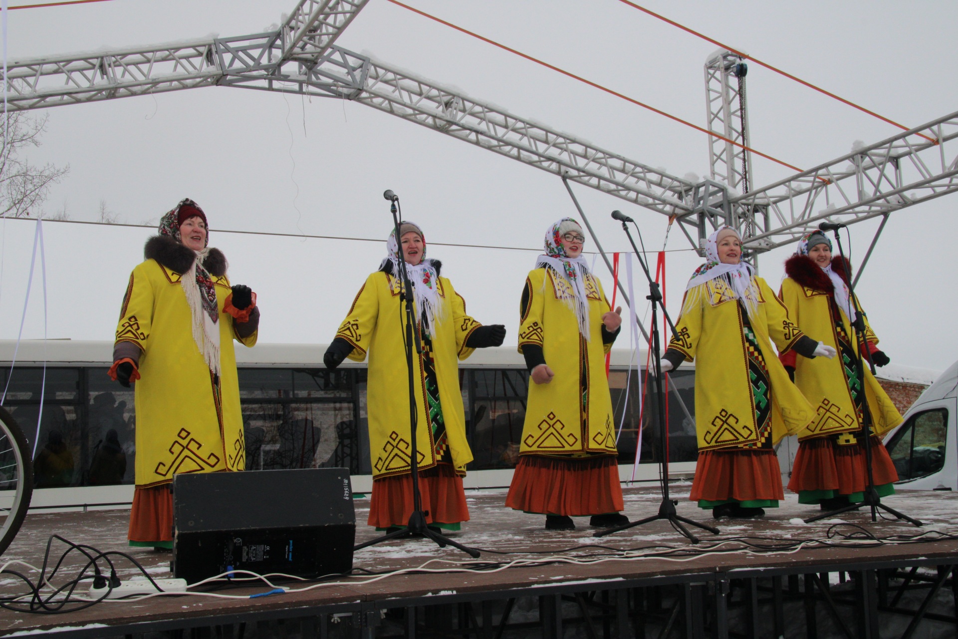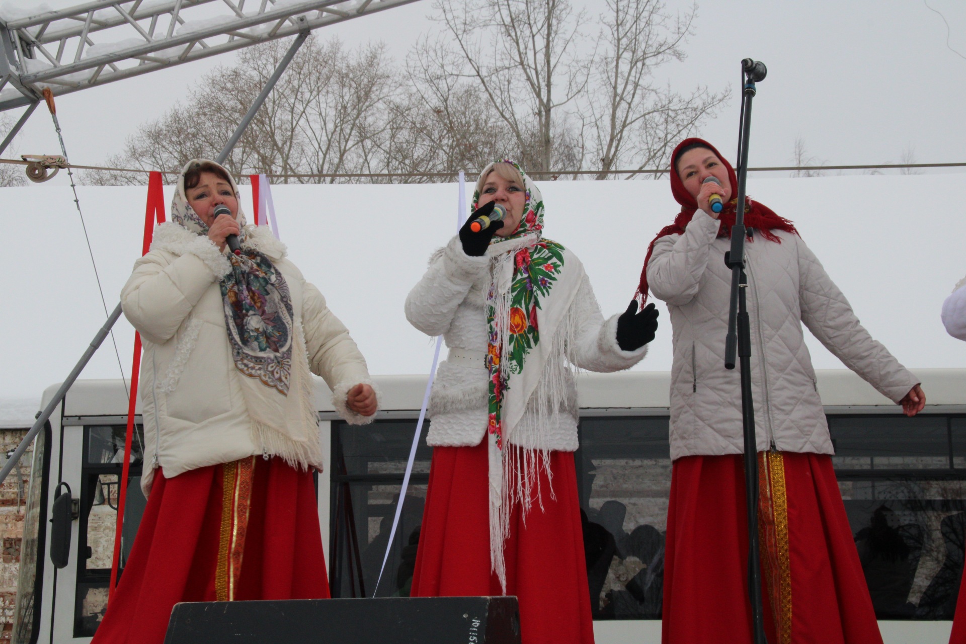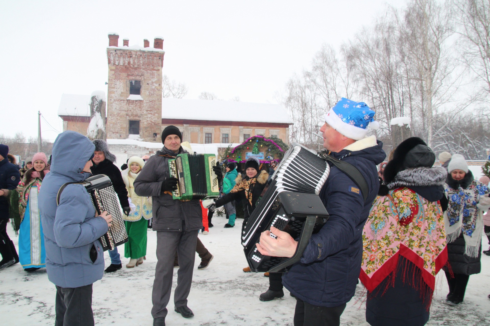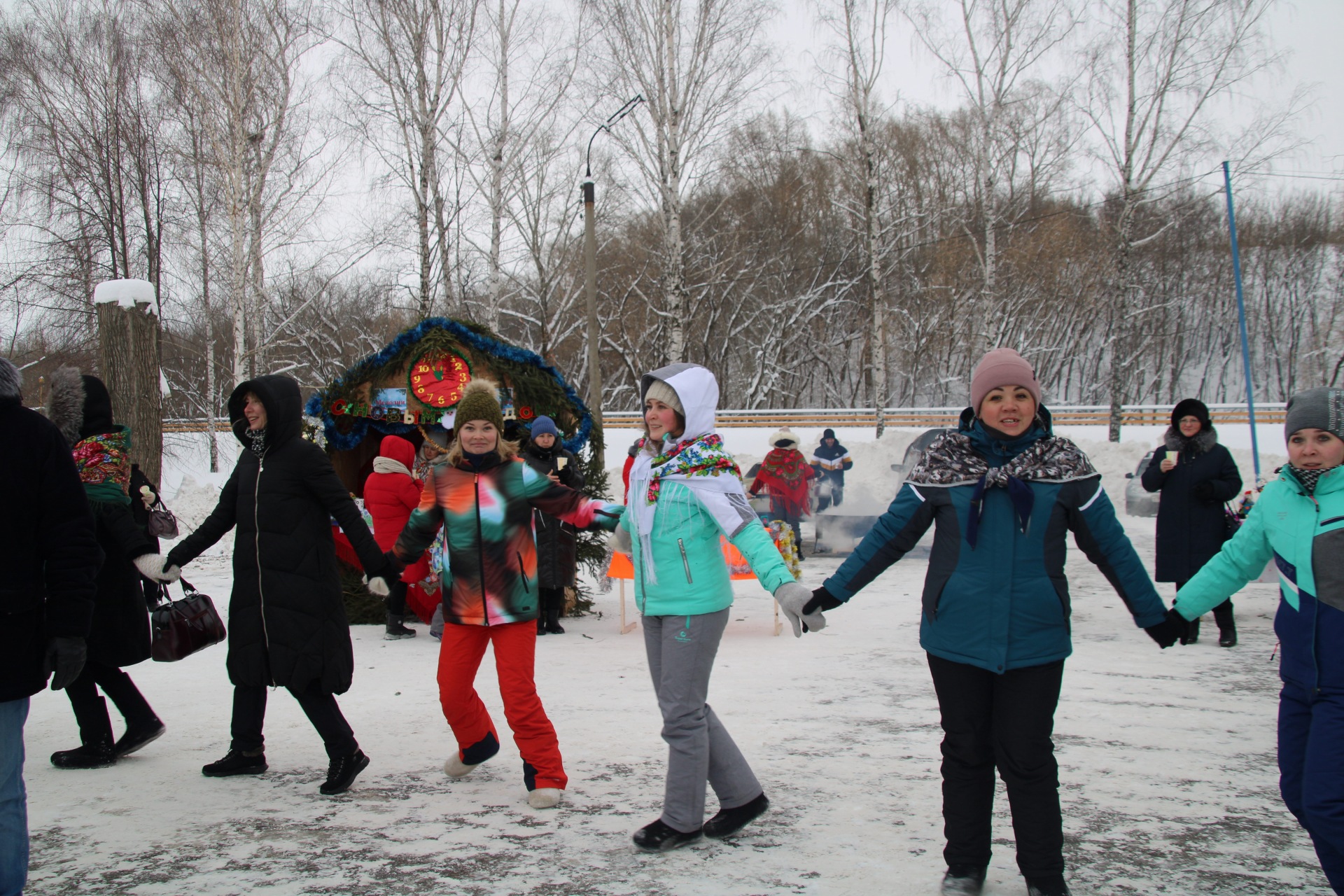 Ряженые созывали народ в хоровод, пели задорные песни, угощали сбитнем, чаем и блинами всех желающих. На главной сцене местные коллективы пели песни, даря теплые и весёлые эмоции собравшимся.