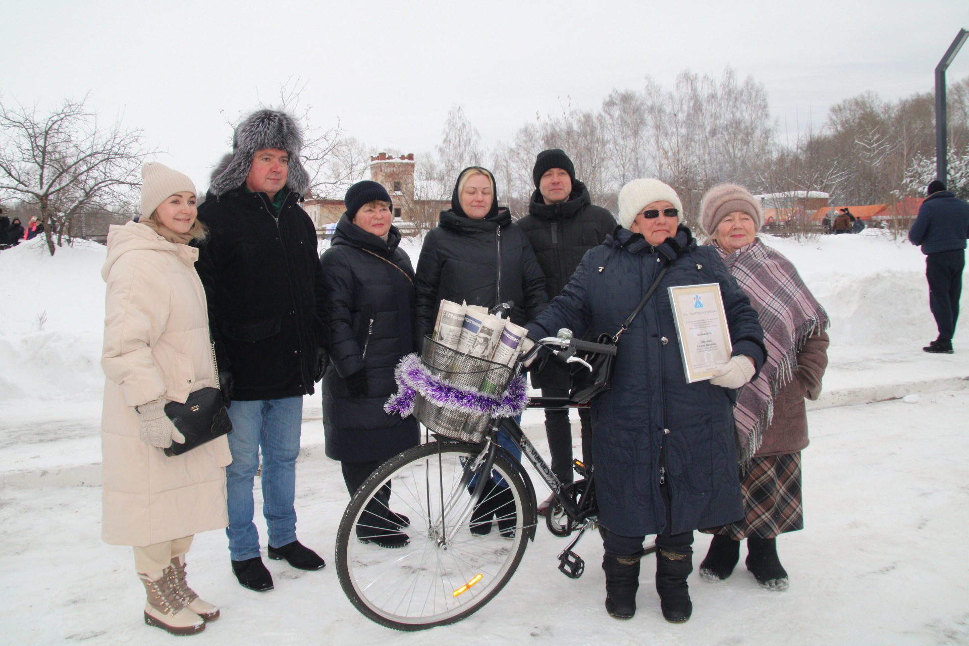 Далее Глава района совместно с главным редактором газеты «Менделеевские новости» Джулией Искандаровой вручил велосипед почтальону Галине Паршиной от своего имени и имени депутата городского Совета Фирдиса Абдрахманова за подписку на газеты "Менделеевские новости".