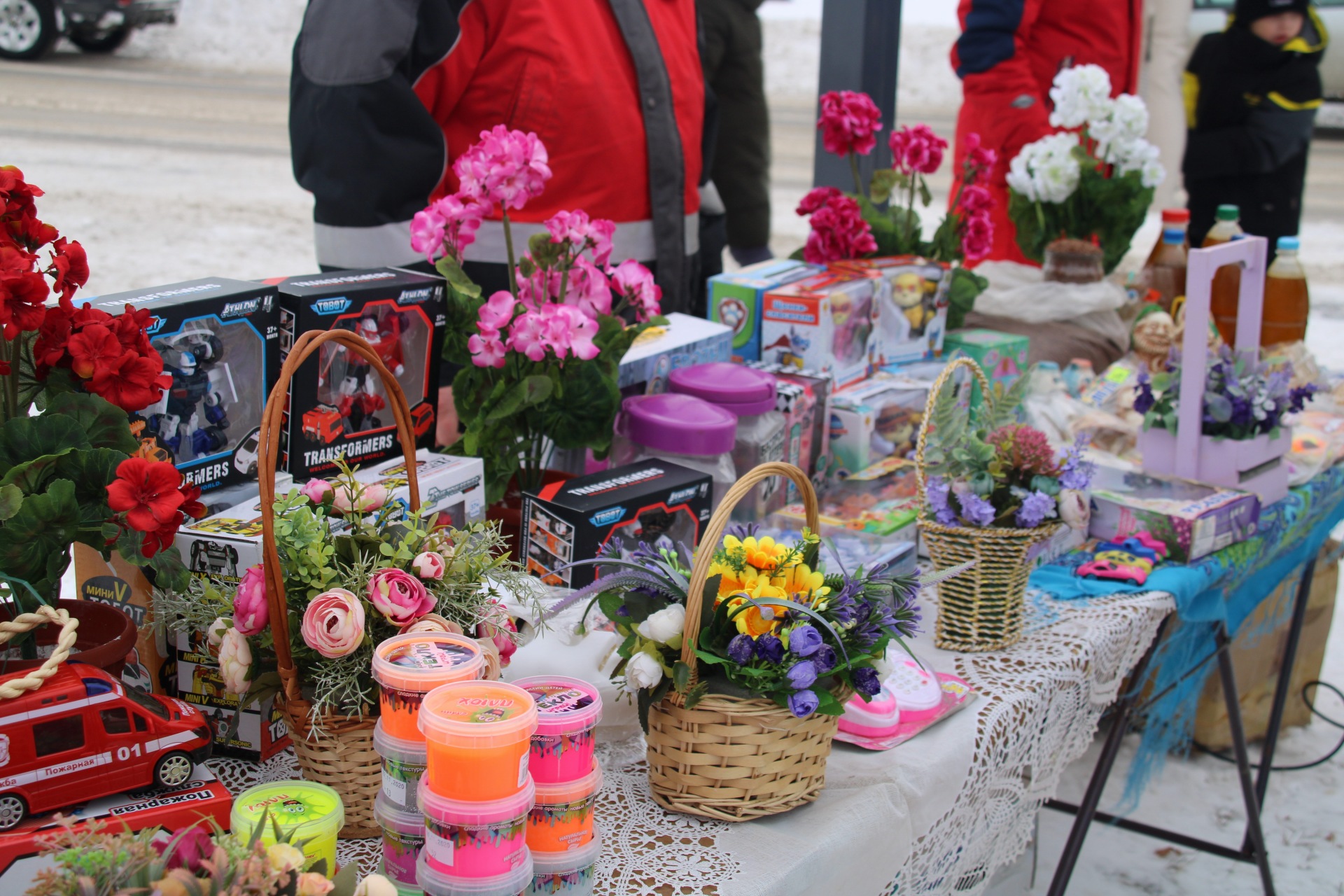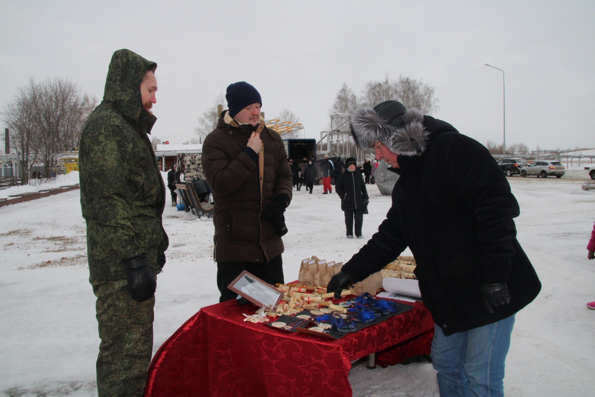 На площади парка шла торговля товарами народного промысла, продукцией личных подсобных хозяйств и выставка-продажа мастеров декоративно-прикладного искусства.