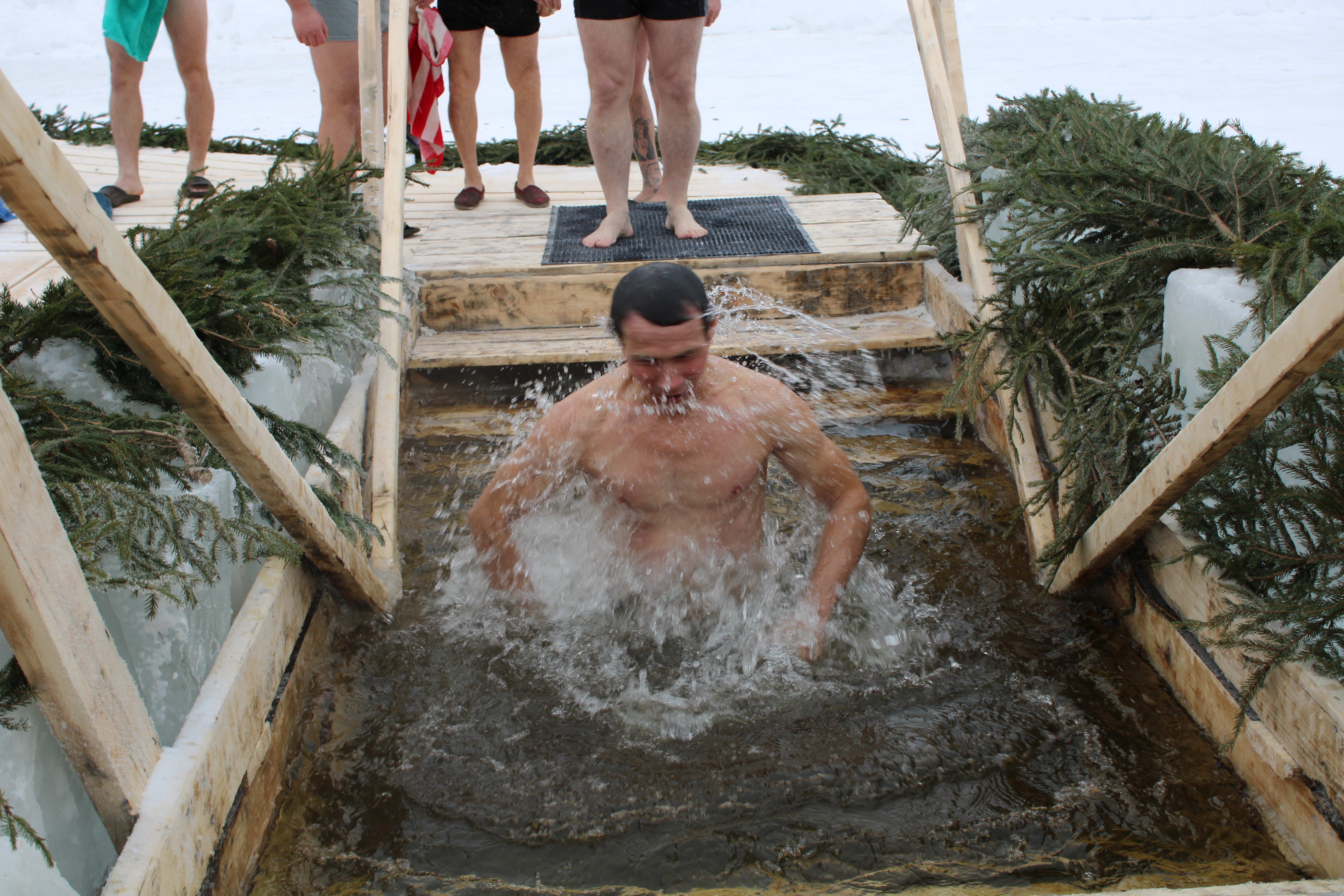 На «Ушковских островах» собрались самые смелые горожане, кто захотел окунуться в свящённую иордань. В 11:00 купель освятил Отец Виктор, пожелав менделеевцам здоровья, добра и благоденствия.