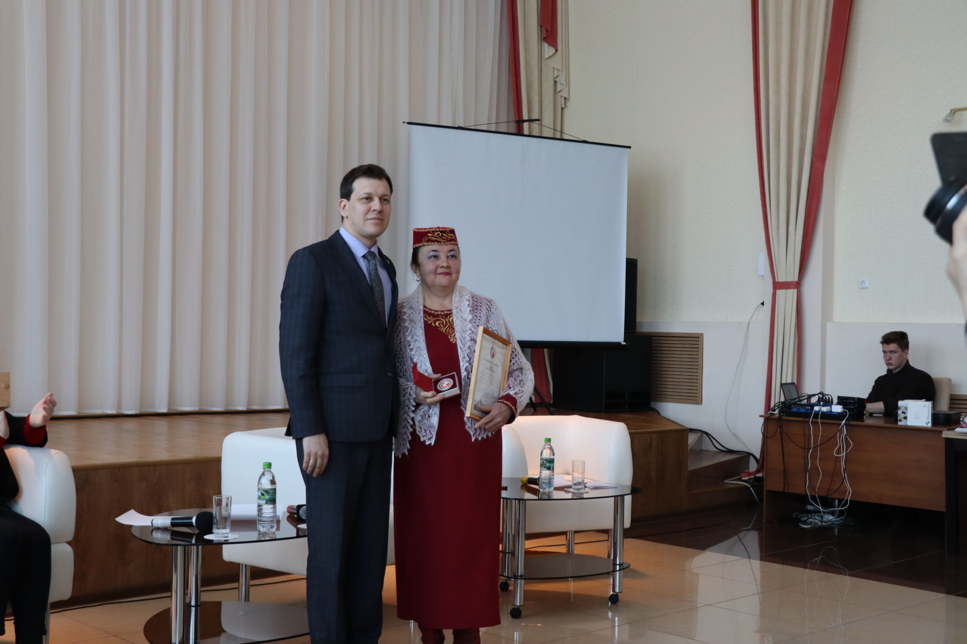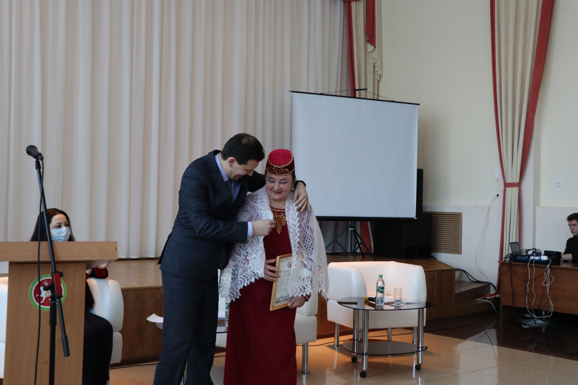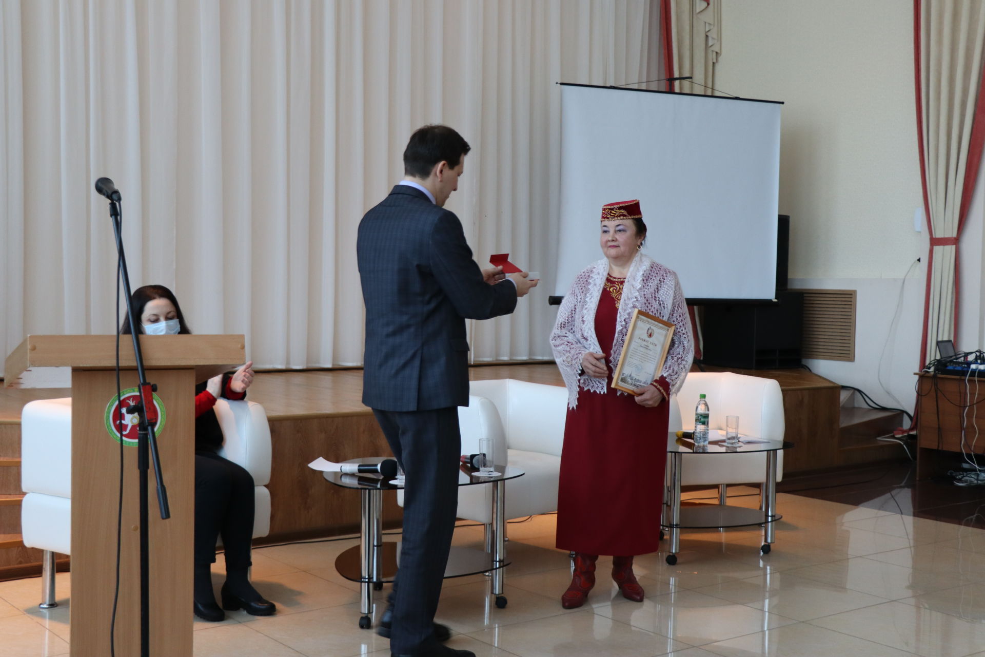 Далее состоялись выборы нового председателя общественной организации. Ильгиз Ильдарович поблагодарил Лилию Фёдоровну за долголетний плодотворный труд, вручил ей Благодарственное письмо председателя Национального Совета Всемирного конгресса татар Василя Шайхразиева, медаль 100-летия ТАССР, памятный подарок и выразил желание, чтобы Л. Галиева осталась в рядах членов-активистов.