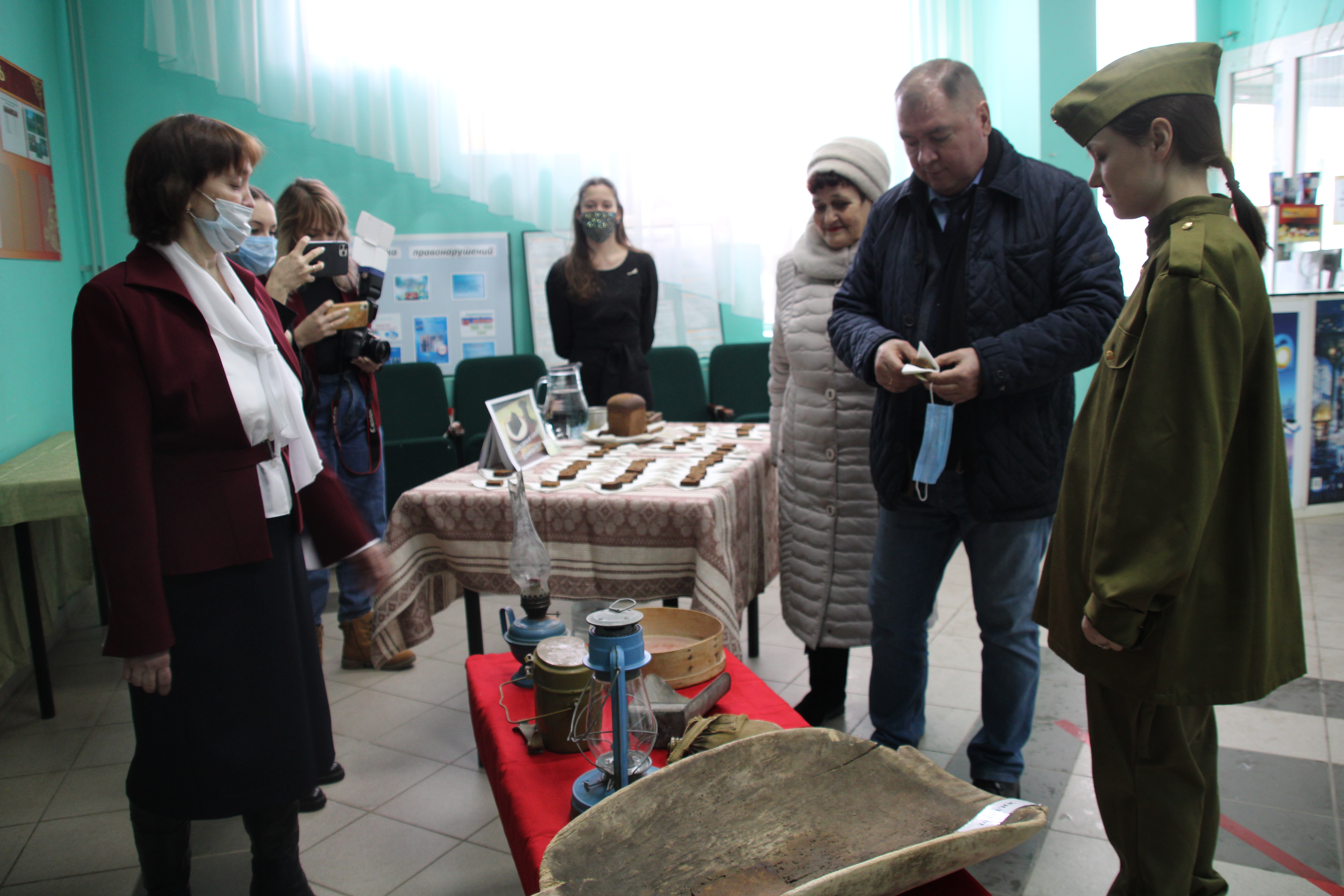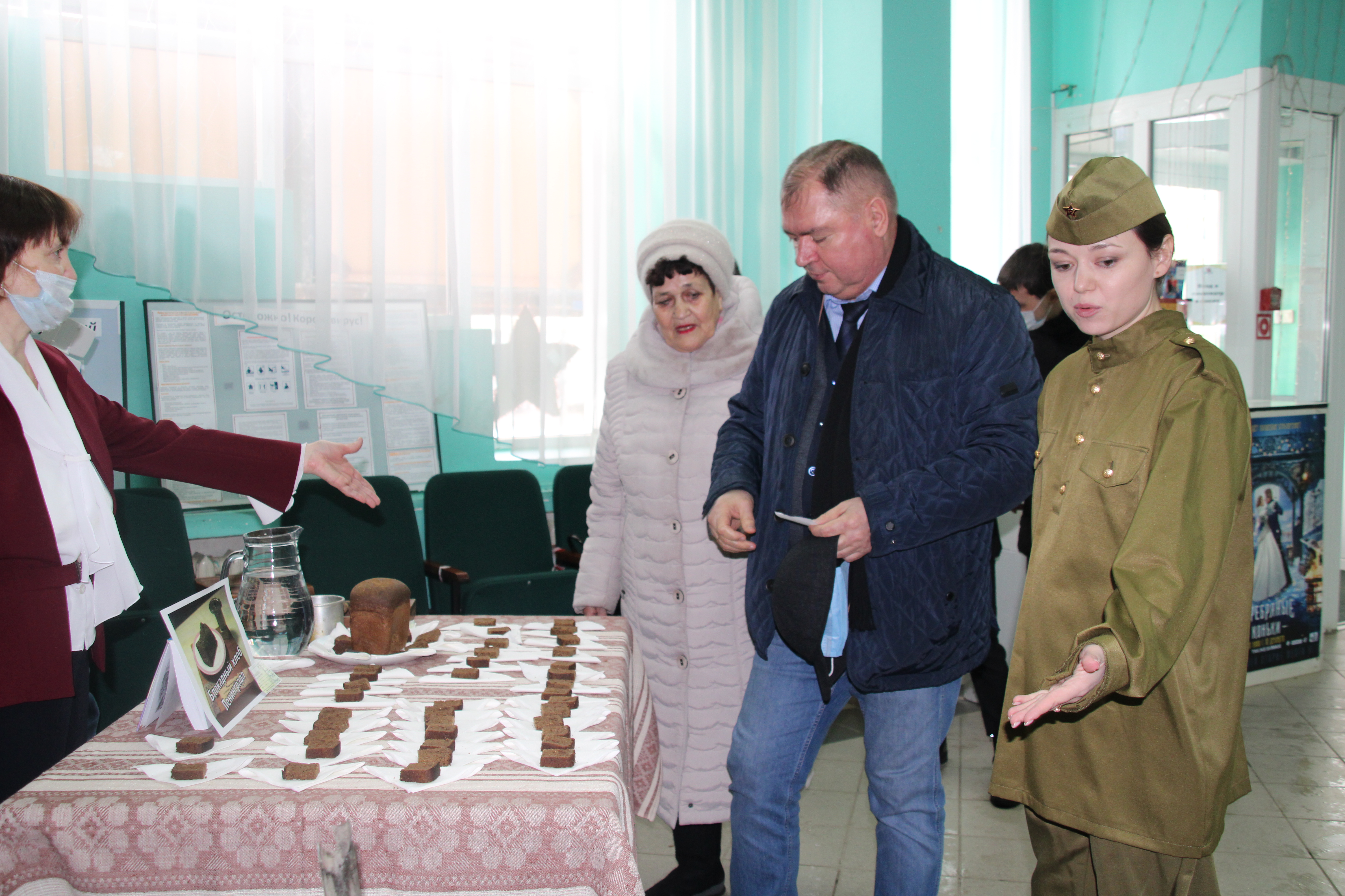 Гостей в образе главной героини фильма Зои Космодемьянской встречали сотрудники кинотеатра. Для приглашенных подготовили яркую фотозону, экспонаты военных времен, каждому гостю вручали талоны на блокадный хлеб, как это было в военные годы.