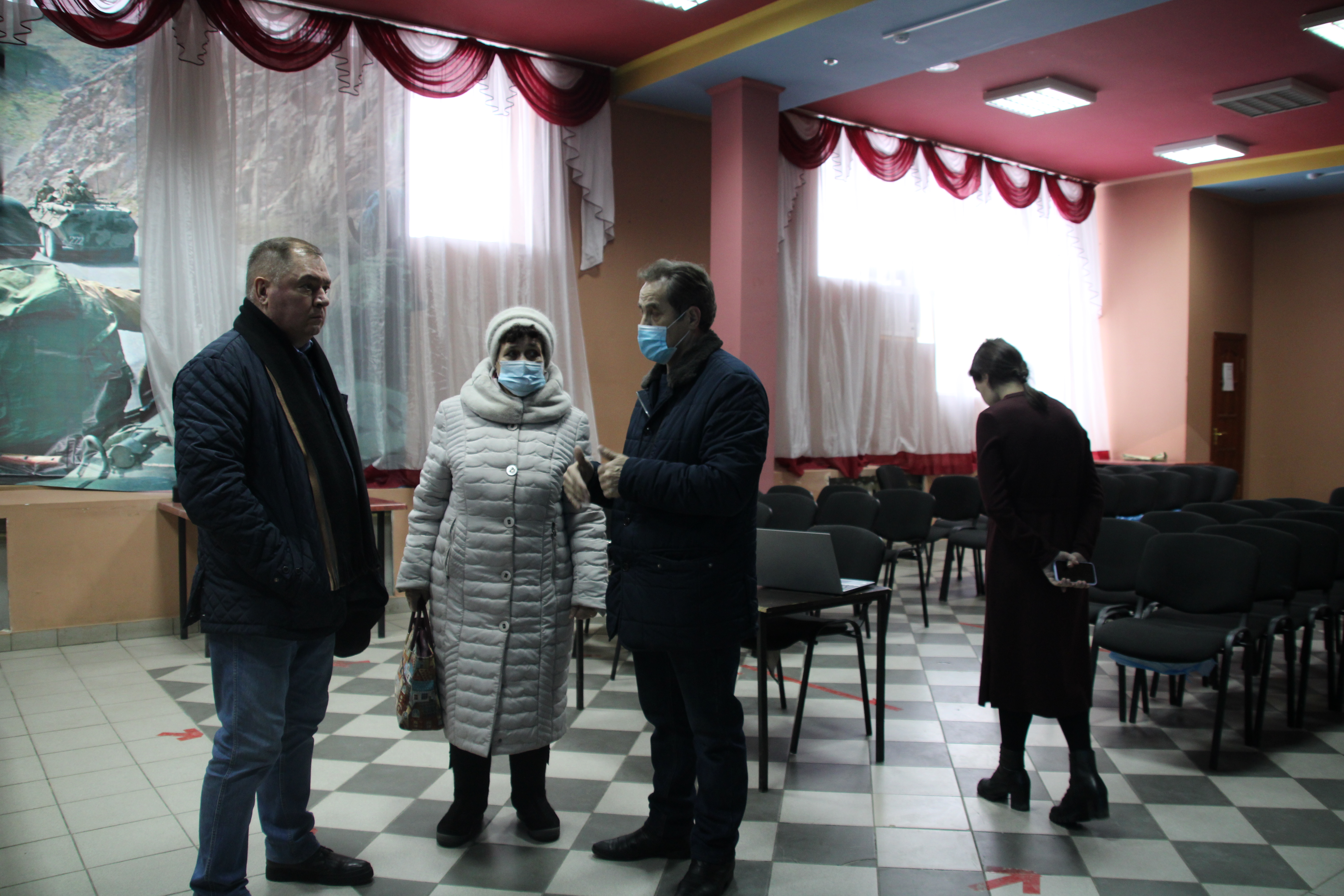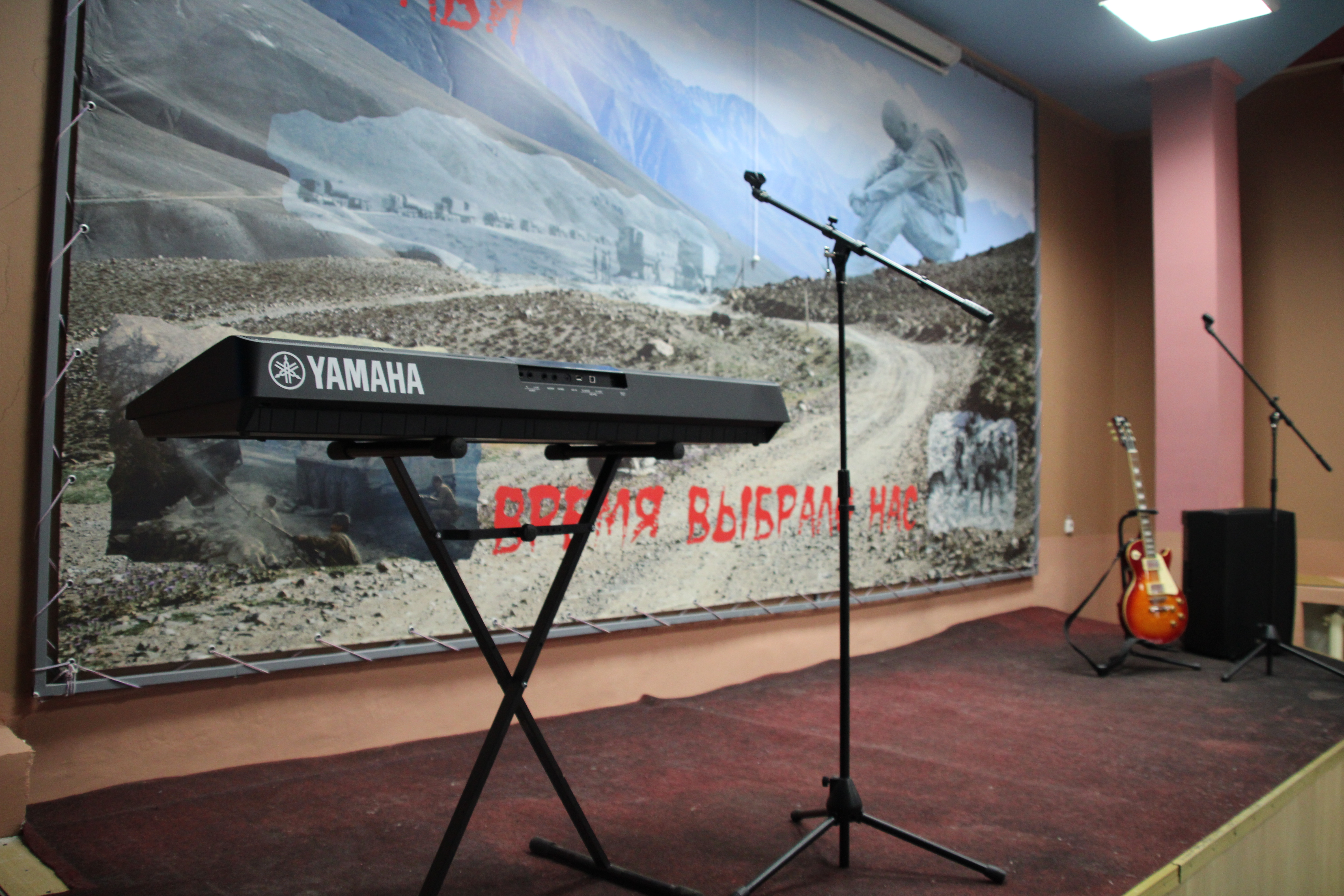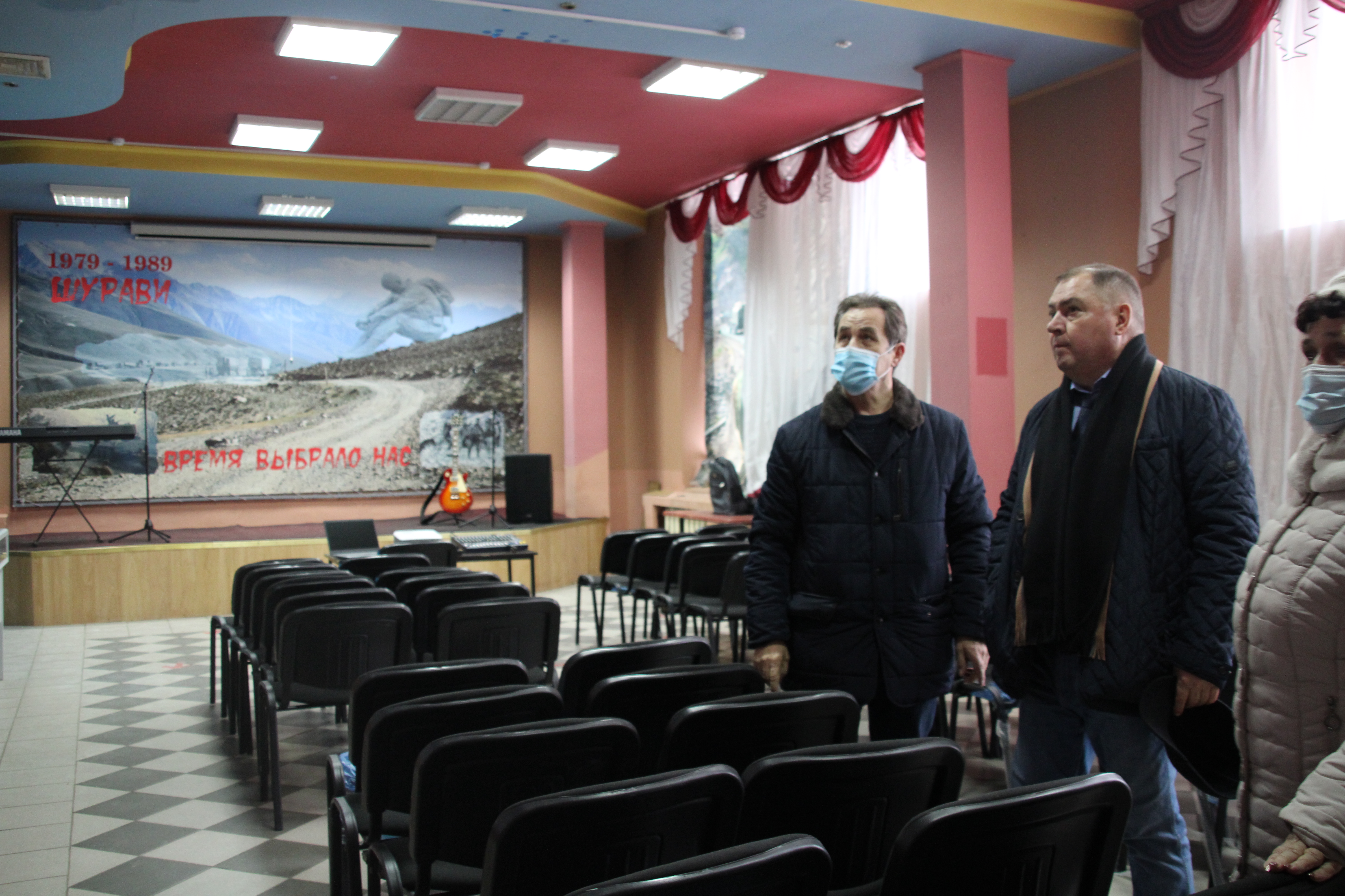 В завершении Глава района осмотрел помещение патриотического клуба "Шурави". В клубе есть сцена, музыкальные инструменты для выступлений, места для зрителей, исторические экспонаты, информационные стенды.
