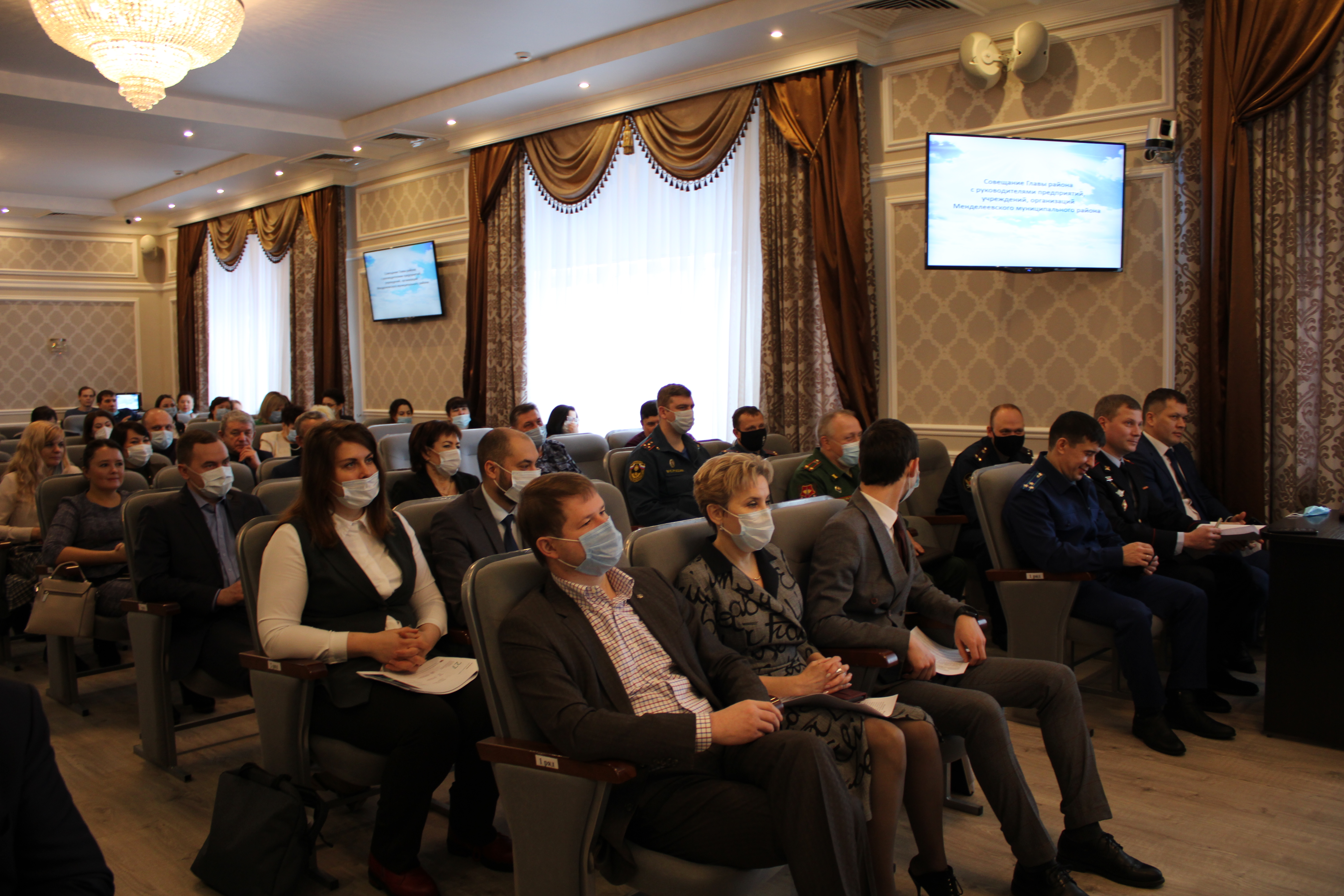Сегодня в актовом зале администрации состоялось еженедельное совещание с руководителями предприятий, учреждений, организаций Менделеевского муниципального района под руководством Главы района Валерия Чершинцева.
