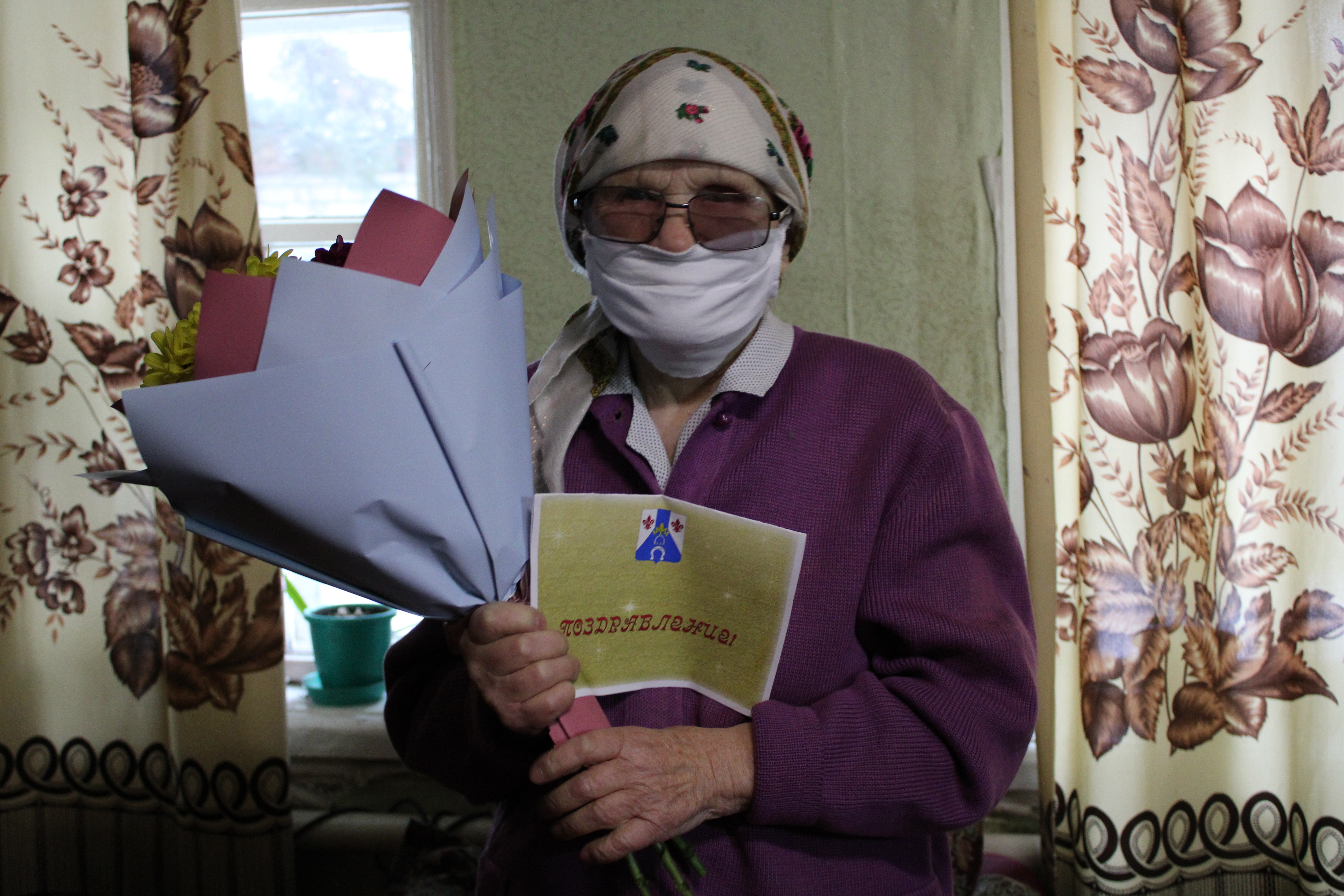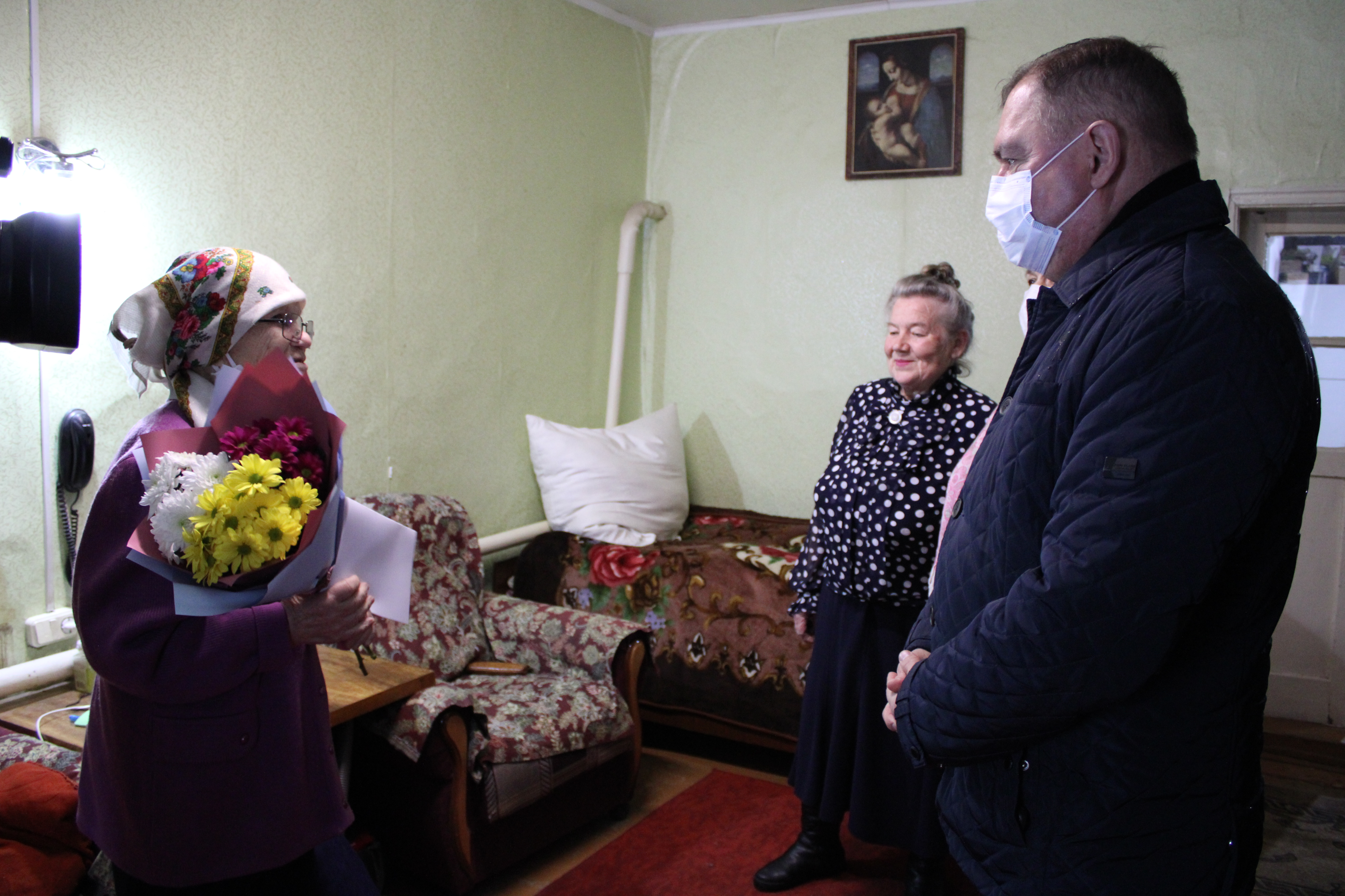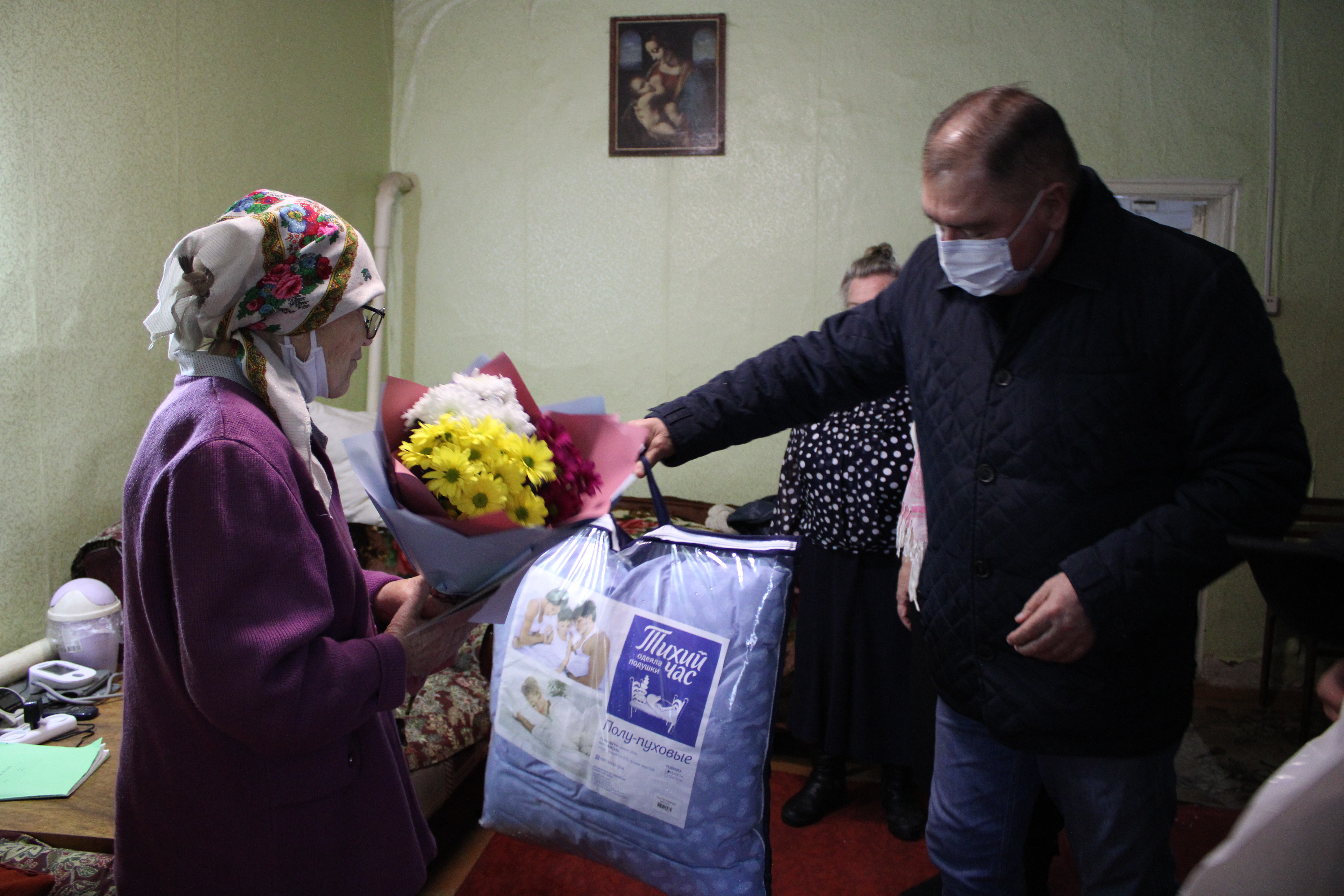 Валерий Чершинцев вручил цветы, памятные подарки и именные поздравления имениннице.