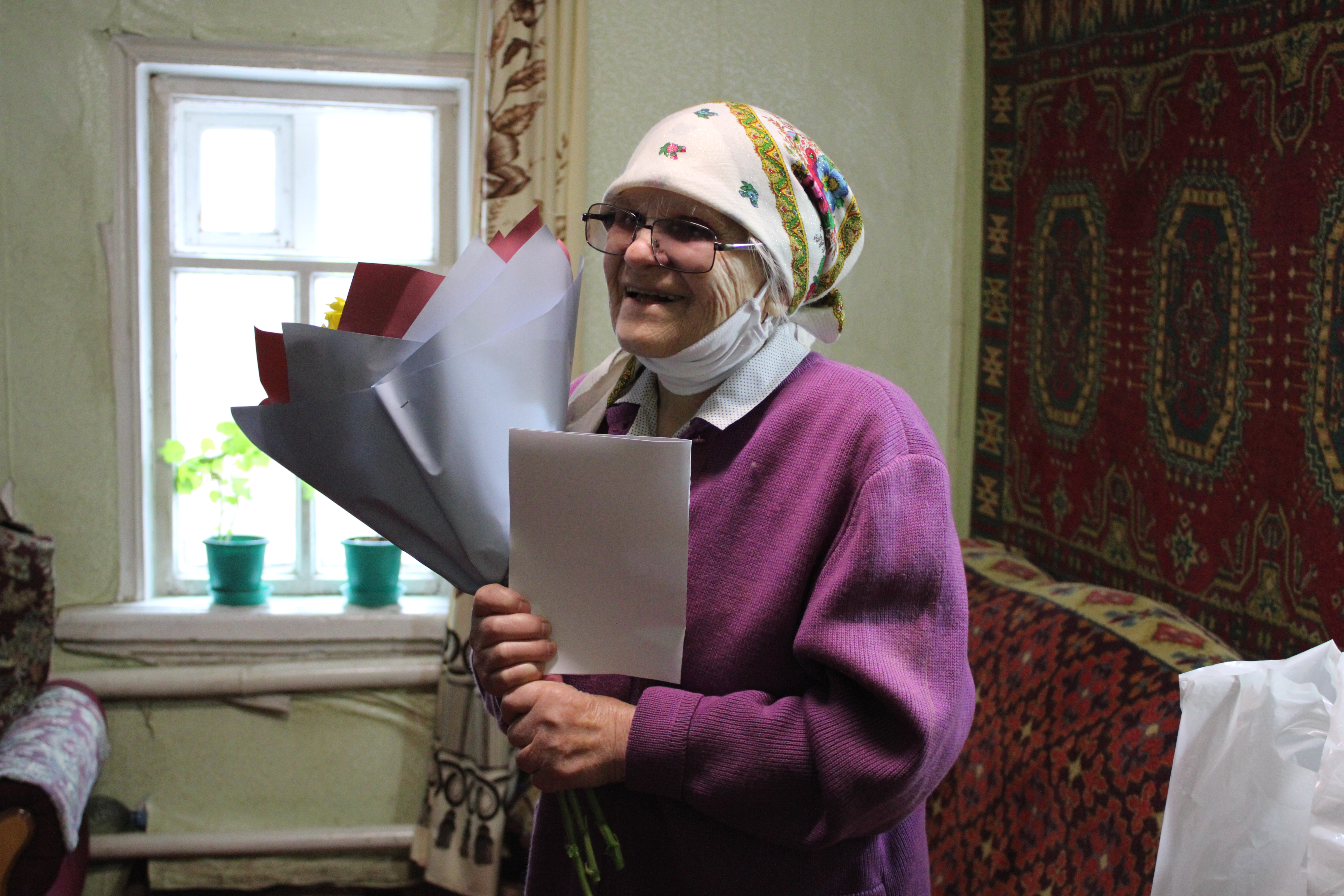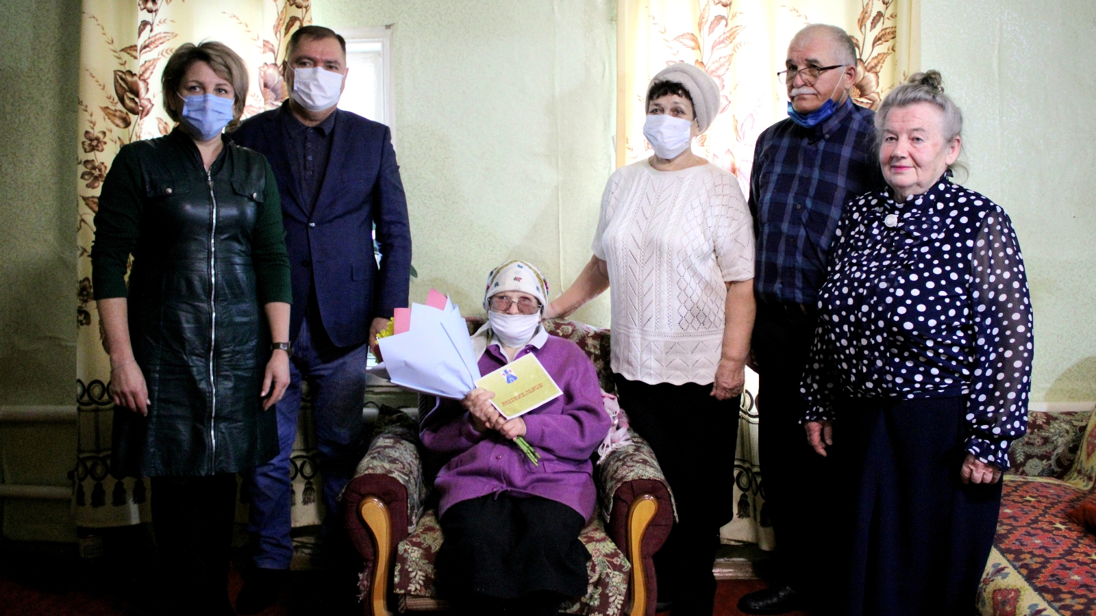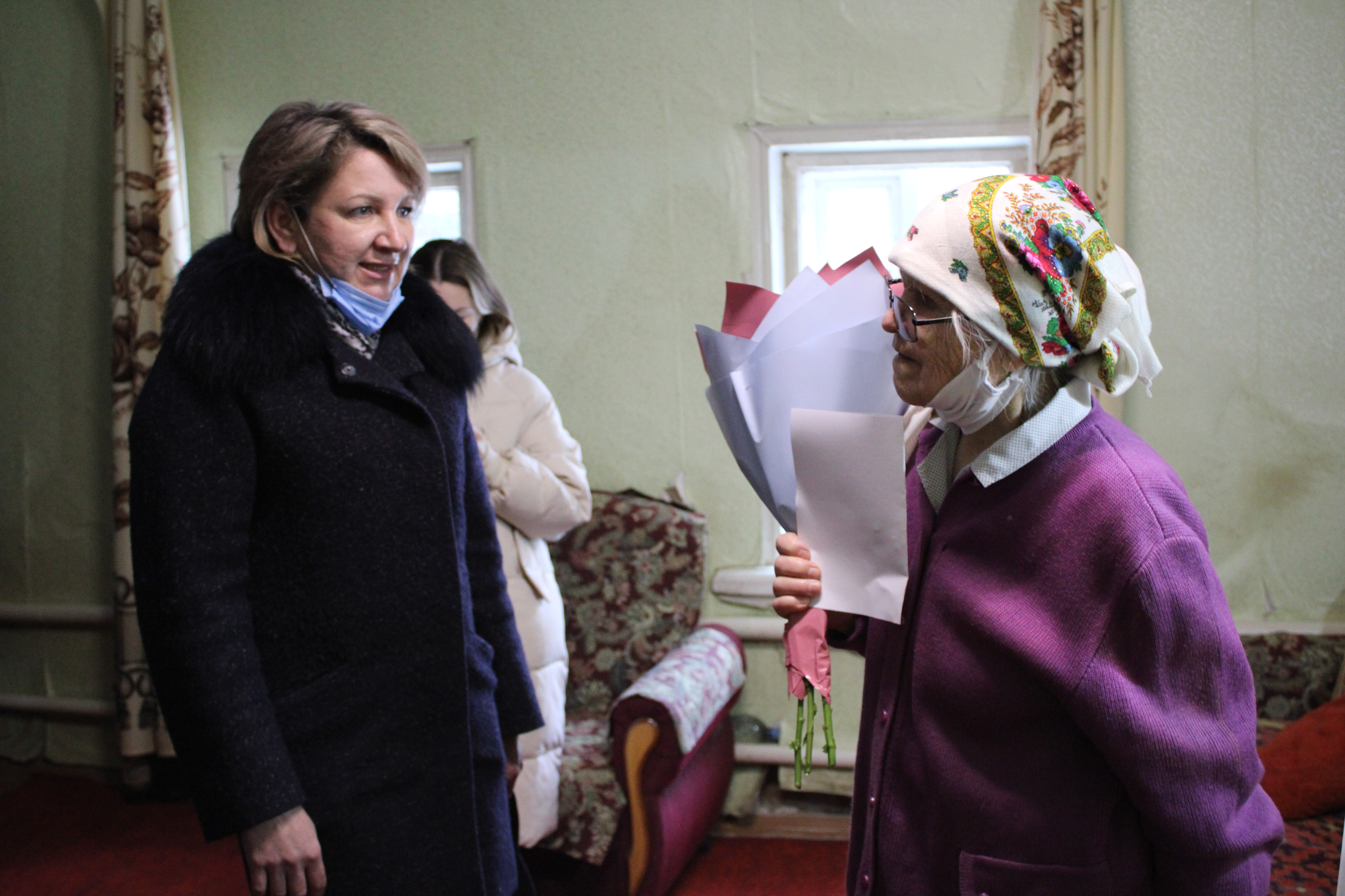 Валерий Чершинцев вручил цветы, памятные подарки и именные поздравления имениннице.