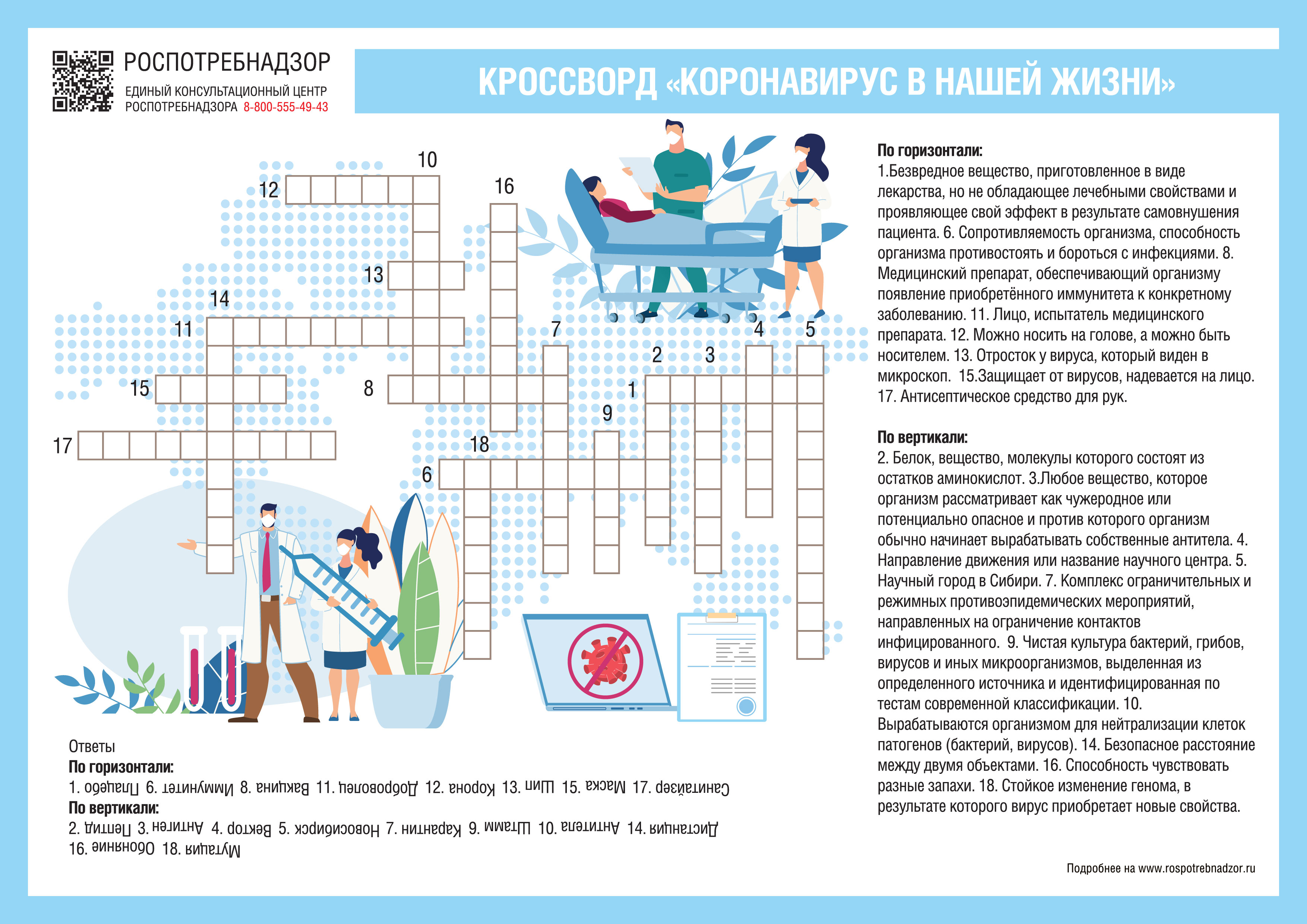 Сегодня, в День, российской науки, Роспотребнадзор предлагает вашему вниманию кроссворд, в котором все слова связаны с новой коронавирусной инфекцией COVID-19.