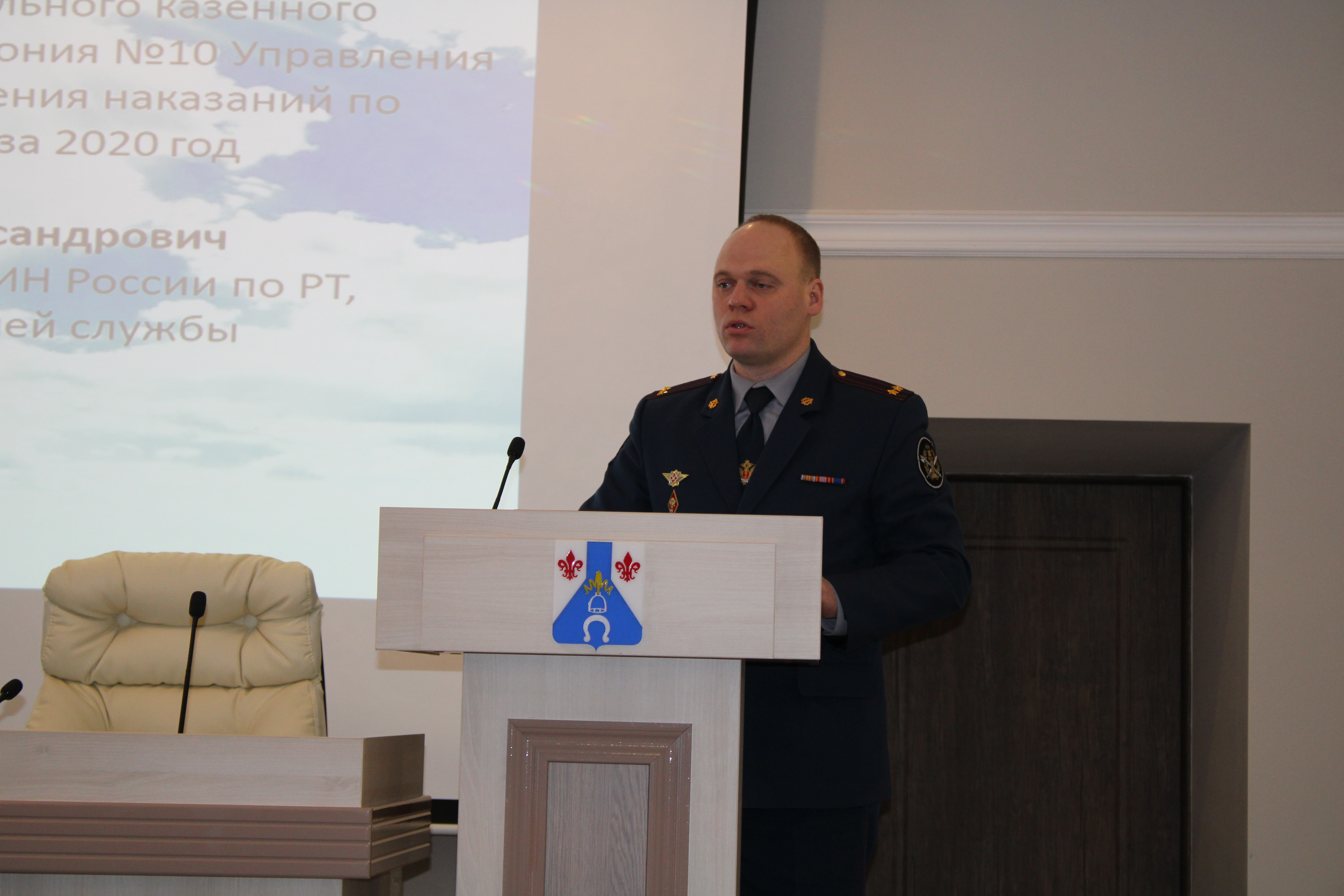 С обзором деятельности Федерального казенного учреждения "Исправительная колония №10 Управления Федеральной службы исполнения наказаний по Республике Татарстан" за 2020 год выступил Сергей Харкевич - начальник ФКУ ИК-№10 УФСИН России по РТ, подполковник внутренней службы.