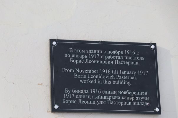 Памятная табличка Б. Пастернаку установлена на фасаде краеведческого музея, так как именно в этом здании с ноября 1916 по январь 1917 года работал писатель.