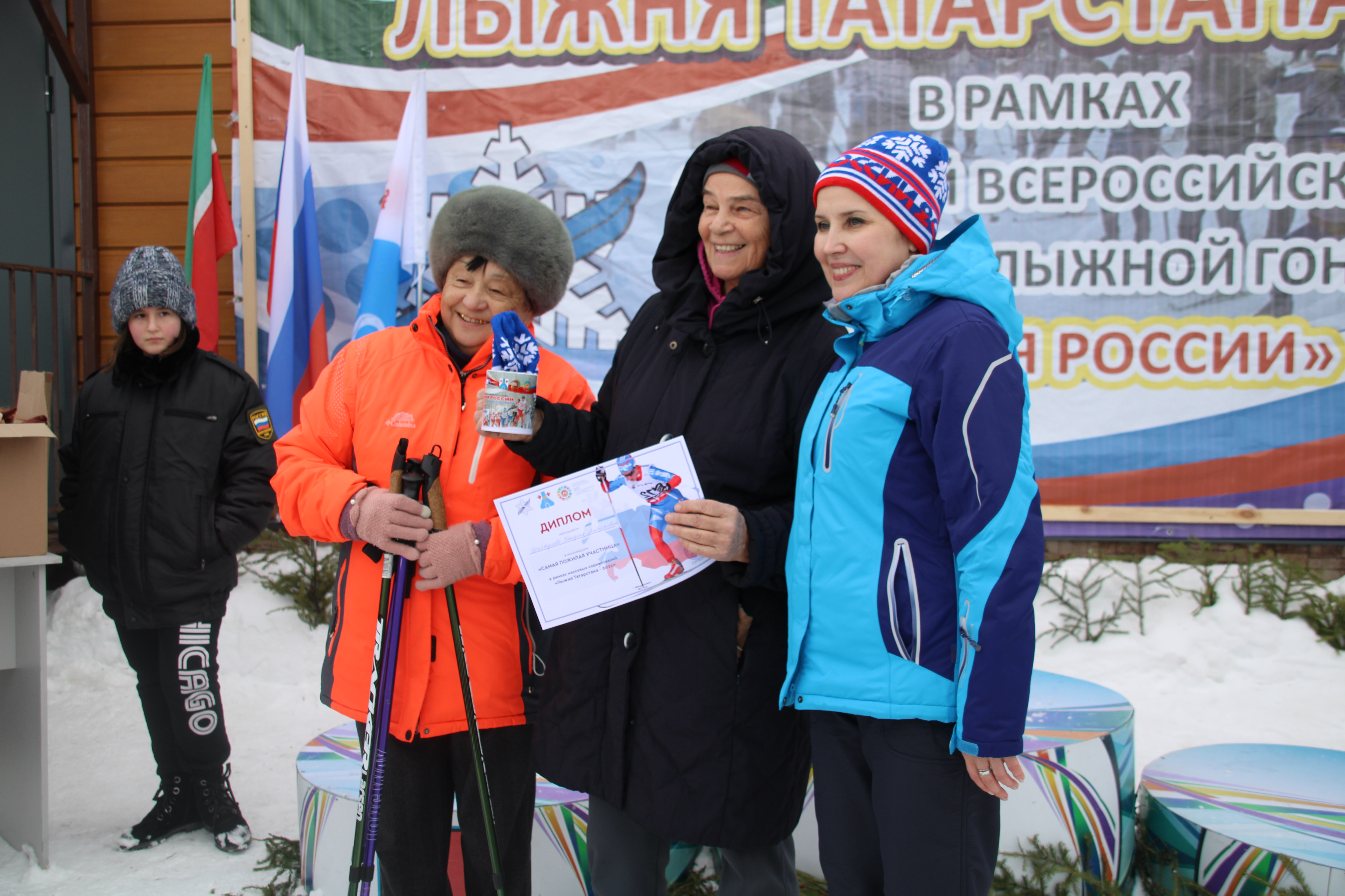 После окончания гонок заместитель Главы района Лейсан Галеева поздравила всех участников и вручила награды и памятные подарки любителям лыжного спорта по следующим номинациям: