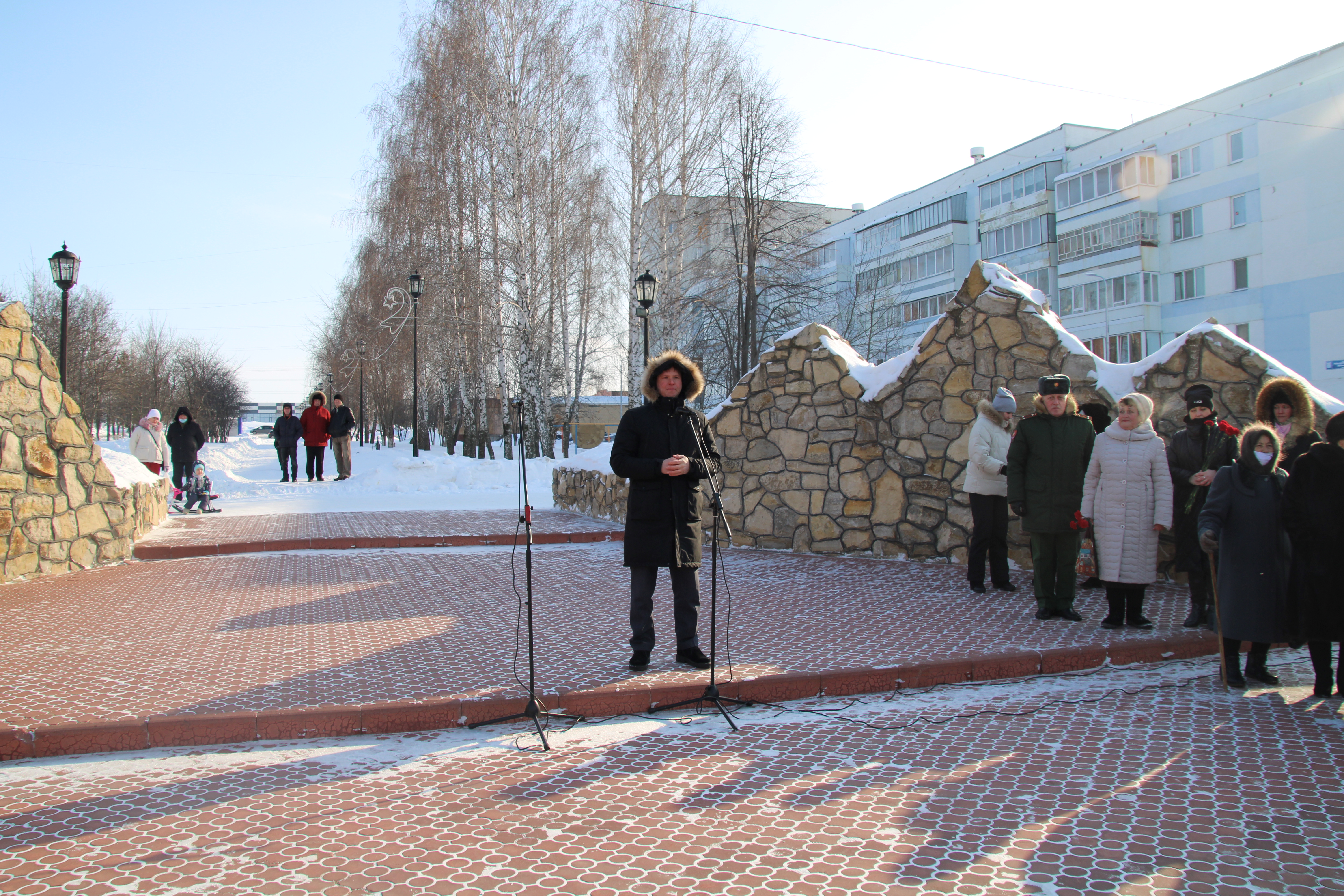 У мемориала воинам-интернационалистам состоялся митинг, посвященный 32 годовщине со дня вывода войск из Афганистана в рамках нацпроекта "Культура".