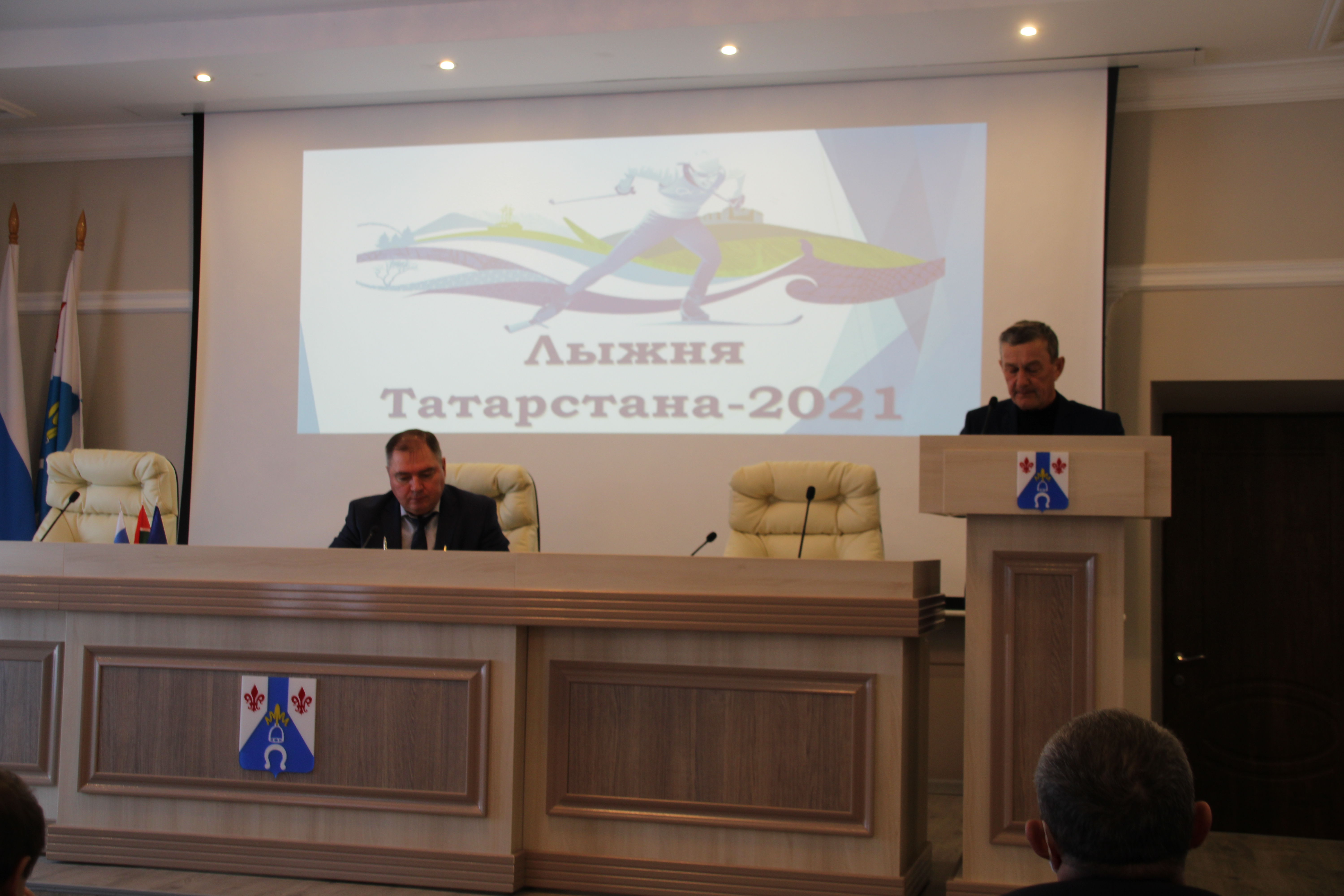 С информацией об итогах гонок «Лыжня Татарстана-2021» выступил Рашат Фаизов – начальник МКУ «Управление по делам молодежи и спорта».